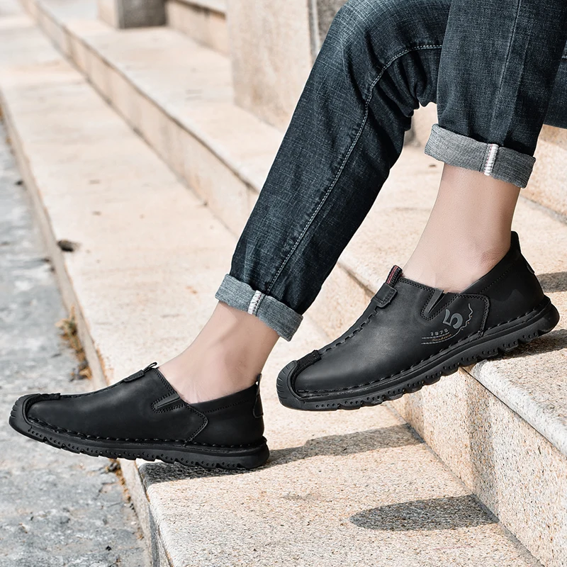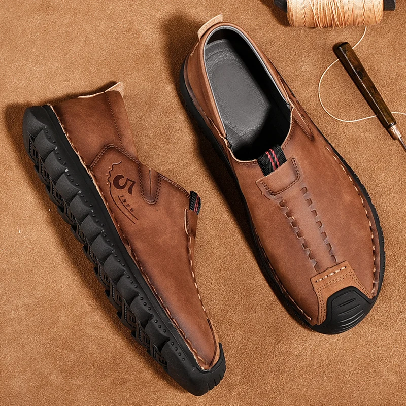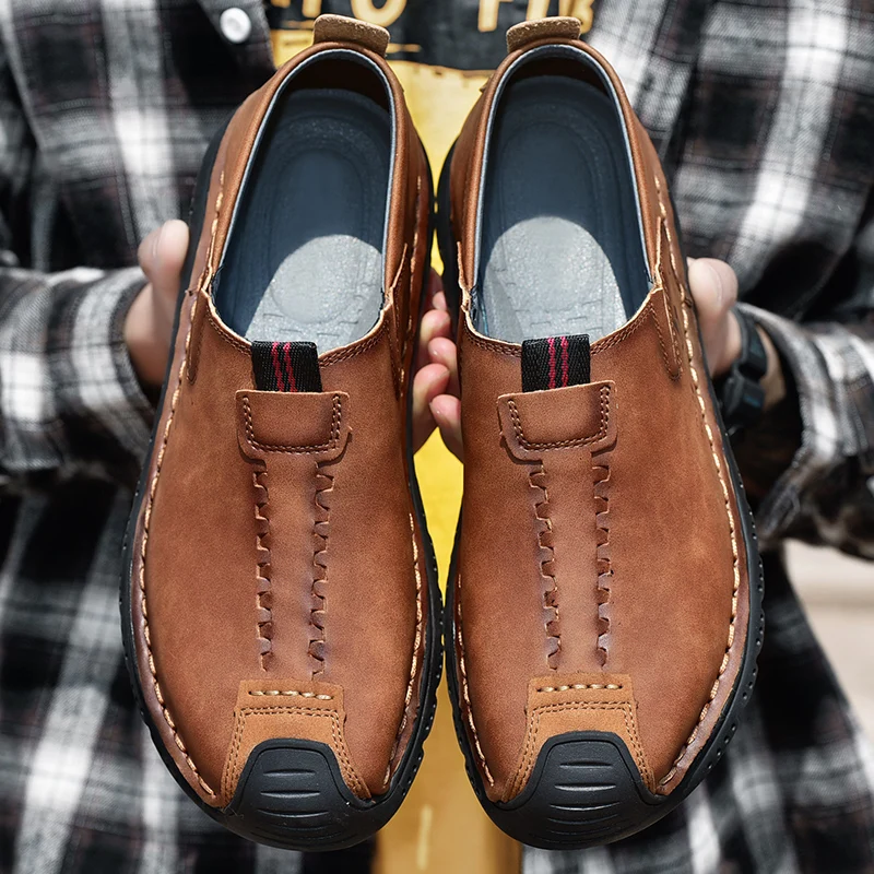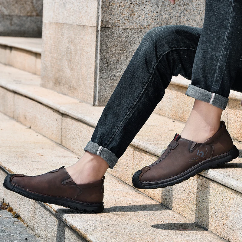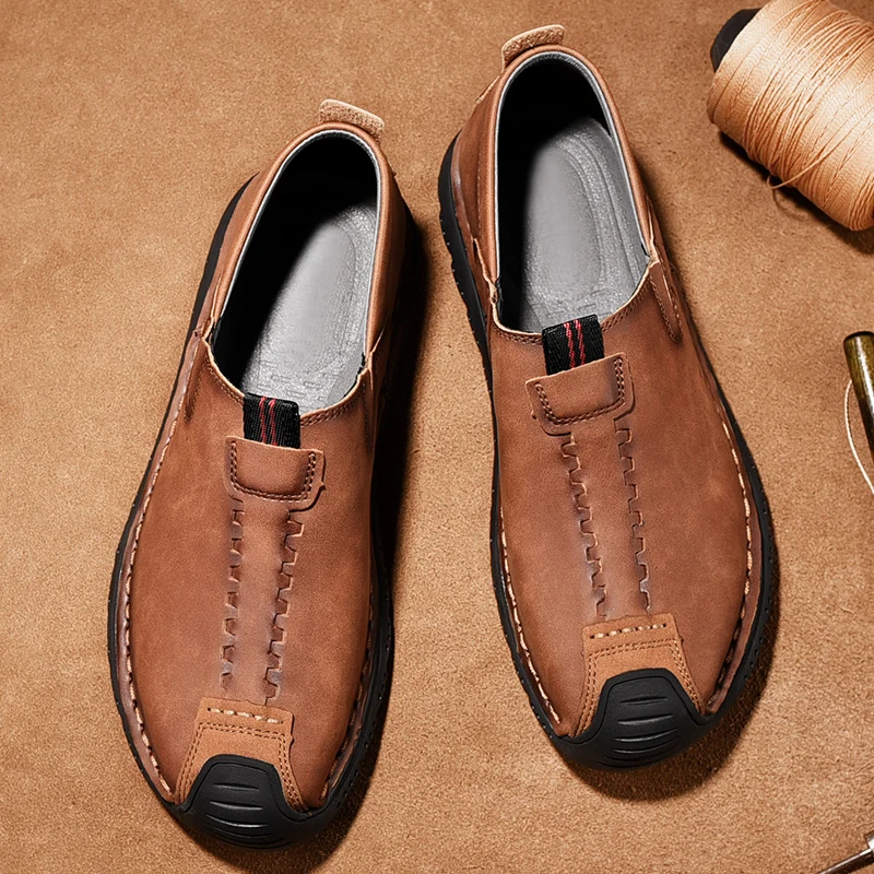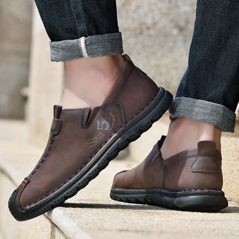 Handmade Leather Men Shoes Casual Retro Breathable Men Loafers Quality Casual Leather Shoes Men Flats Hot Sale Moccasins Shoe