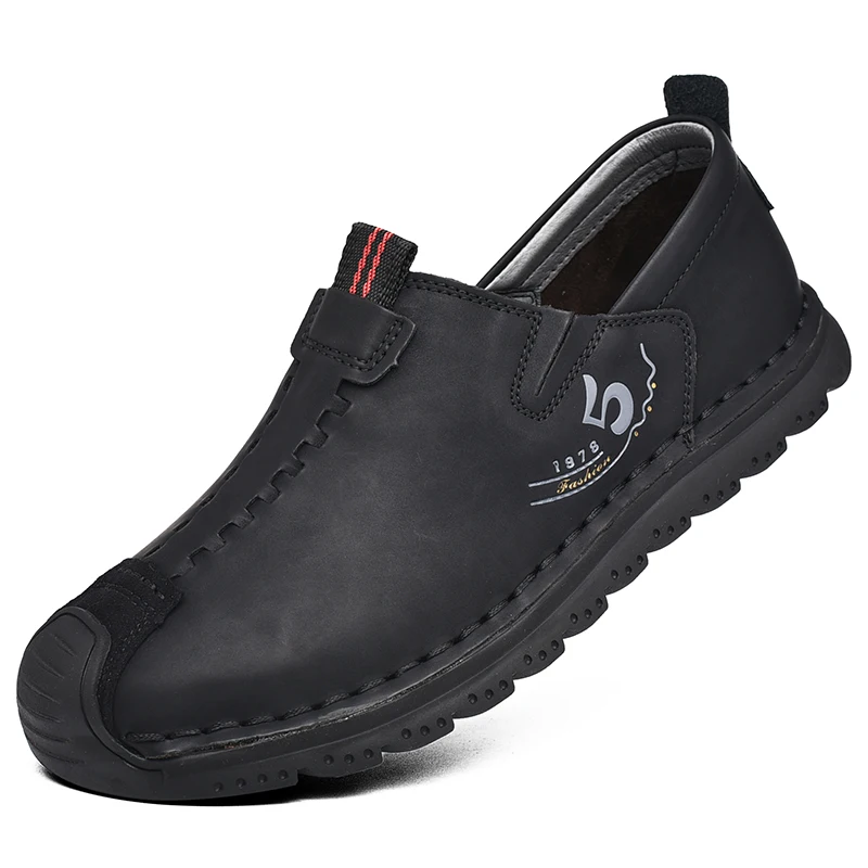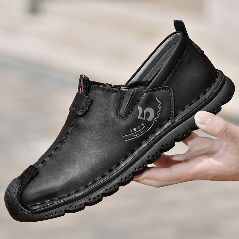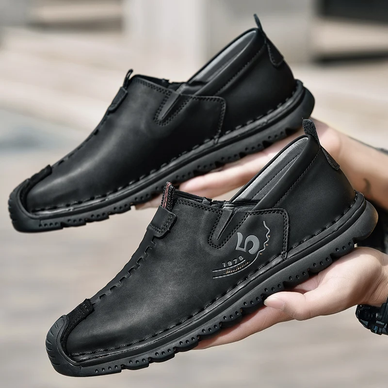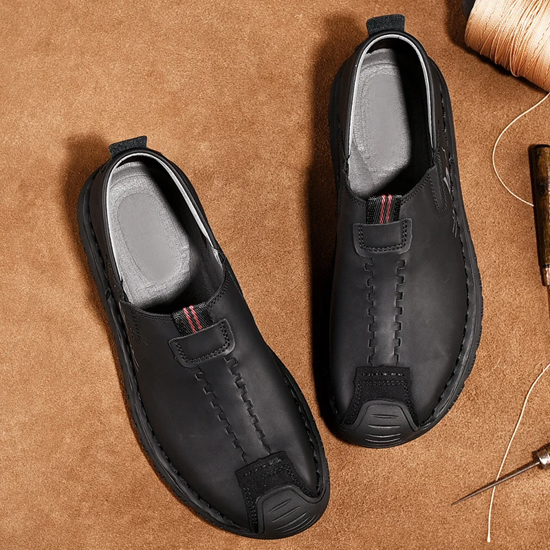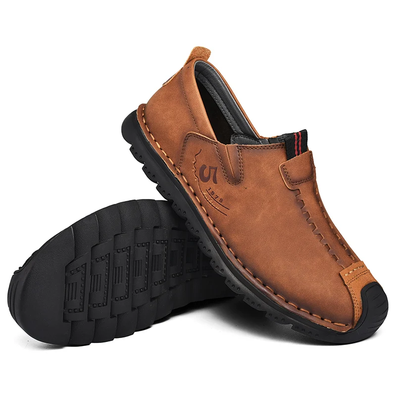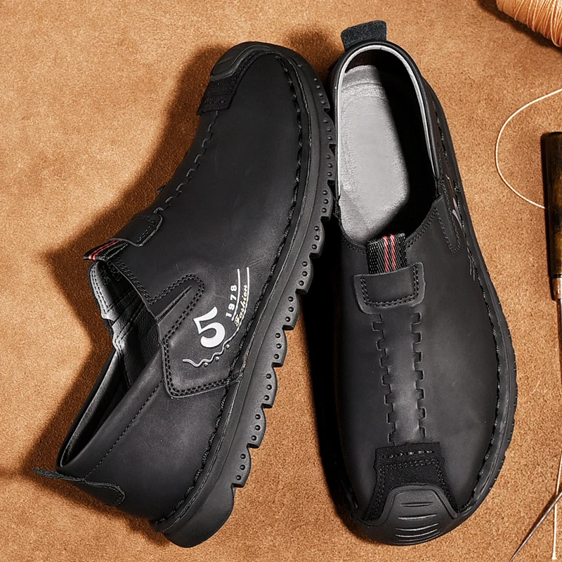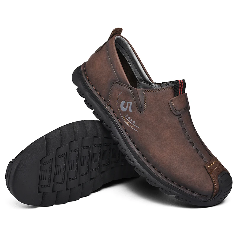 Handmade Leather Men Shoes Casual Retro Breathable Men Loafers Quality Casual Leather Shoes Men Flats Hot Sale Moccasins Shoe