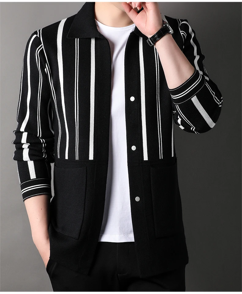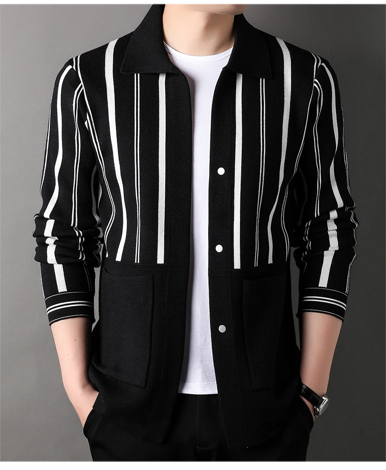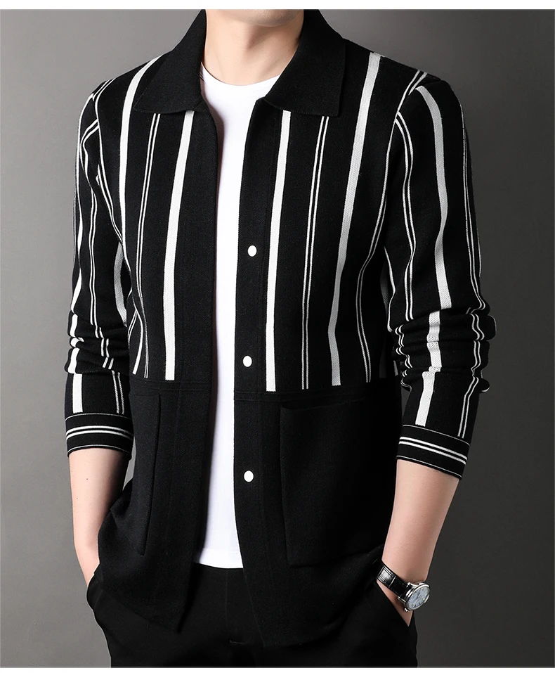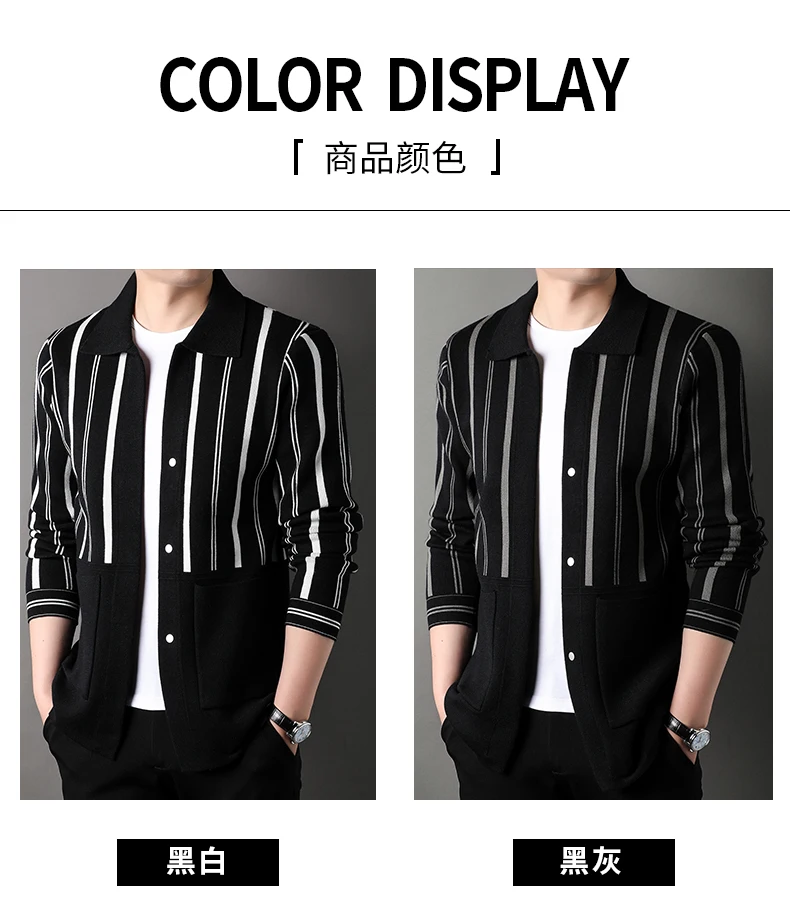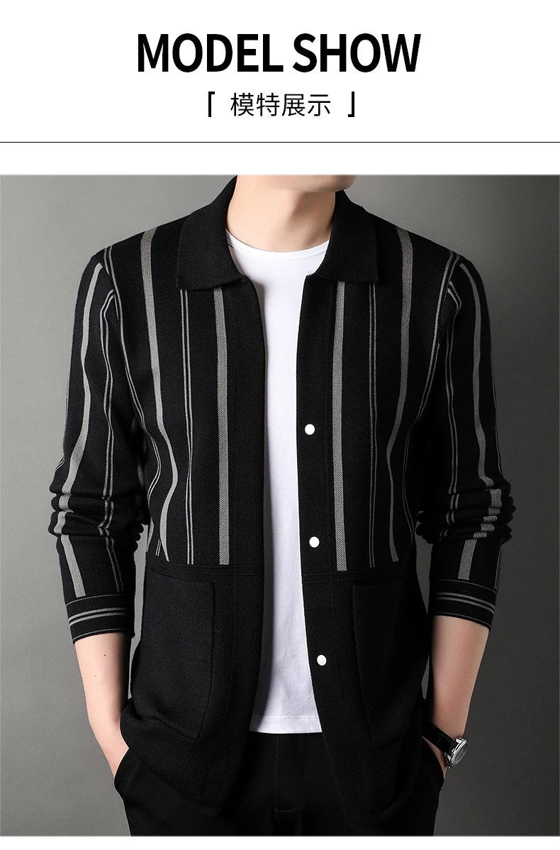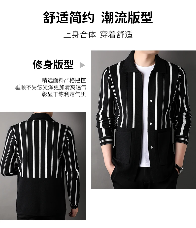 High end brand color contrast men's knitted cardigan autumn and winter new fashion exquisite stripe casual fashion sweater coat
