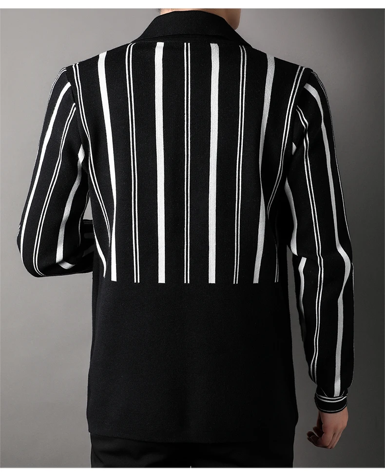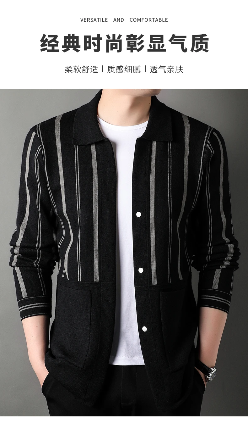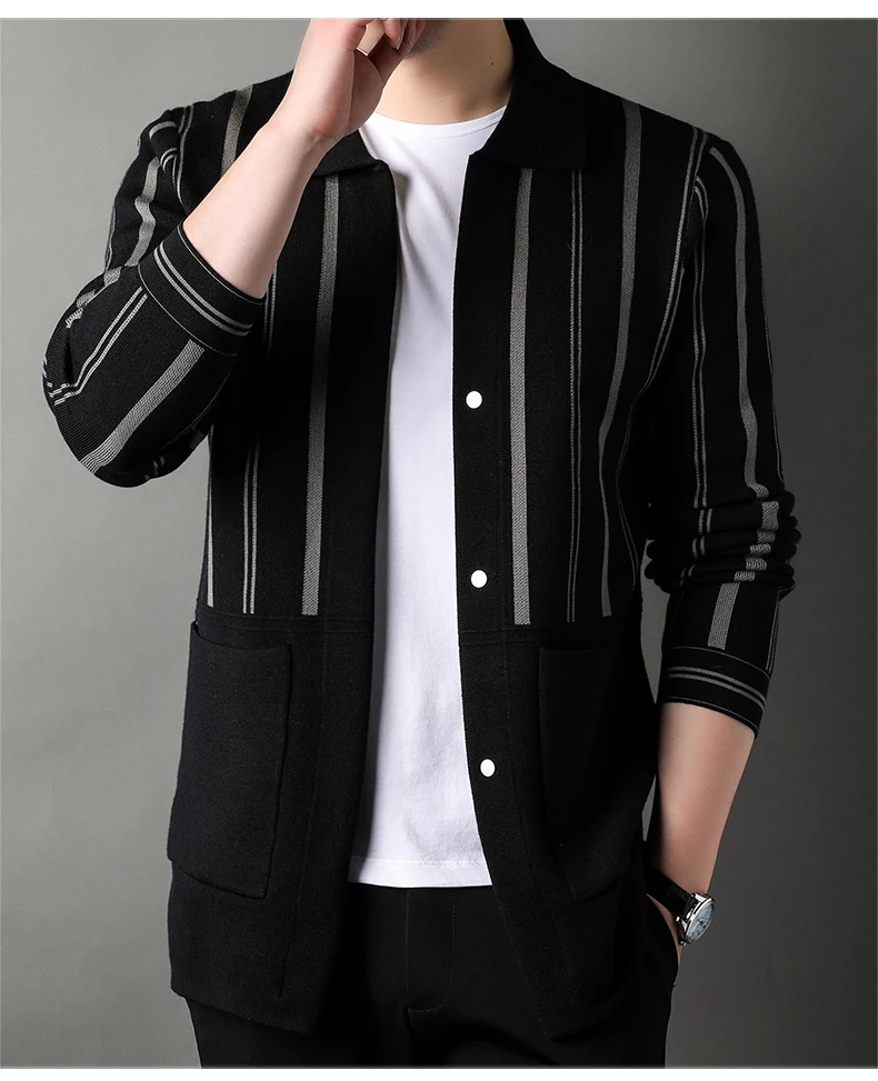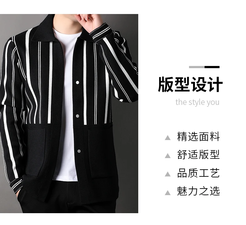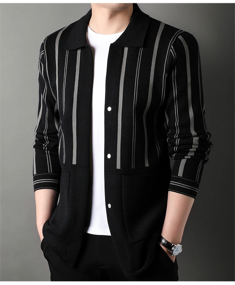 High end brand color contrast men's knitted cardigan autumn and winter new fashion exquisite stripe casual fashion sweater coat