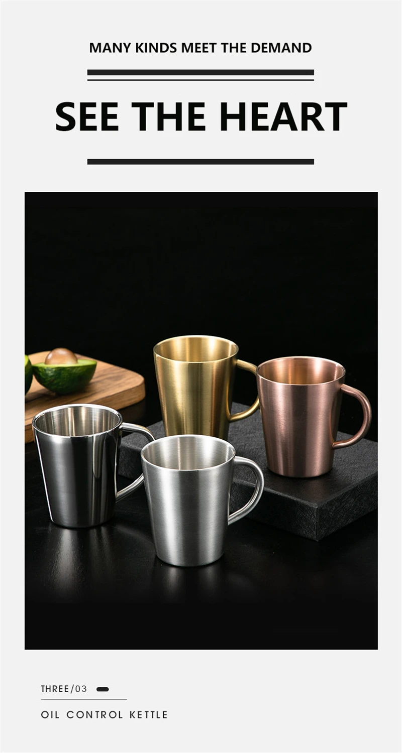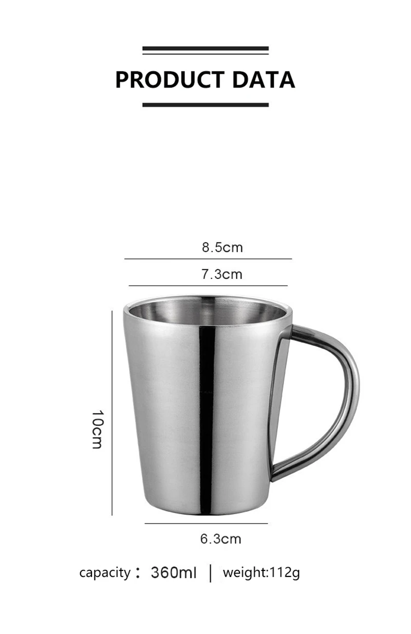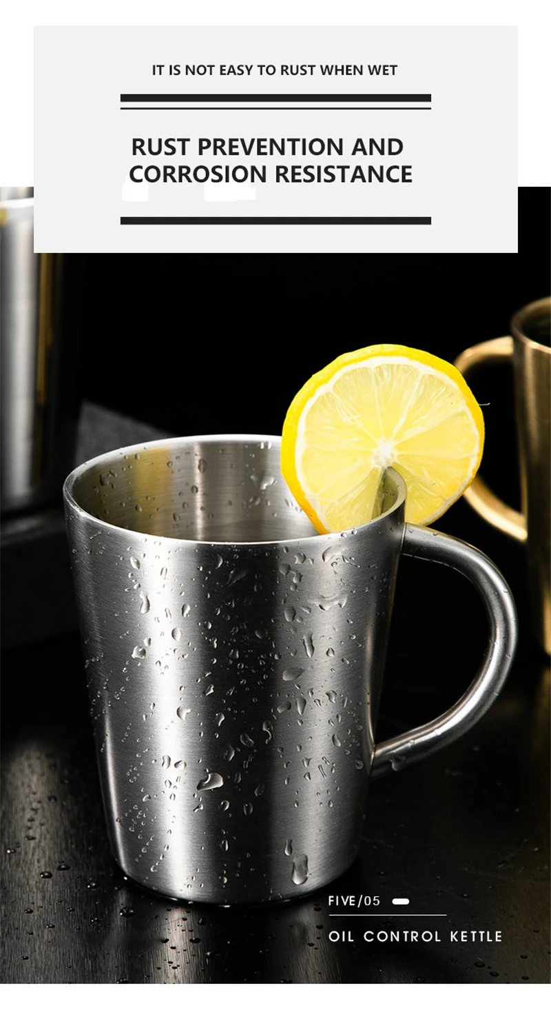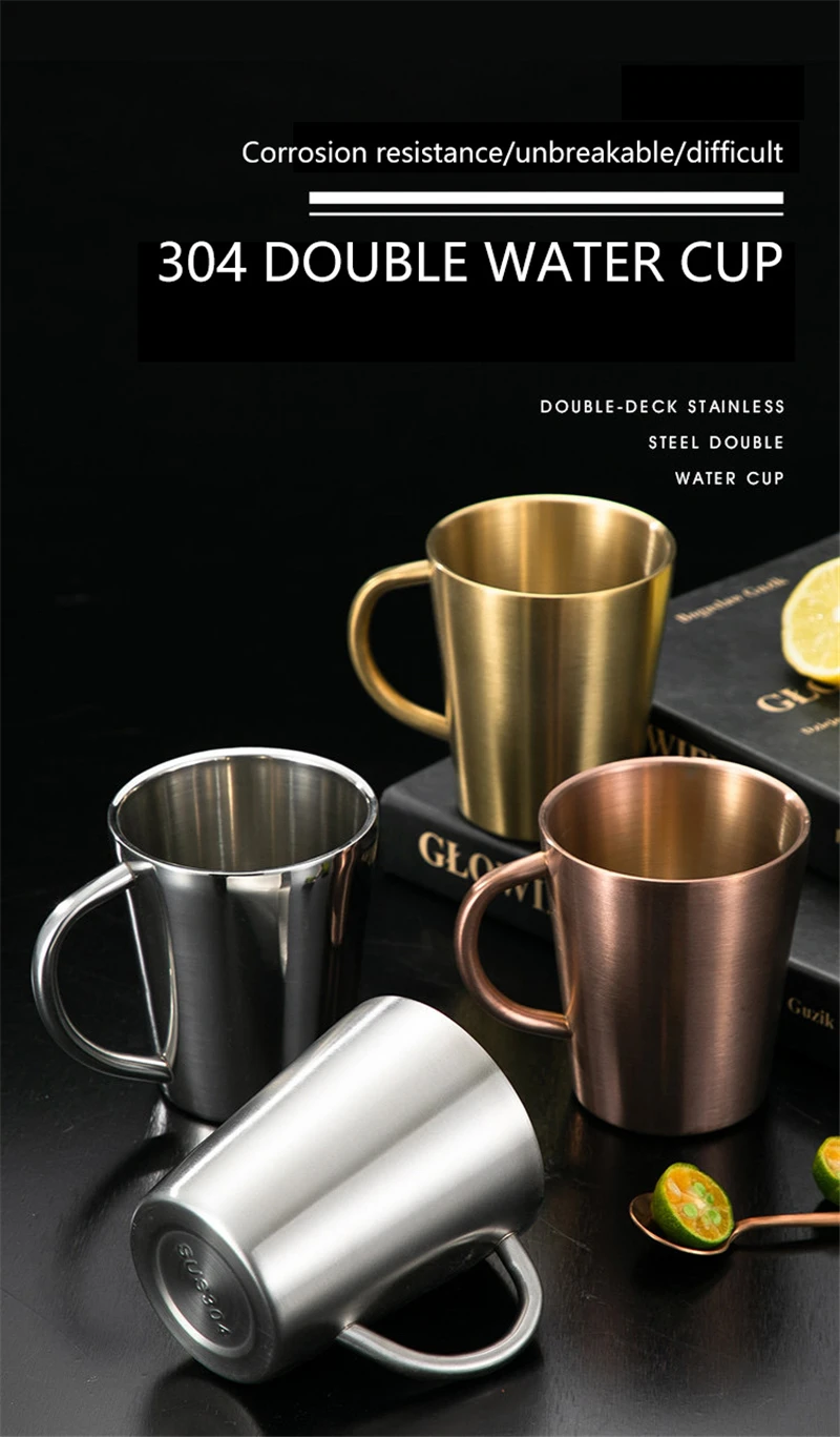 High Quality 304 Stainless Steel Double-layer Coffee Cup Heat Insulation Anti-scalding Tea Cup Beer Mug