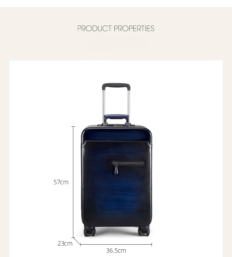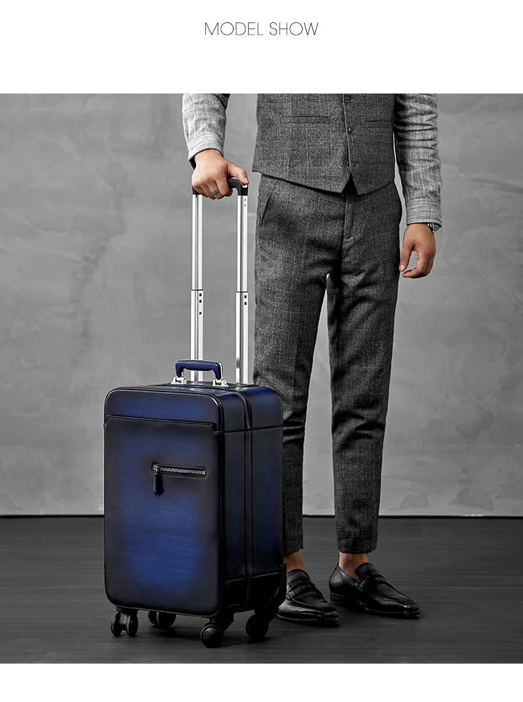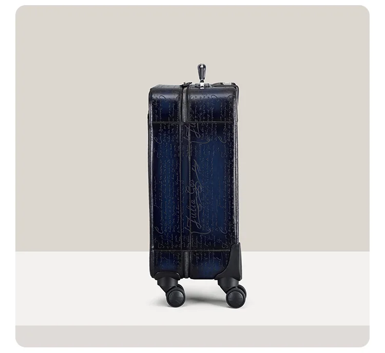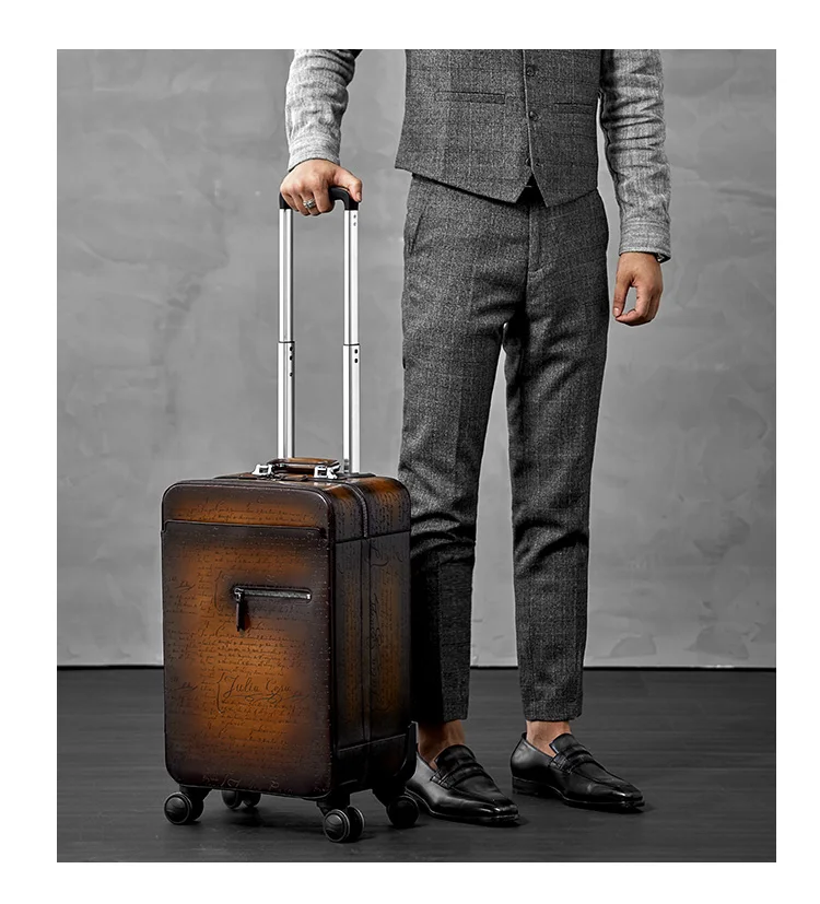 Italian Cowhide Leather Trolley Case Luxury Business Luggage 22" Genuine Leather Universal Wheel Password Boarding Soft Suitcase