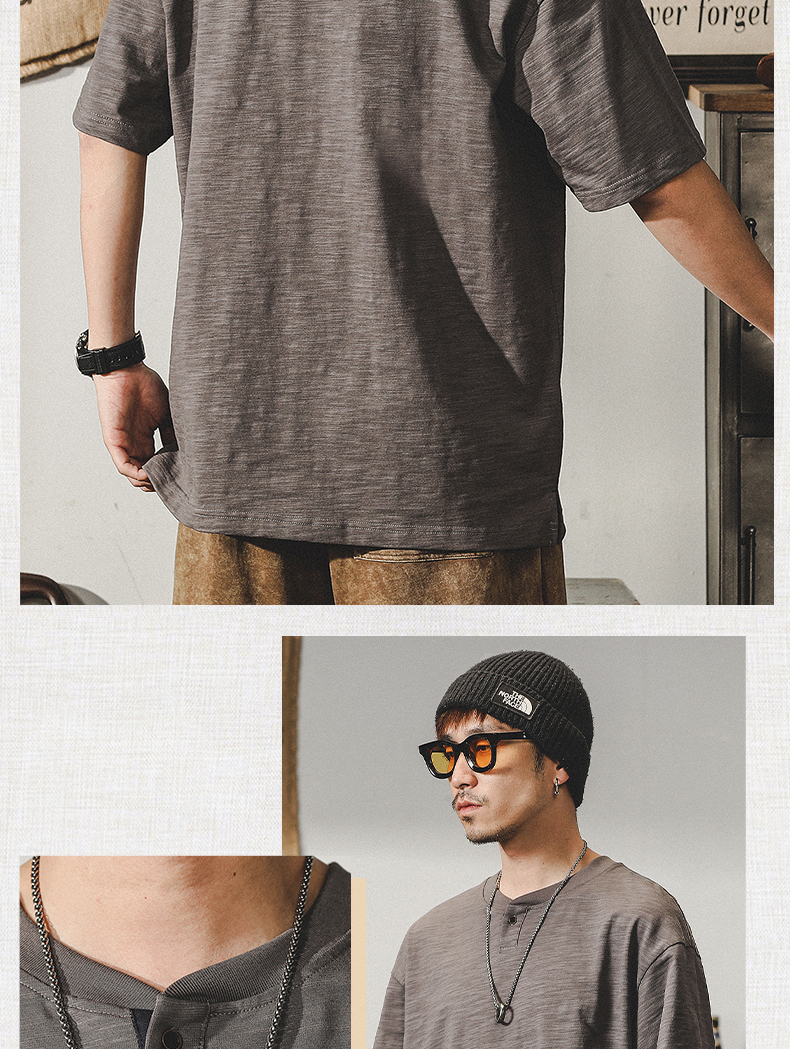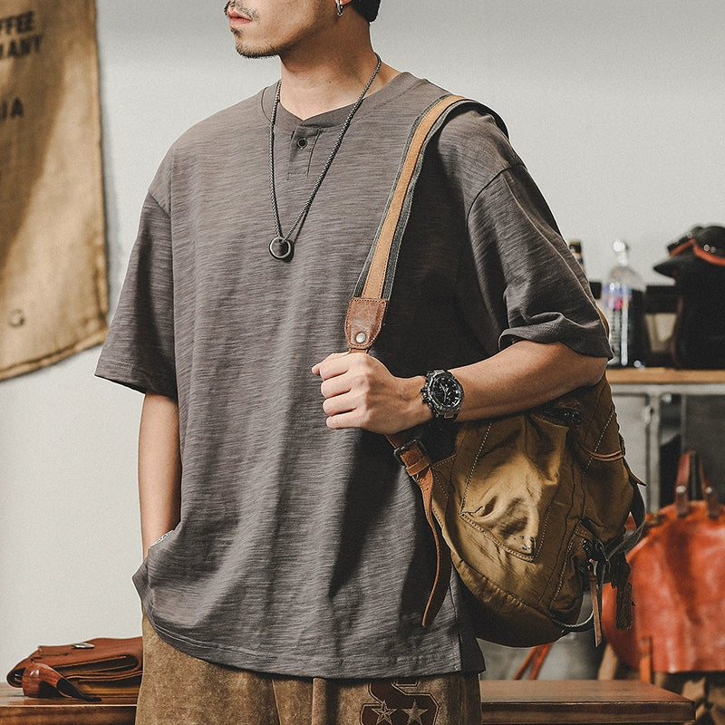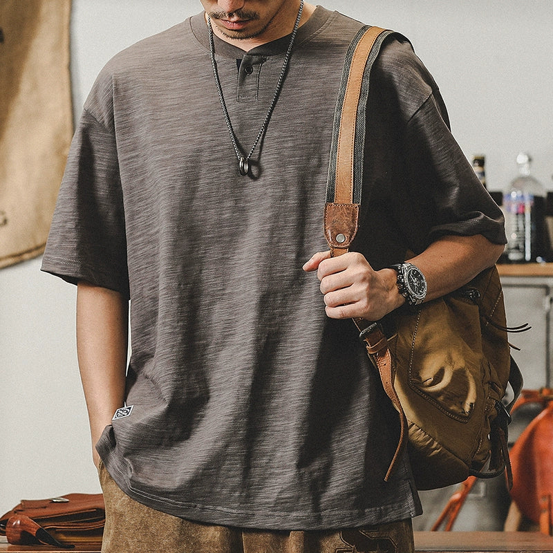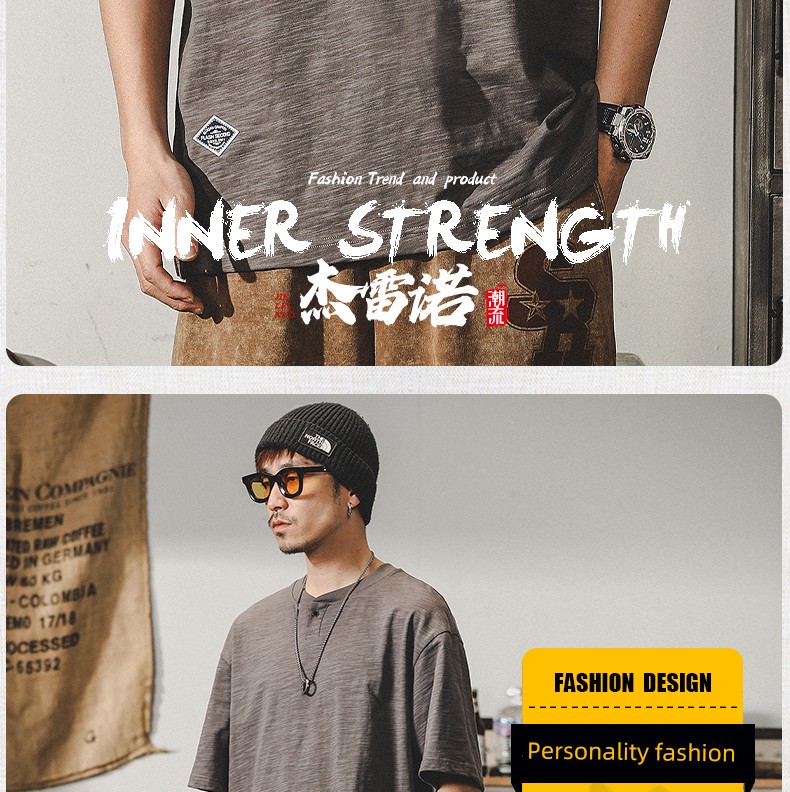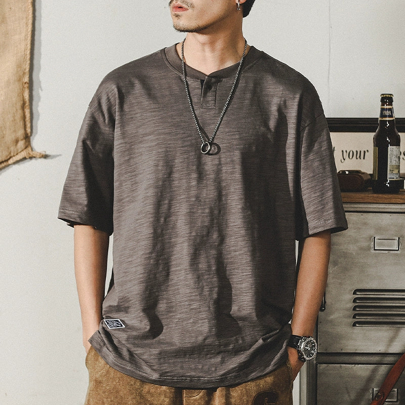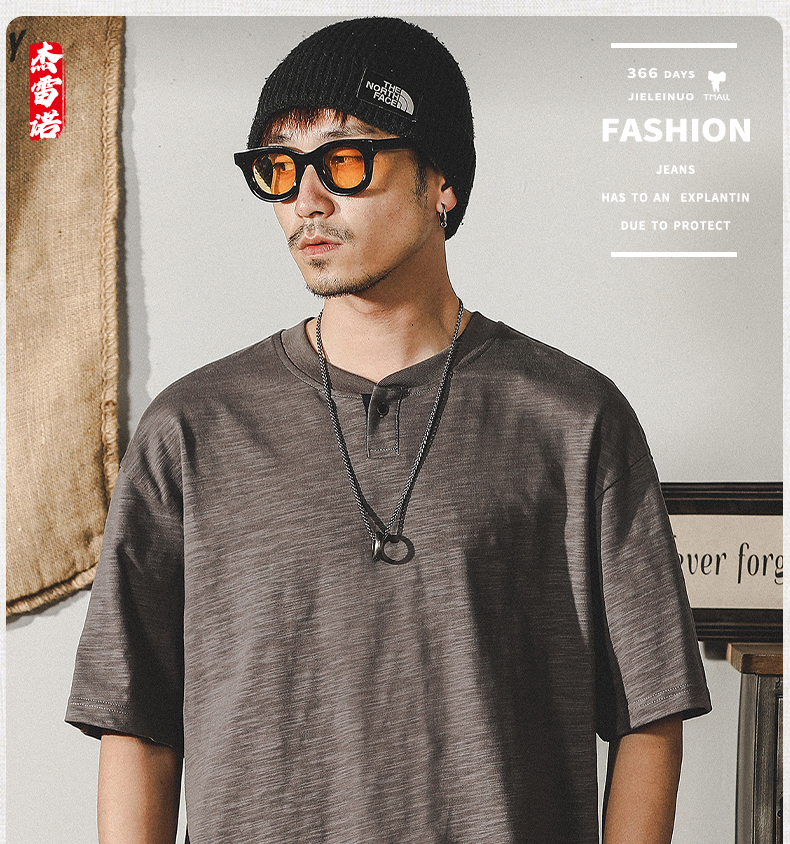 Jereno Retro Slub Plain Tough Guy Short Sleeve T-shirt