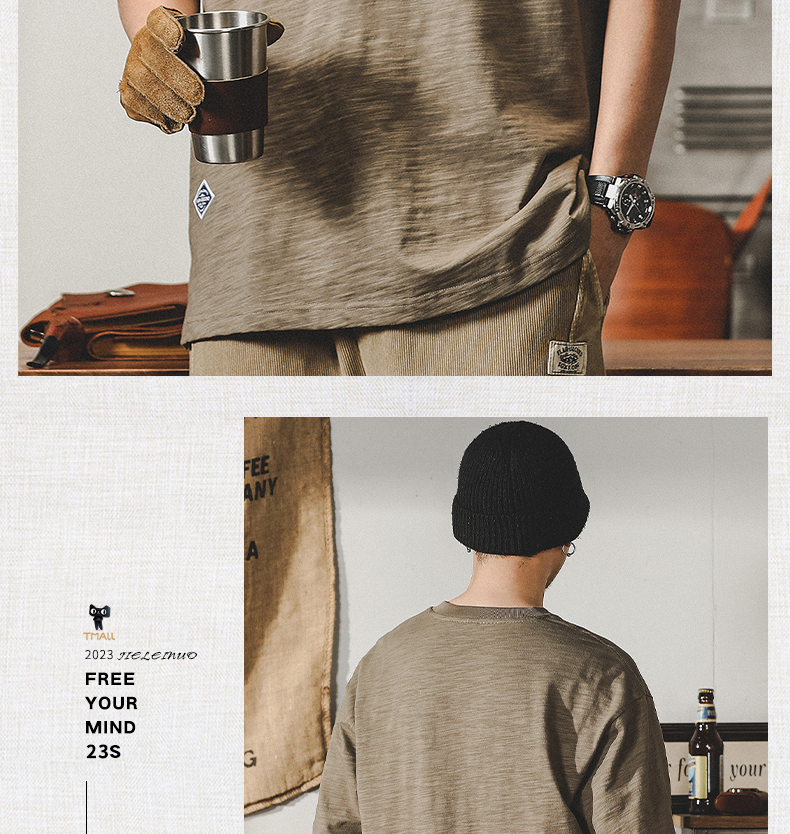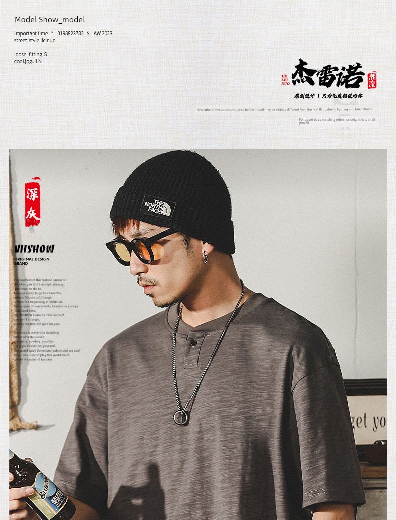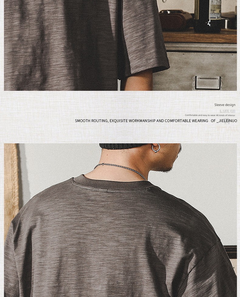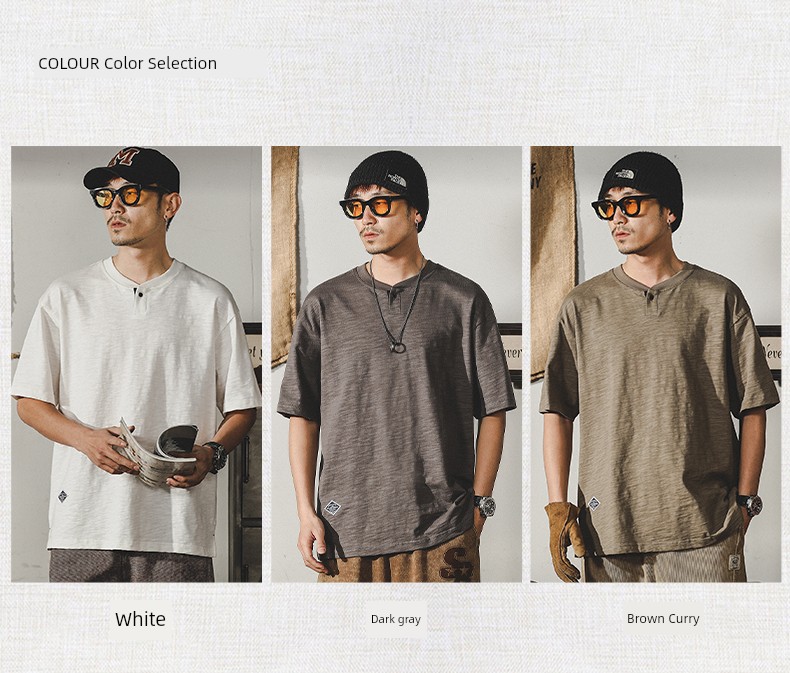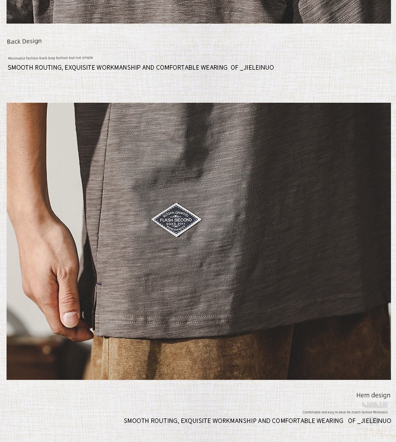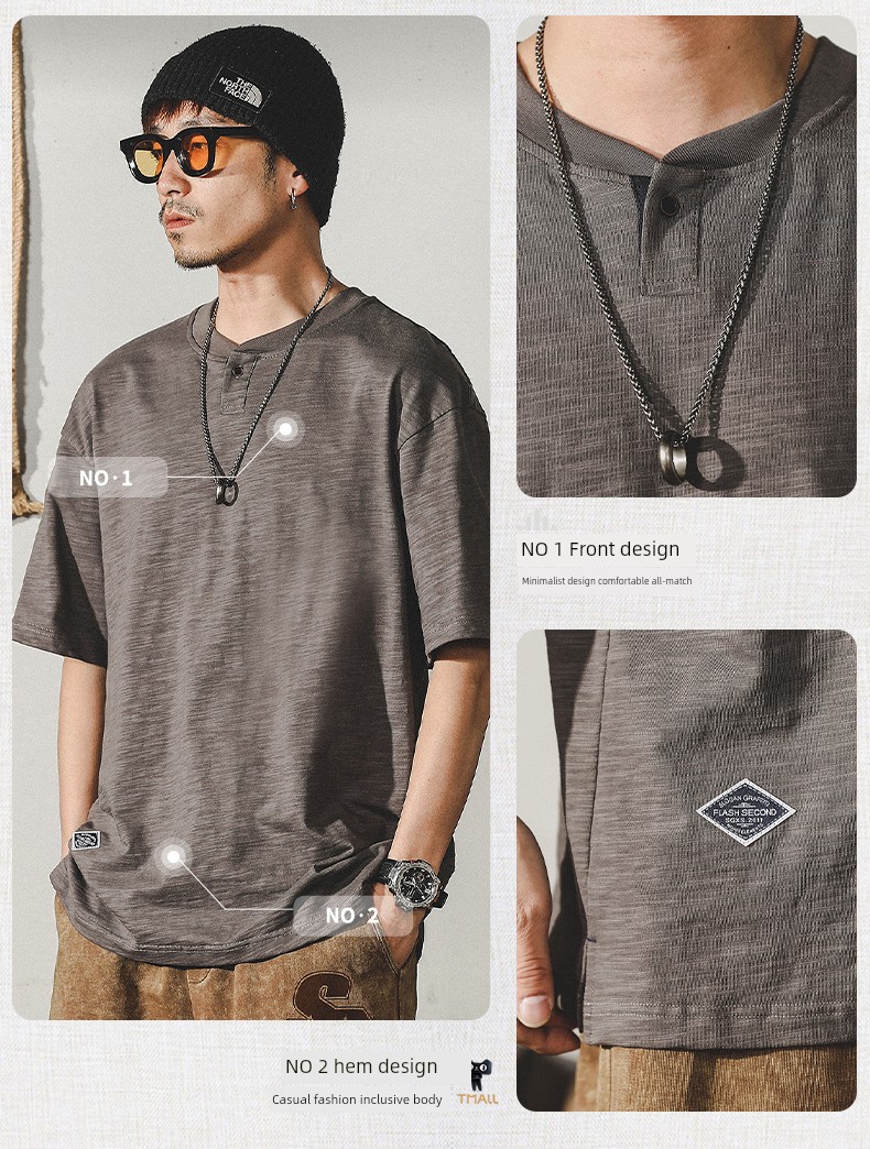 Jereno Retro Slub Plain Tough Guy Short Sleeve T-shirt