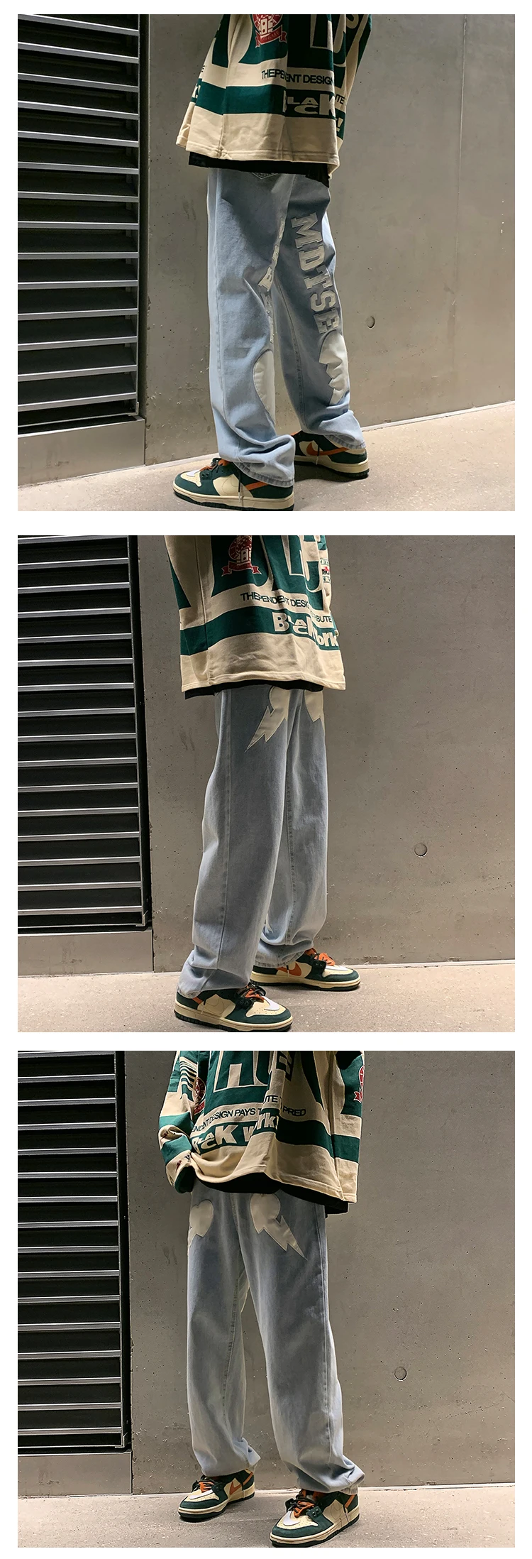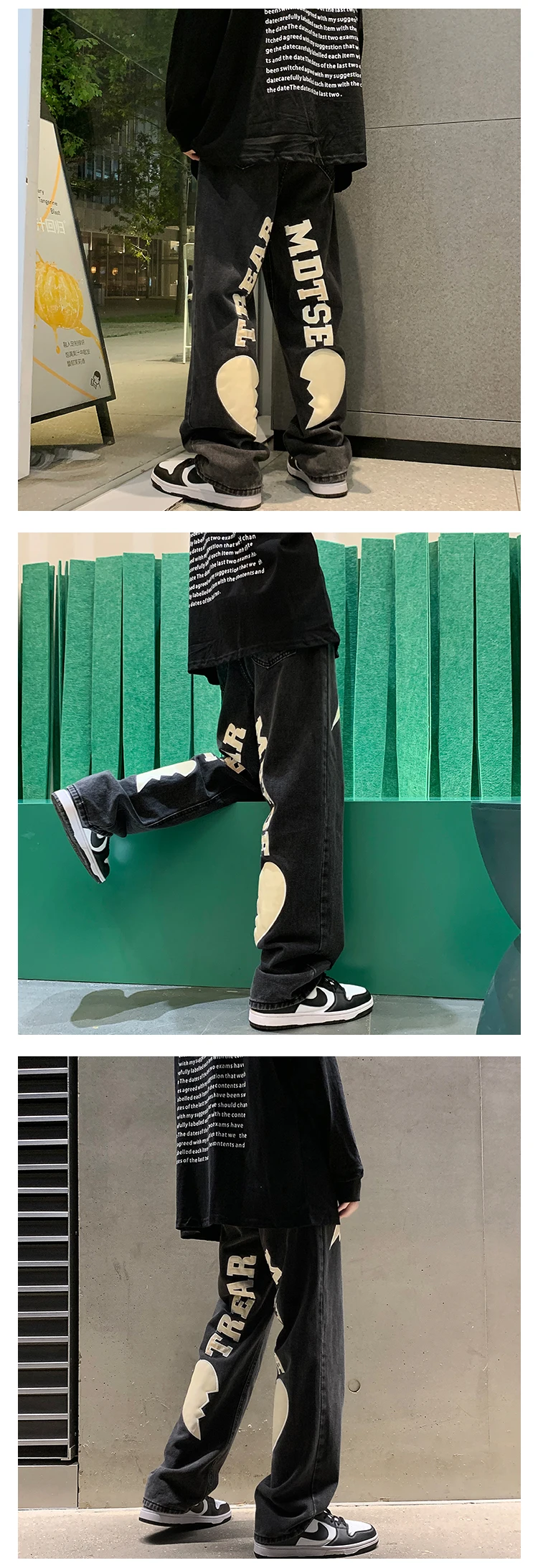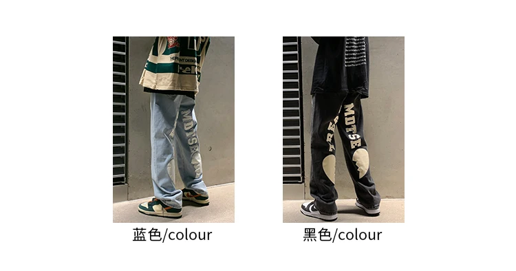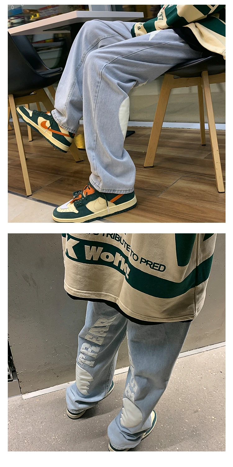 Men's Letter Printed Denim Pants Autumn Winter Fashion Straight Casual Jeans Japan Style Streetwear Hip Hop Mopping Trousers