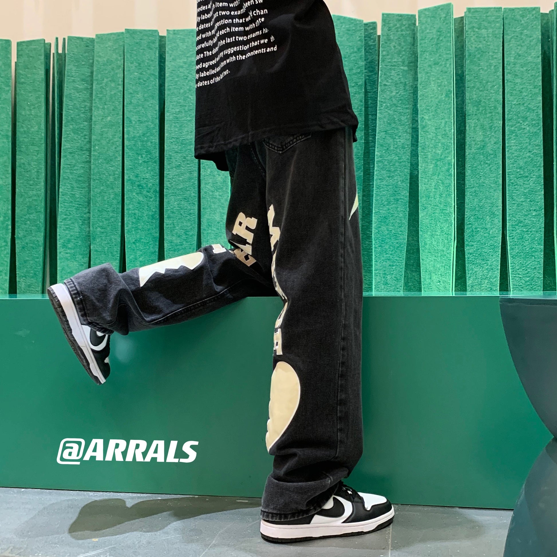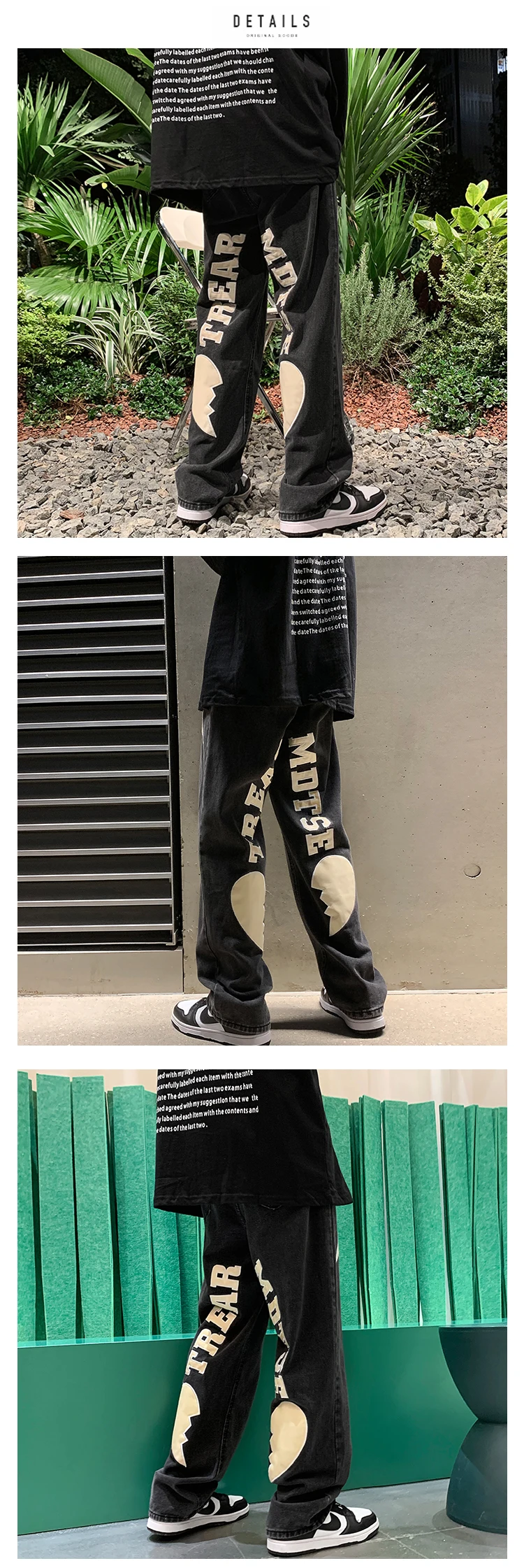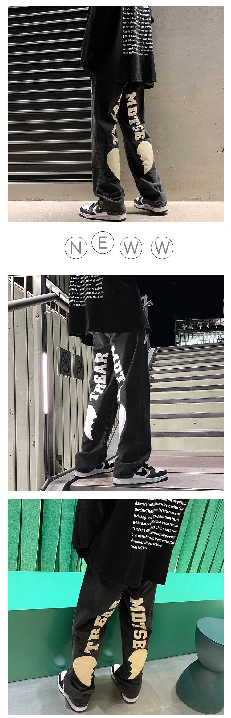 Men's Letter Printed Denim Pants Autumn Winter Fashion Straight Casual Jeans Japan Style Streetwear Hip Hop Mopping Trousers