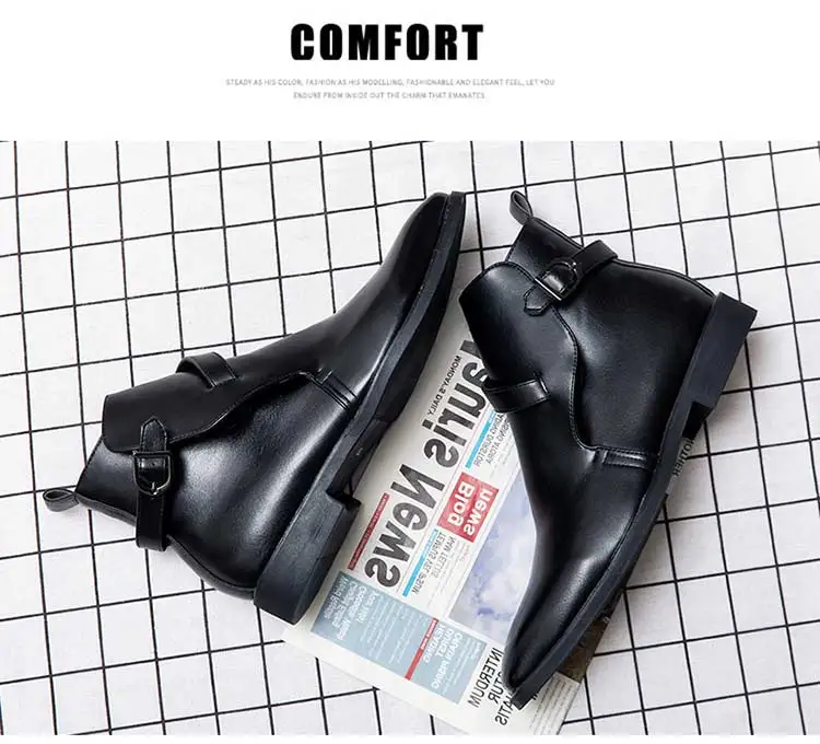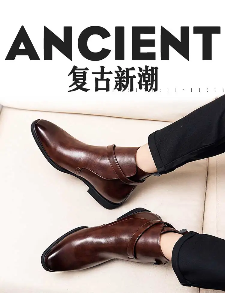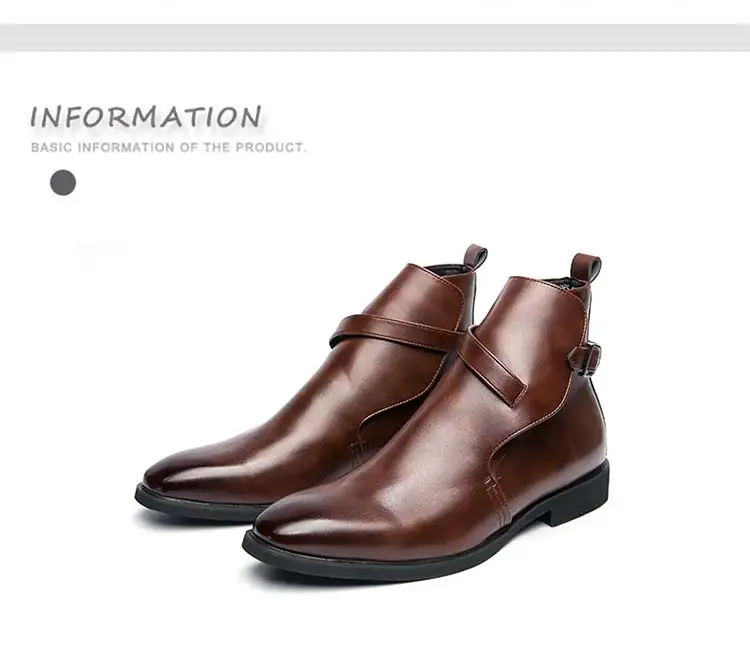 Men Boots Brown Black Business Buckle Strap Pu Leather Handmade Shoes for Men with Free Shipping Botas Hombre