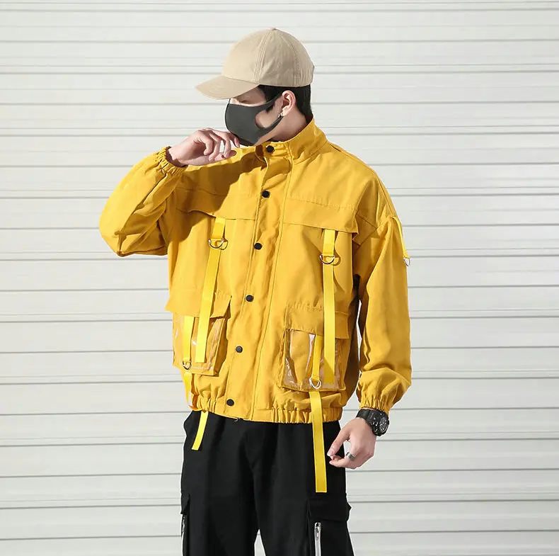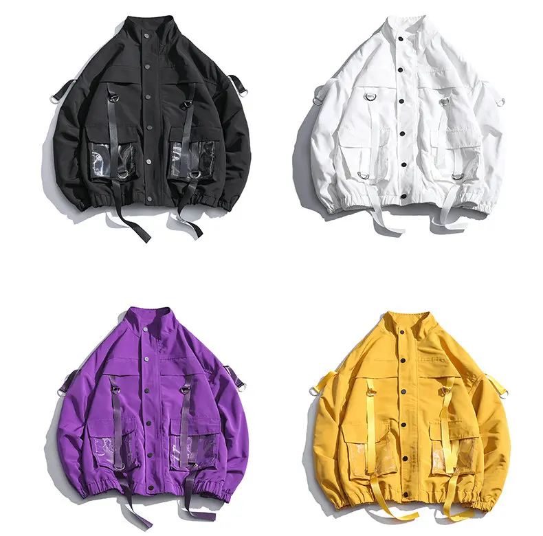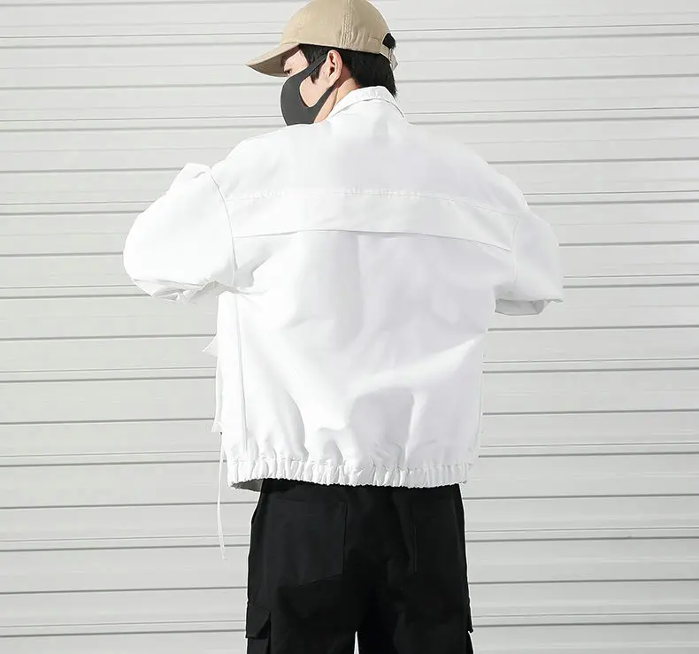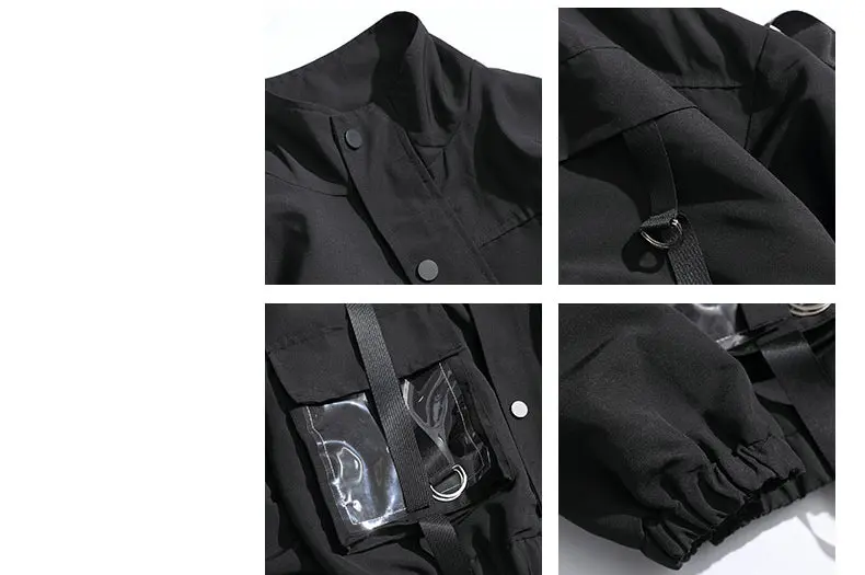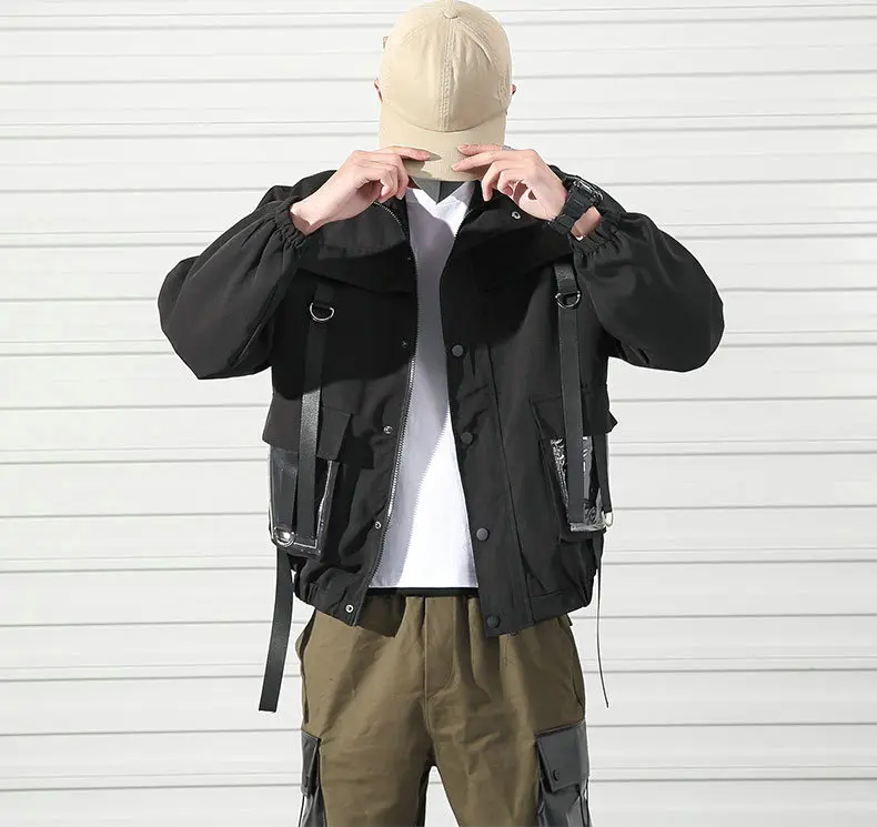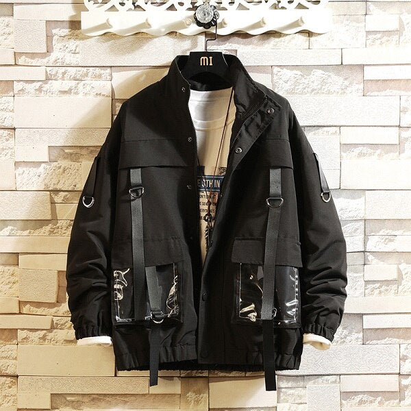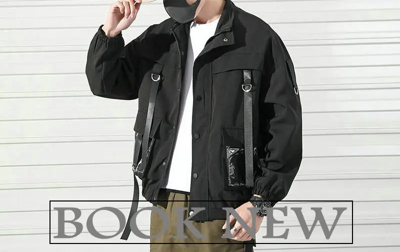 Men Military Bomber Jacket Ribbons Pockets New Spring Autumn Mens Streetwear Fashion Coat Casual Jackets Man Outwear