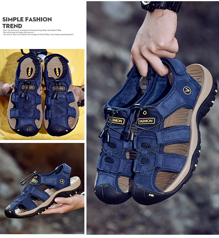 MIXIDELAI Genuine Leather Men's Shoes Summer Men's Sandals Men Sandals Fashion Outdoor Beach Sandals And Slippers Big Size 38-48