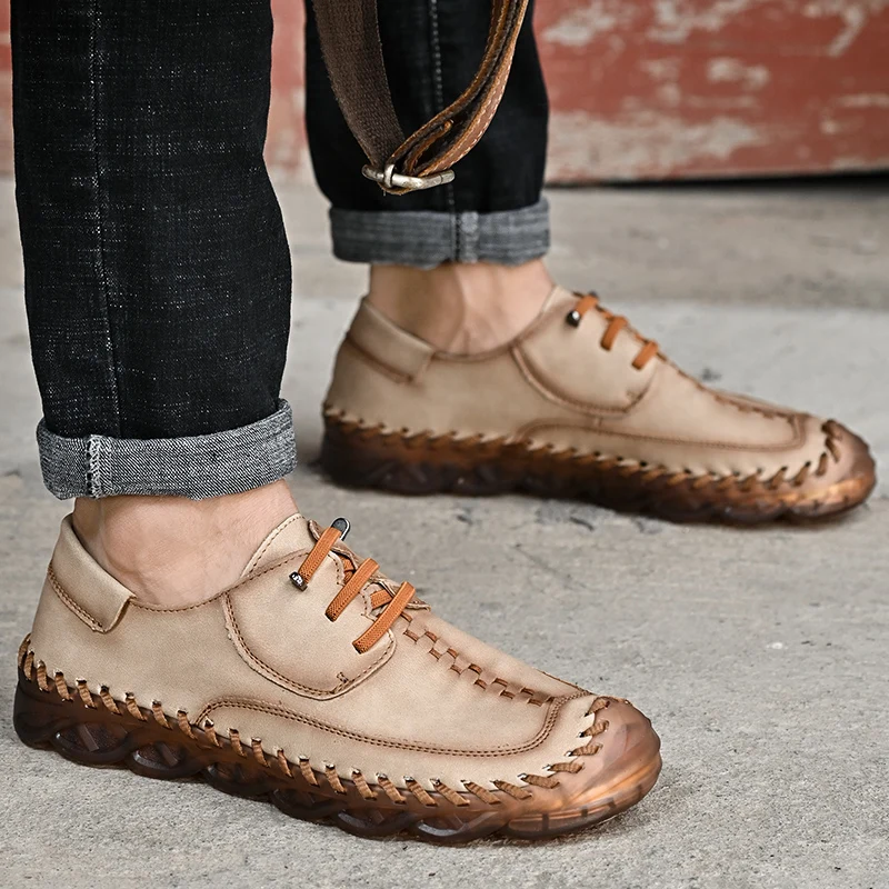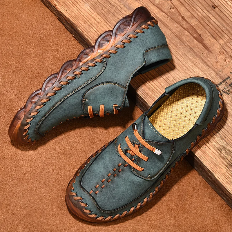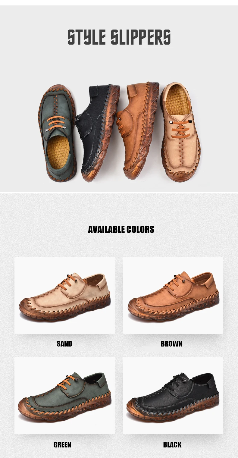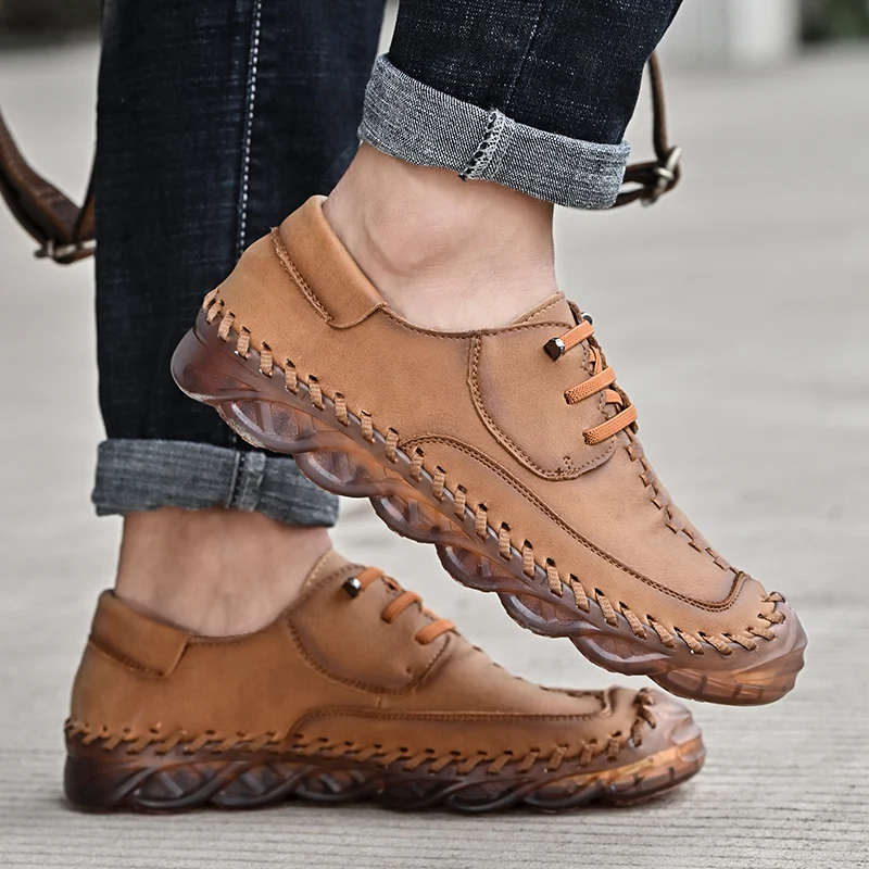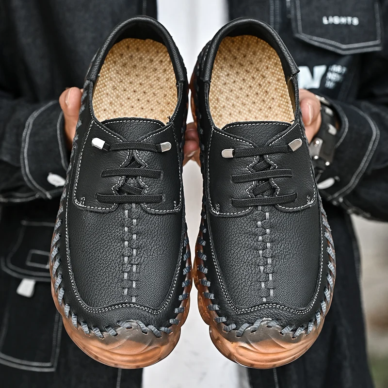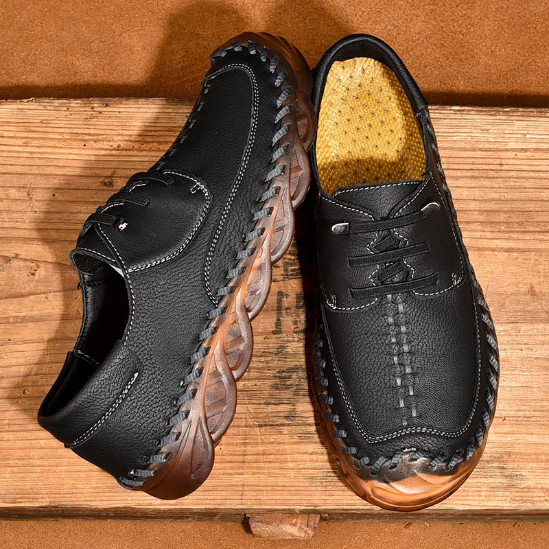 New 2022 Handmade Leather Shoes Men Outdoor Breathable Men Loafers Casual Leather Men Shoes Flats Hot Sale Moccasins Foot Wear