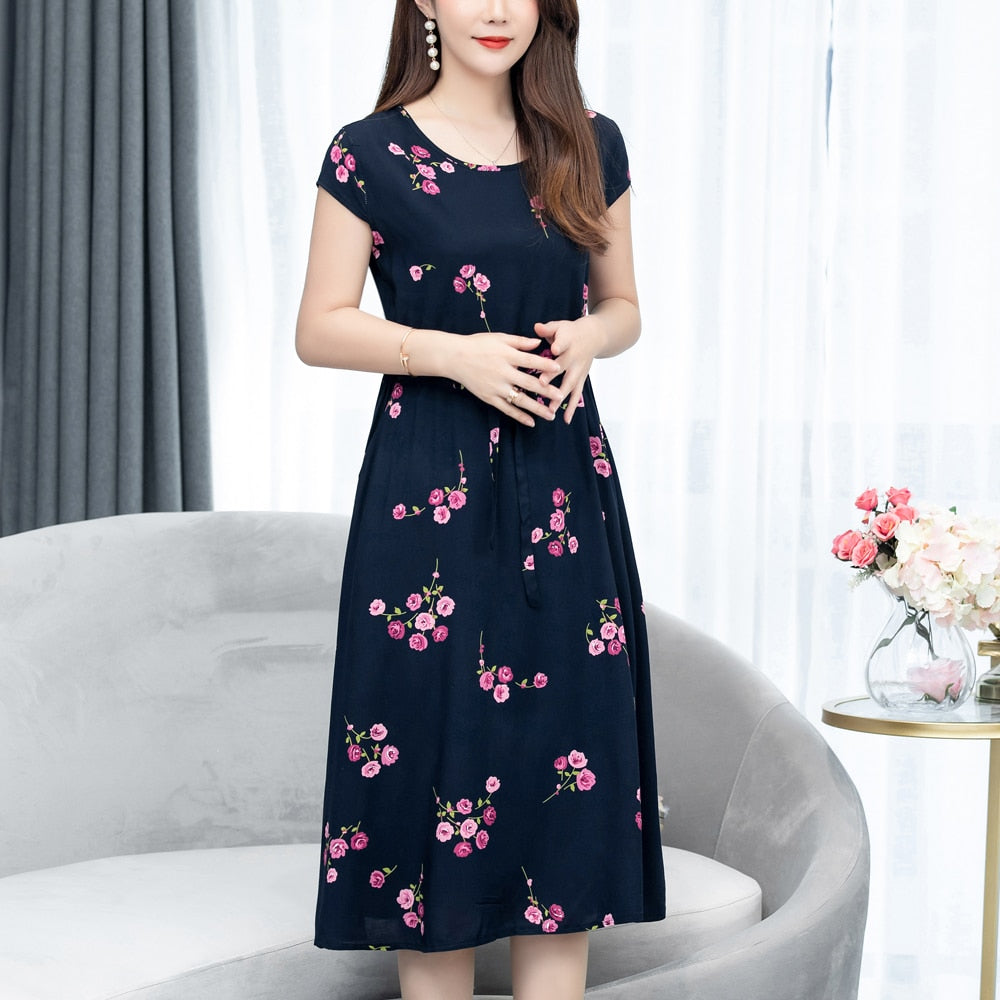New Fashion Casual Loose Summer Dress For Women Plus Size Clothes Print Elegant O-neck Short Sleeve Natural Woman Clothing