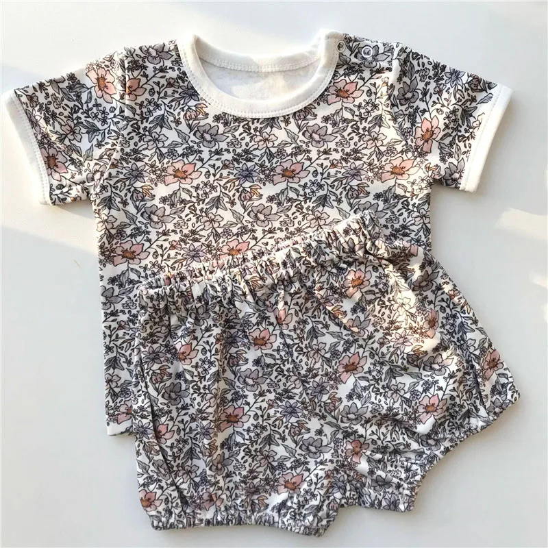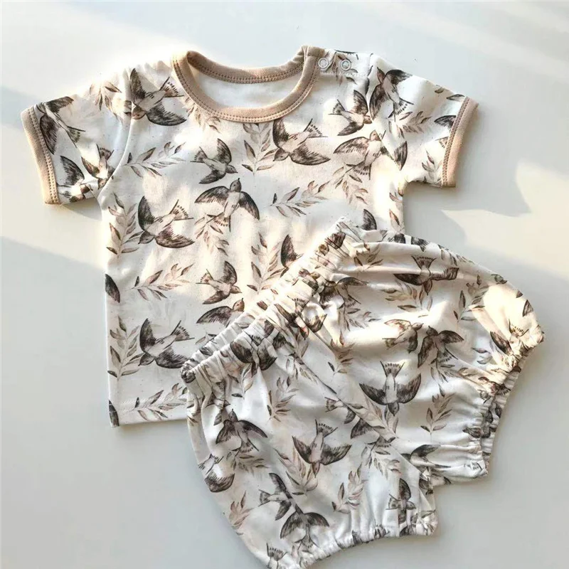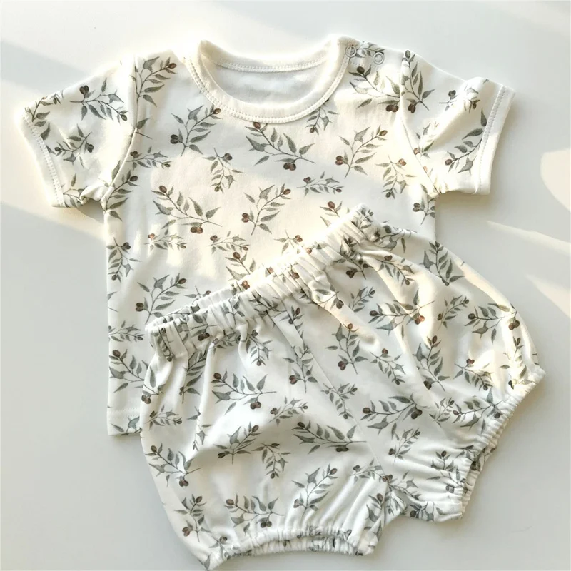 Newborn Baby Girl Boy Clothes Summer Floral Cotton Baby Clothes Sets Short Sleeve Tops T-shirt + Shorts 2PCs Baby Outfits