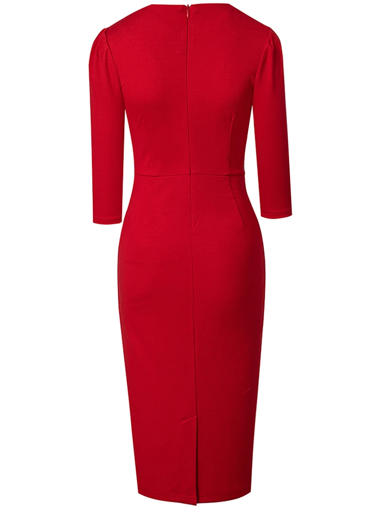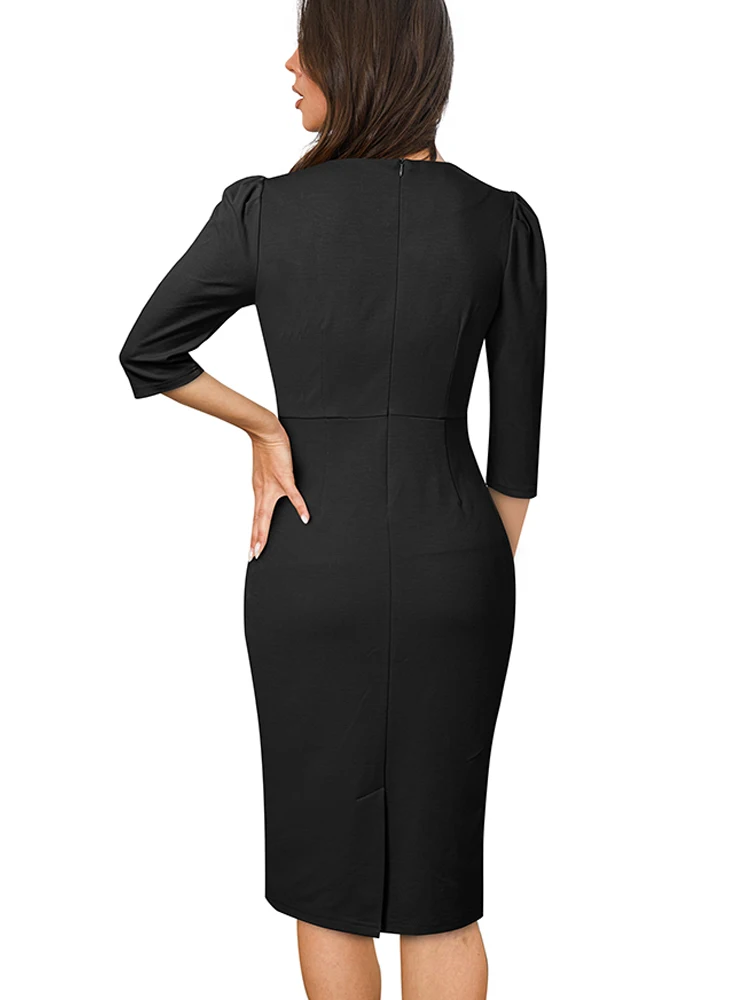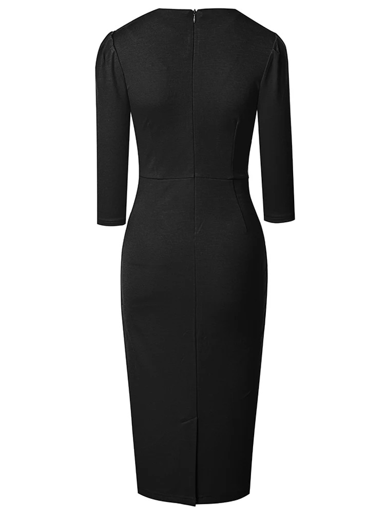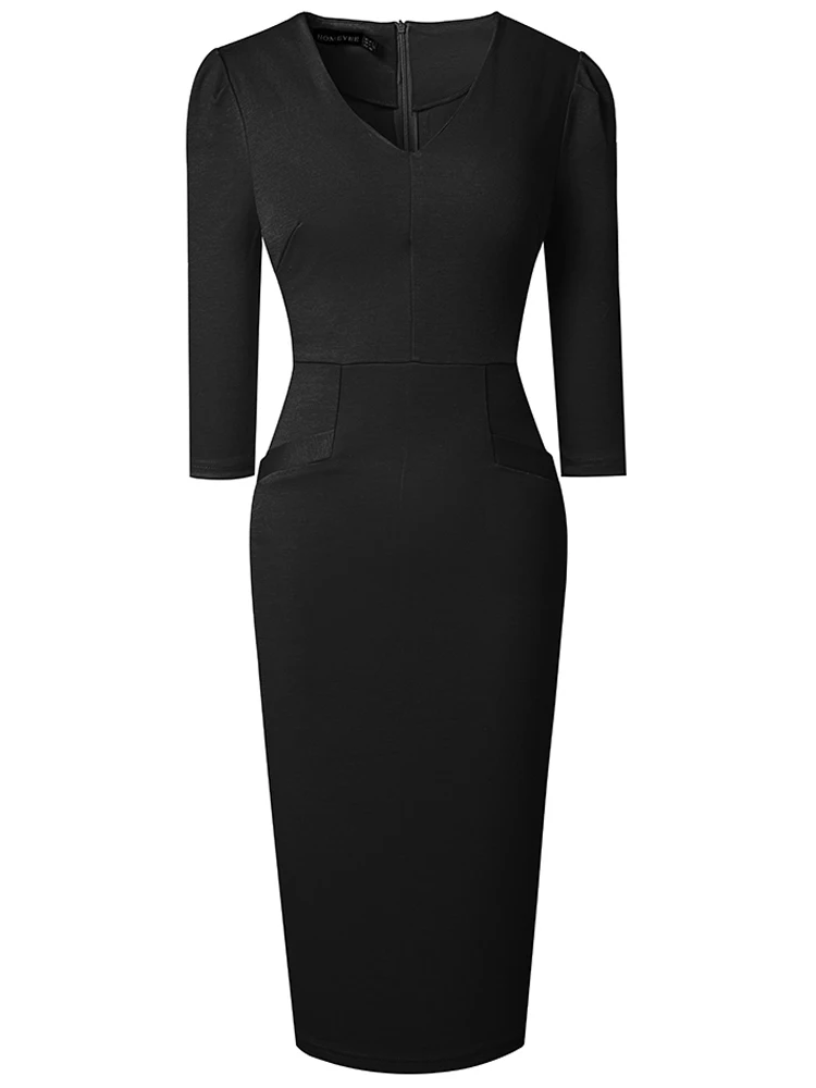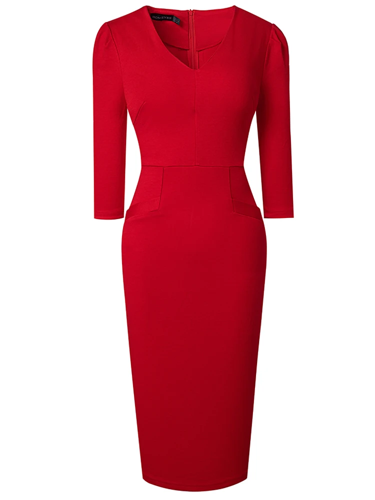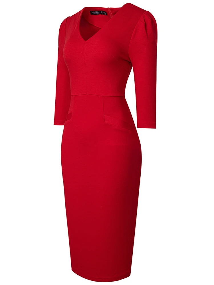 Nice-Forever Autumn Women Classy V Neck Plain Dresses Formal Business Party Elegant Bodycon Slim Dress B742
