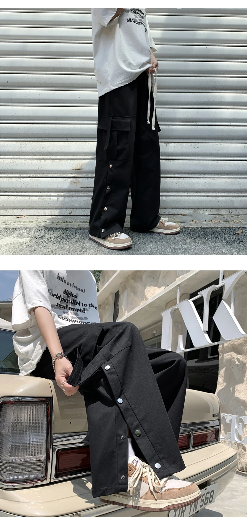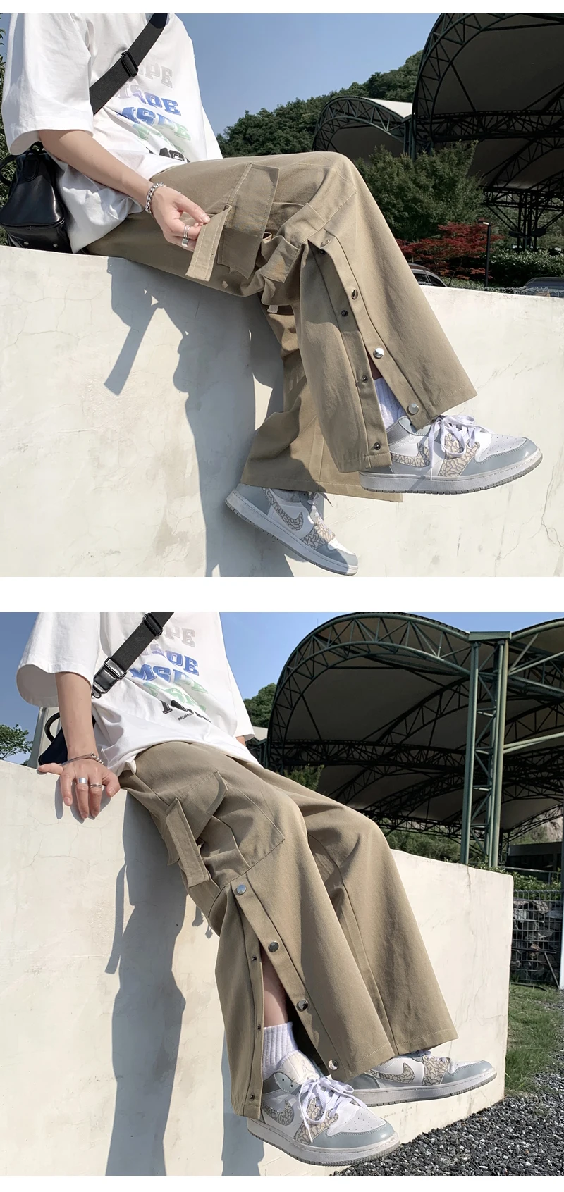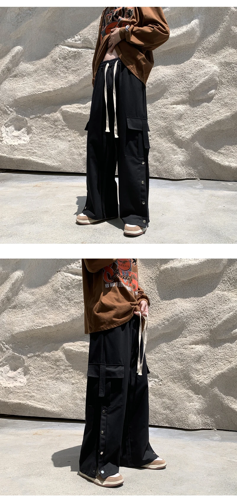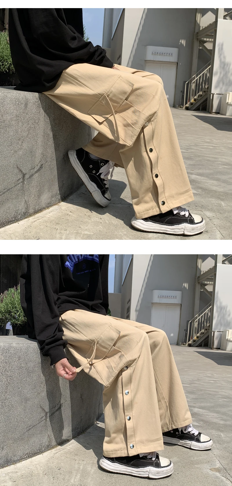 Purple Wide Leg Hip Hop Cargo Pants Button Decor Men Casual Cotton Pants Loose Baggy Trousers Streetwear Joggers Men Clothing