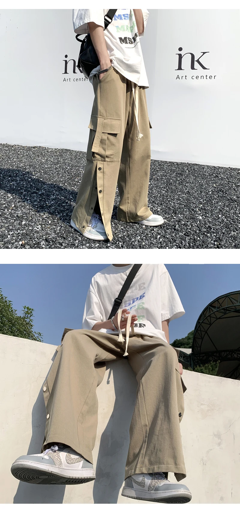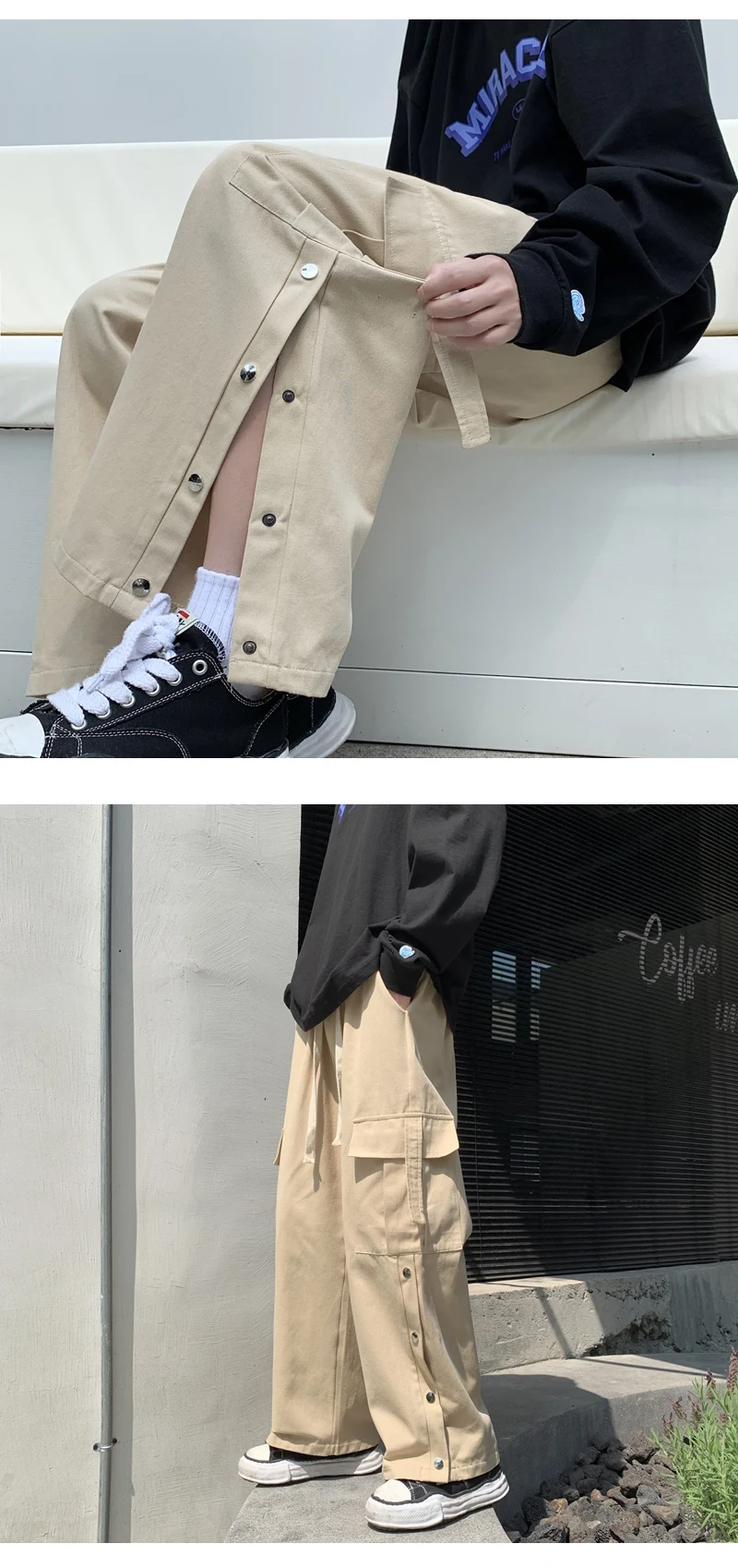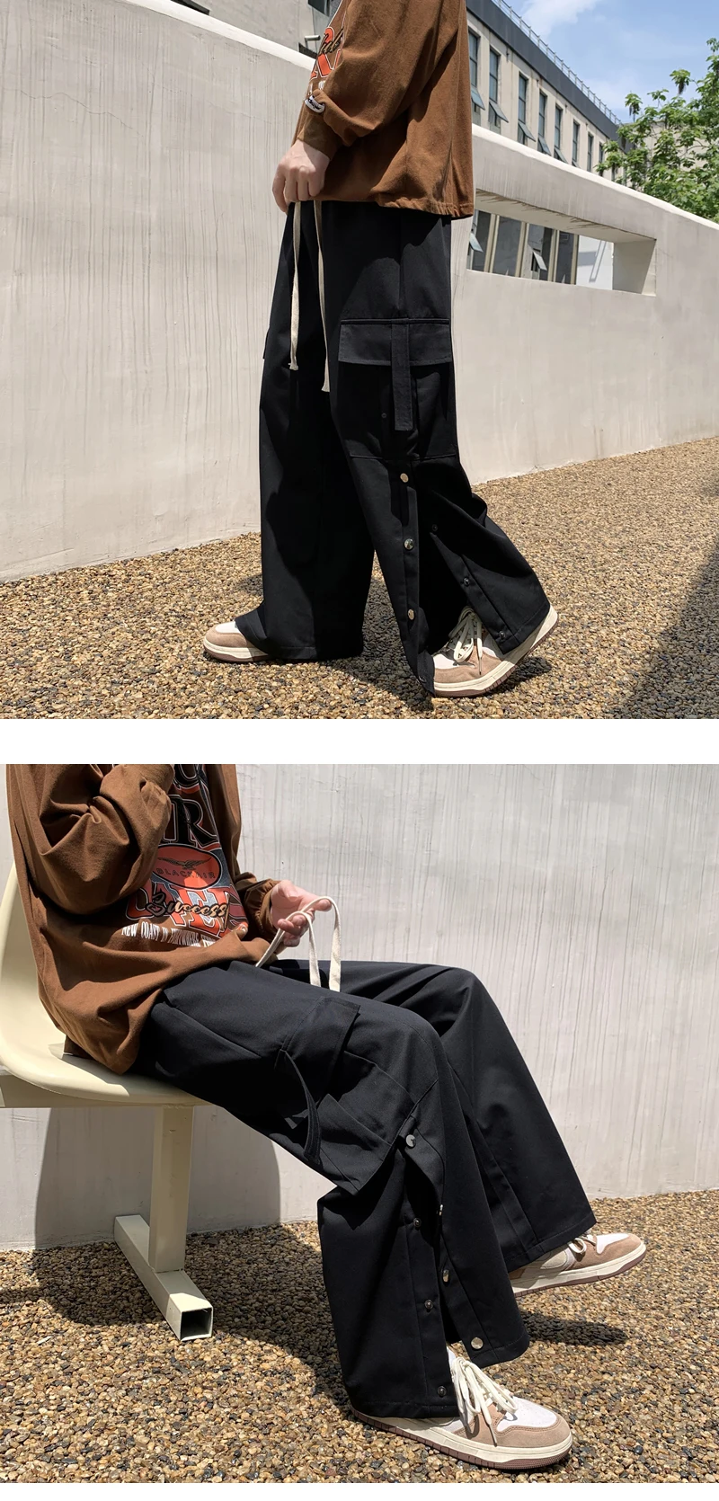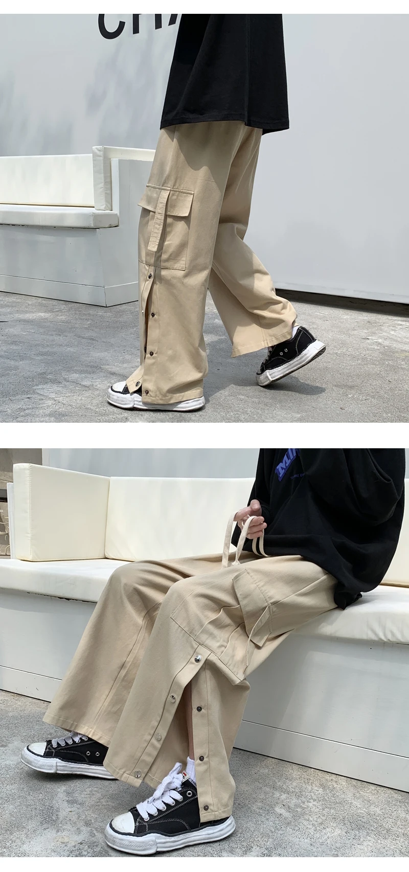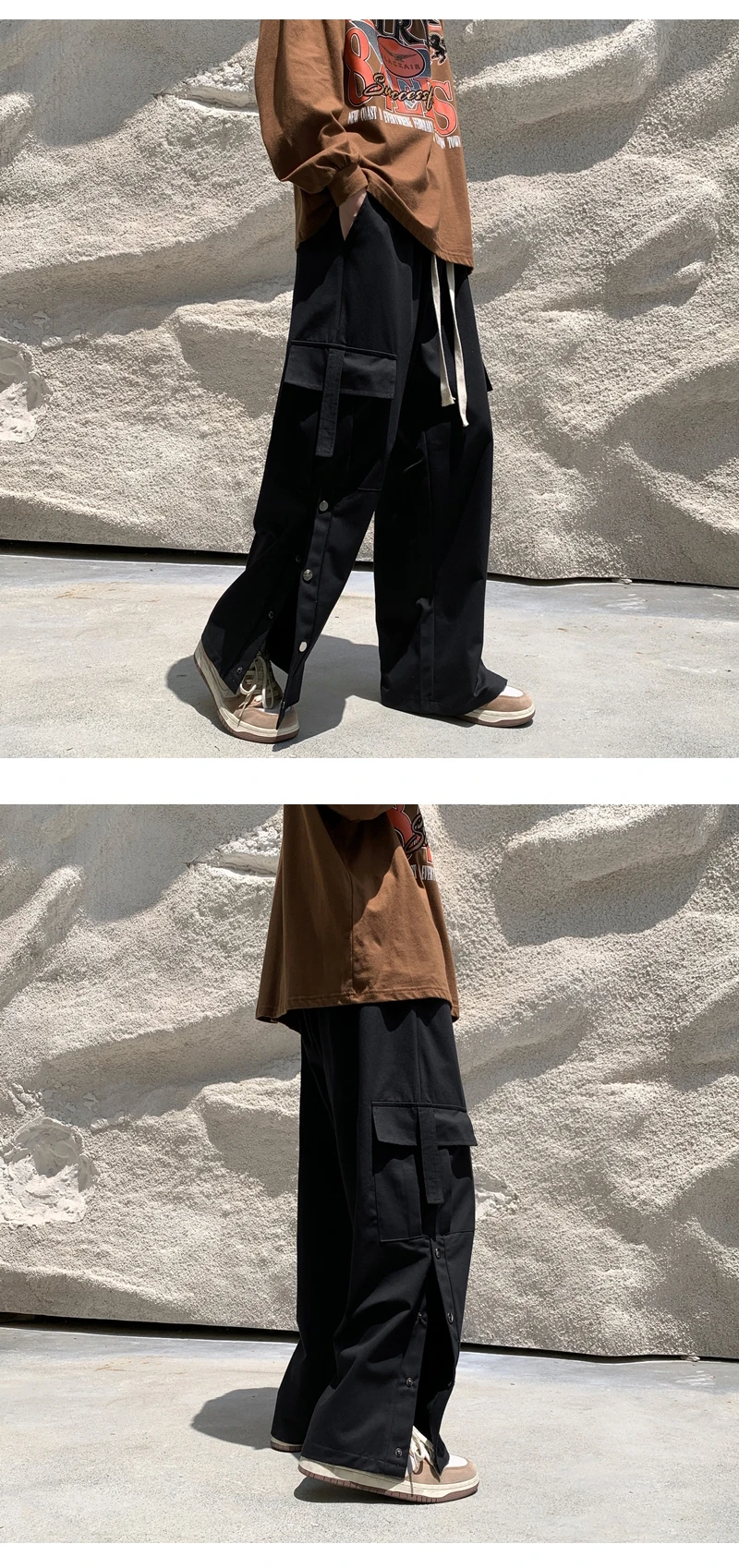 Purple Wide Leg Hip Hop Cargo Pants Button Decor Men Casual Cotton Pants Loose Baggy Trousers Streetwear Joggers Men Clothing