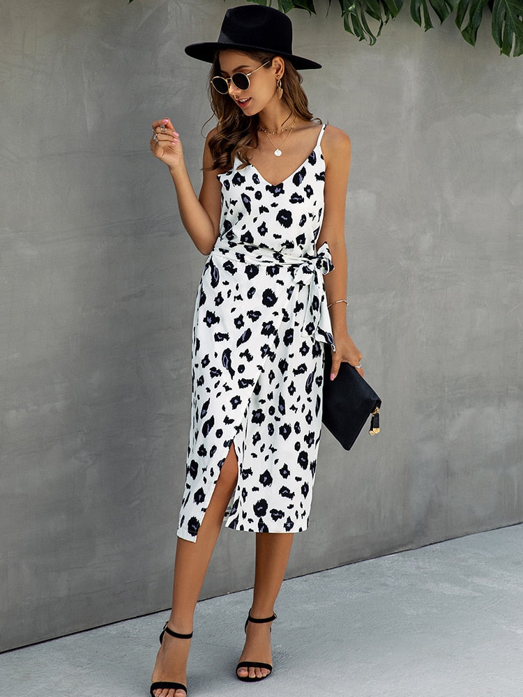 Summer Vintage Print Sexy Backless Strap Dress Woman Long Casual Sundress White Dresses 2022 Fashion Summer Clothes For Women
