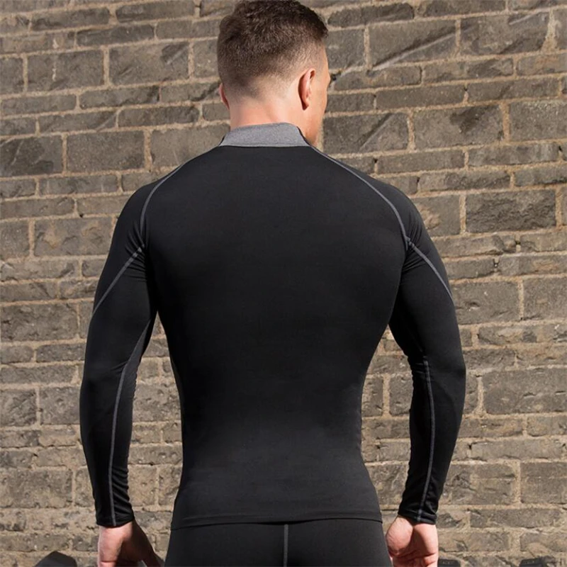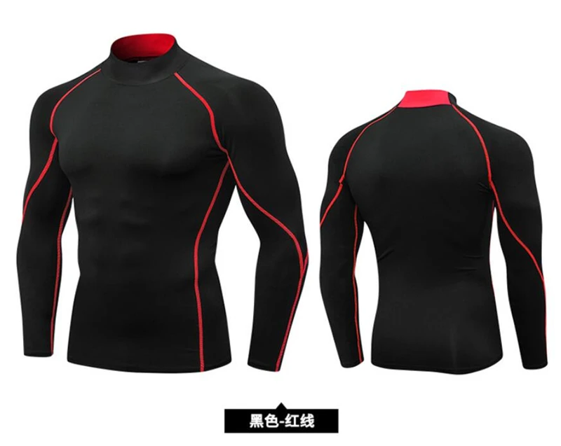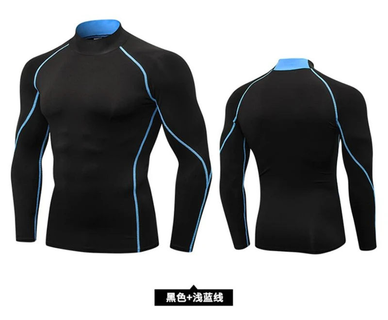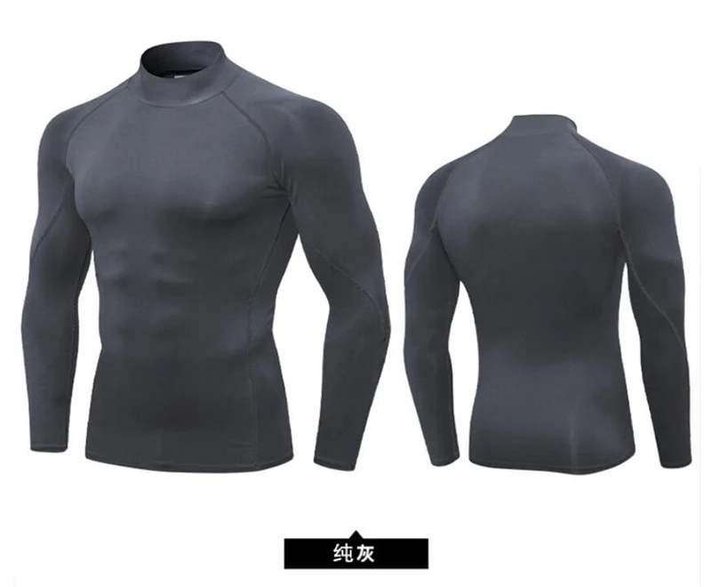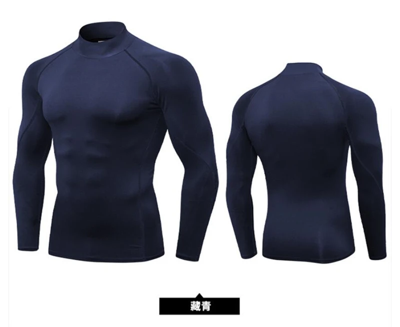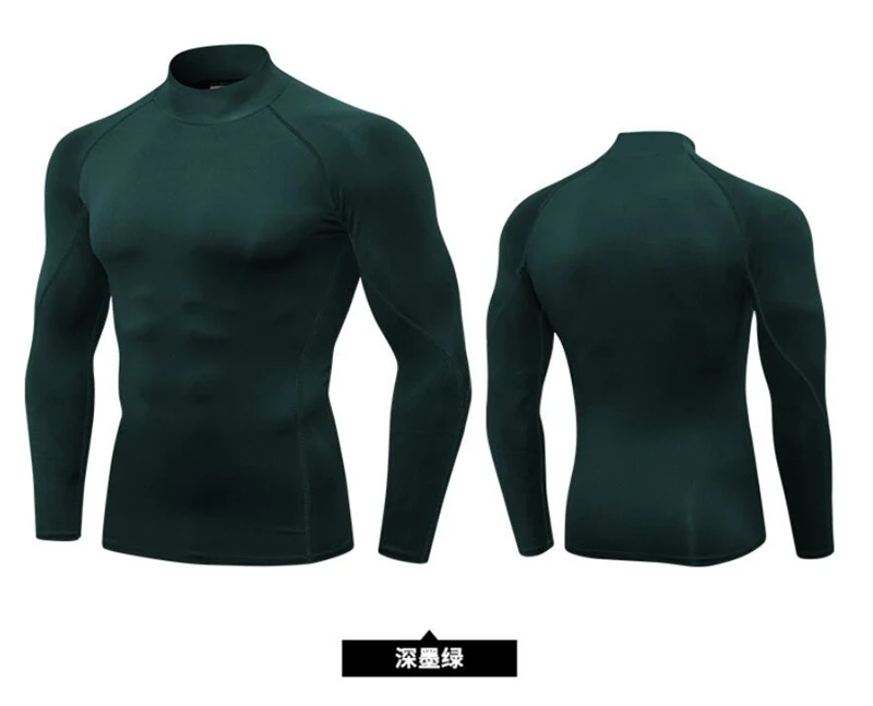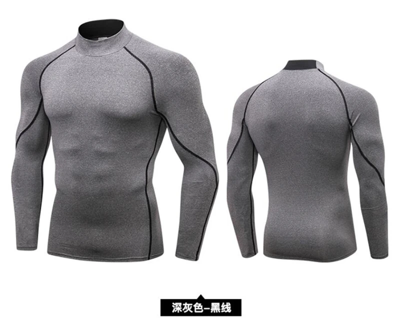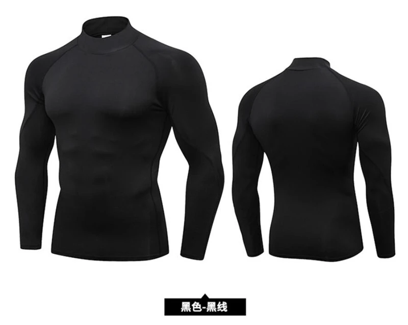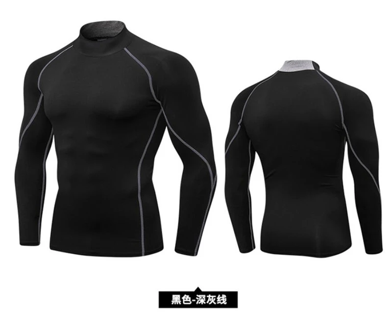 Turtleneck Compression Shirt Men Spring Autumn Running T Shirt Bodybuilding Long Sleeve Sportswear Fitness Tight Gym Clothing