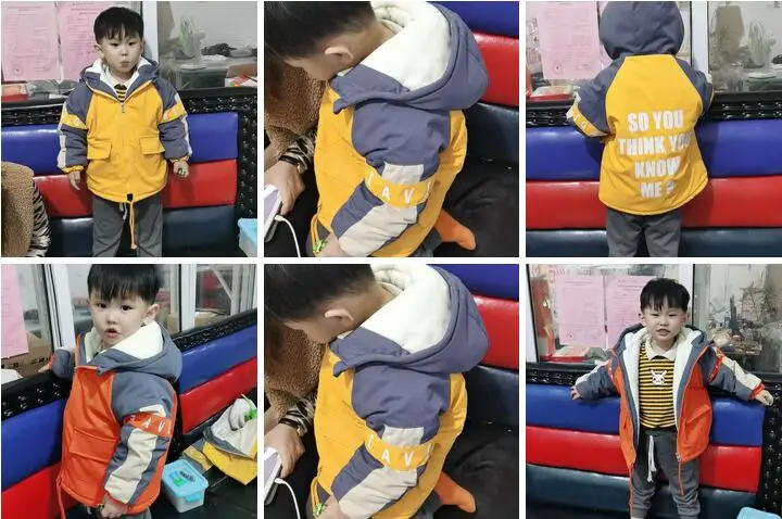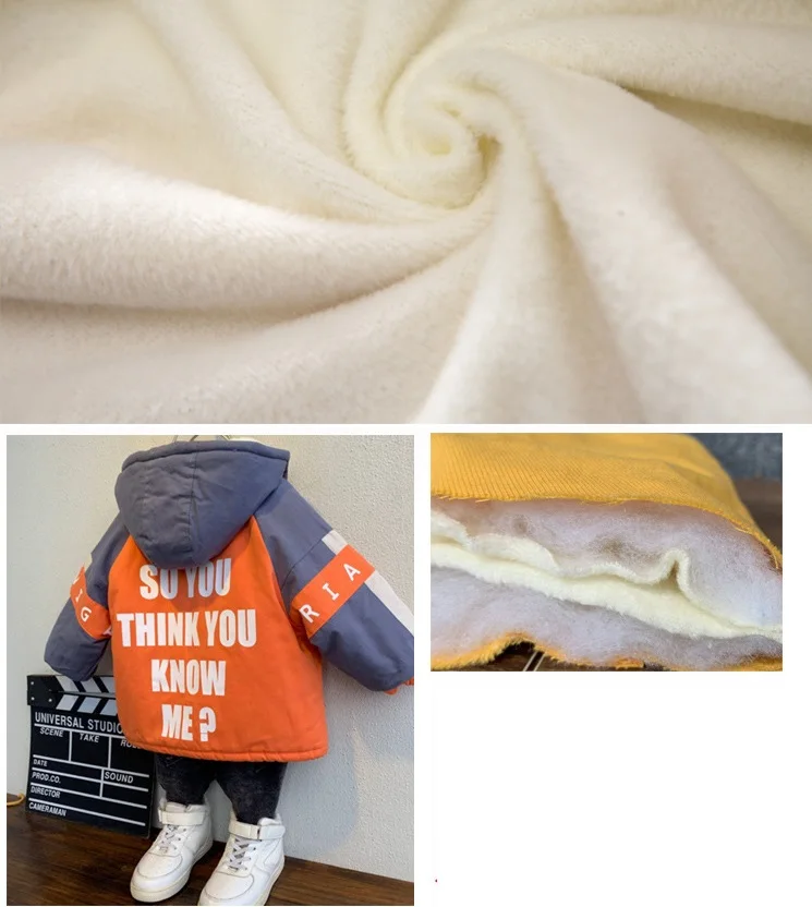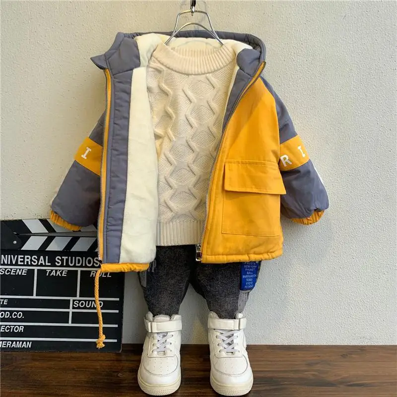 2-9years boys winter thicken hooded jacket for children outwear baby boy cotton-padded plus velvet print jacket for boys clothes