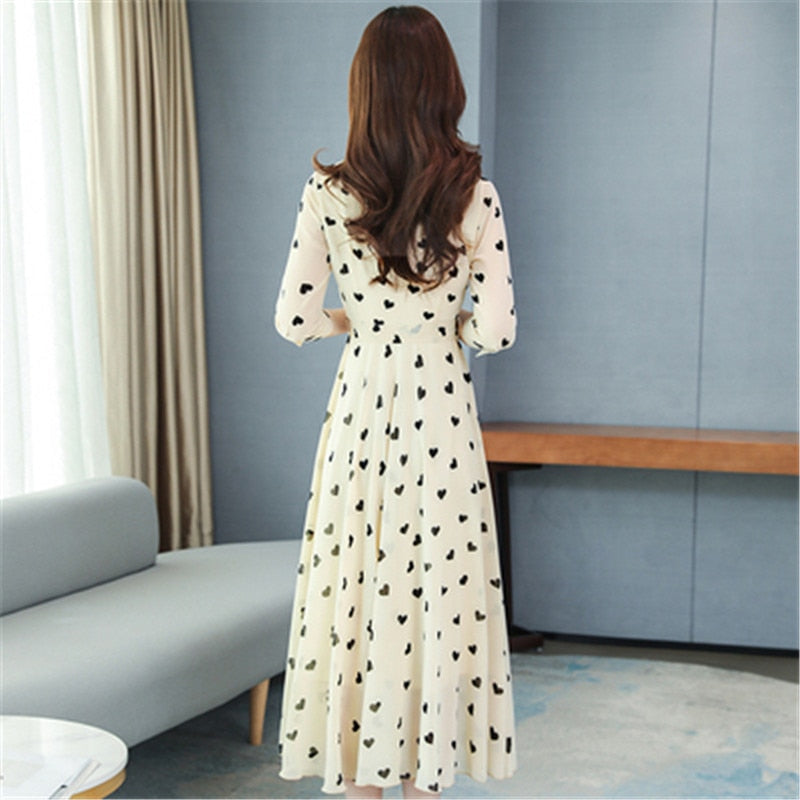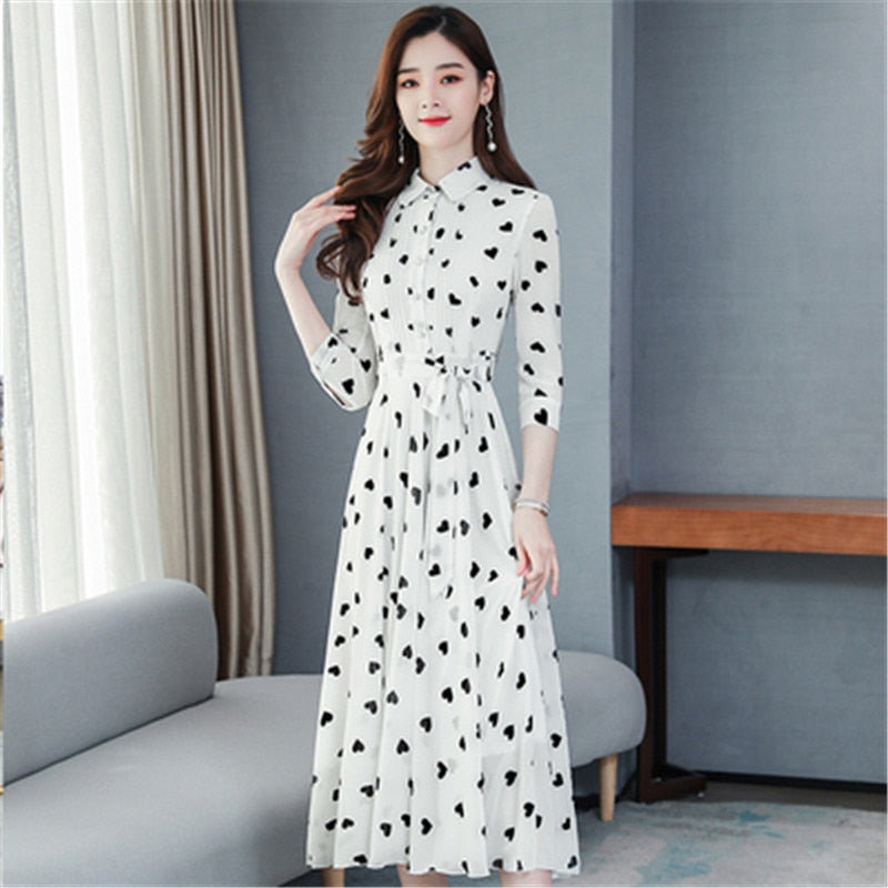 2020 Korean summer new stand-up collar seven-point sleeves temperament chiffon floral big swing dress women