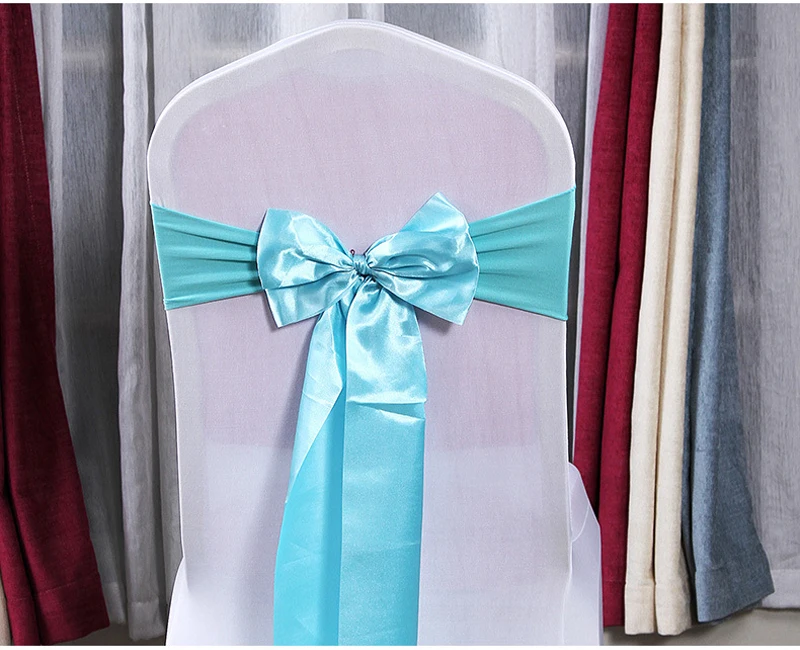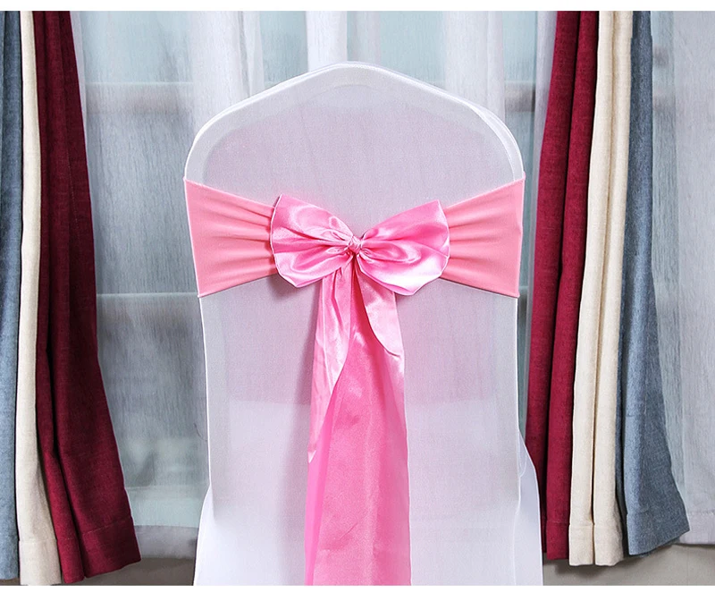 25pcs Satin Spandex Chair Cover Band Ribbons Chair Tie Backs for Party Banquet Decor Wedding Decoration Knot Chair Bow Sashes
