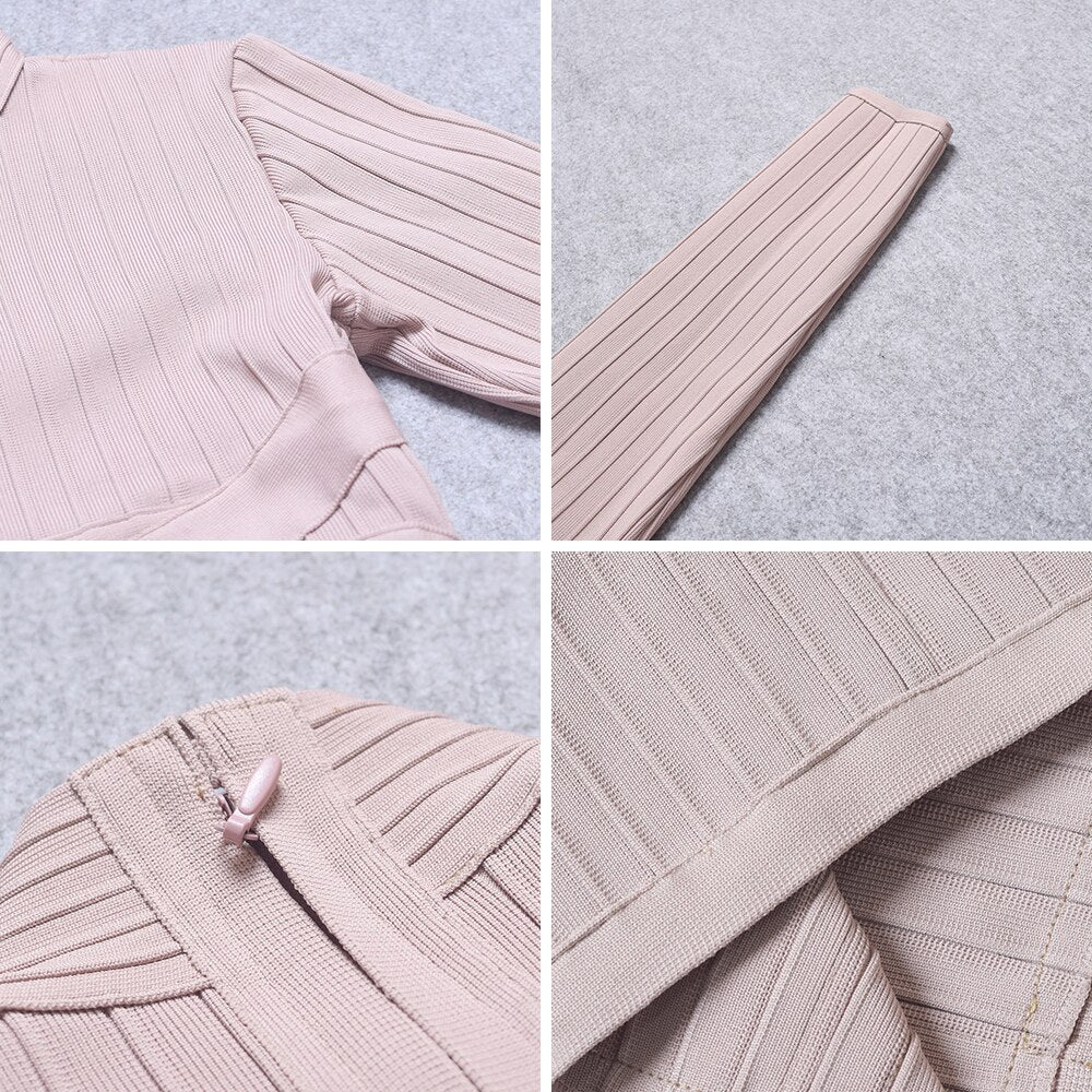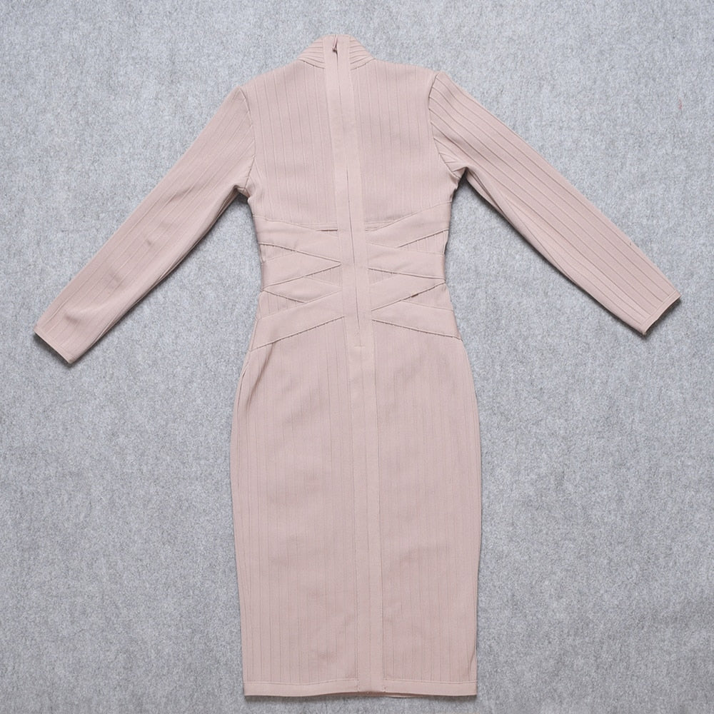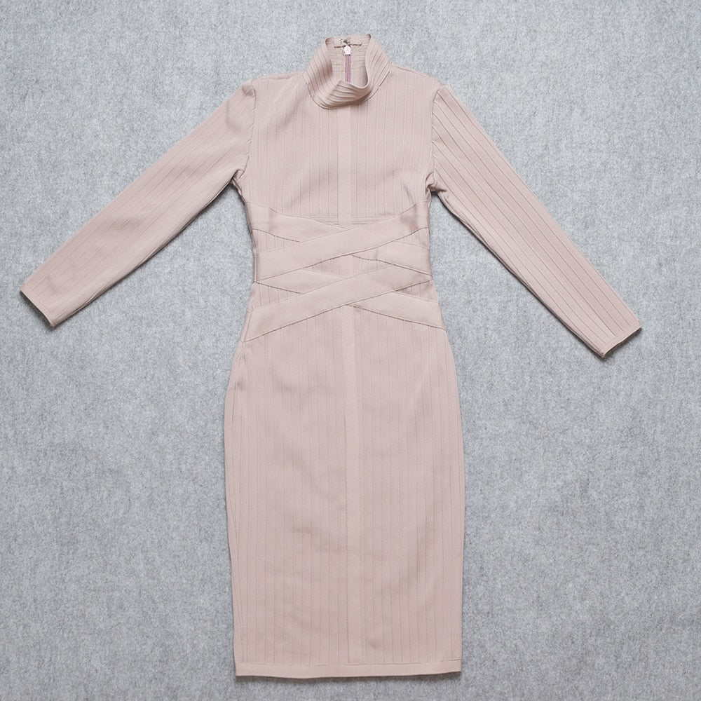 BEAUKEY Red HL Bandage Dress 2020 Nude Turtleneck Long Sleeve Dress High Quality Ribbed Womens Midi Bodycon Dress Sexy Maxi XL