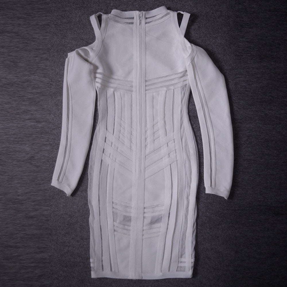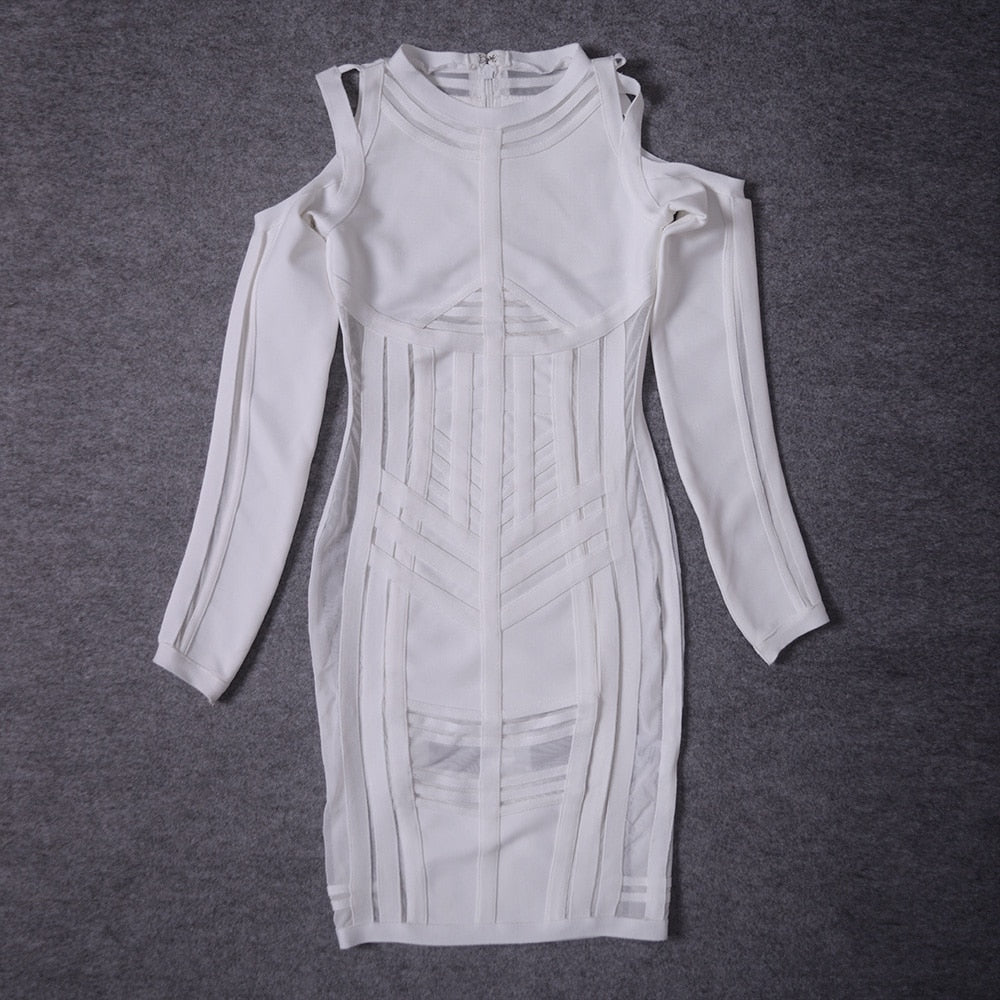 BEAUKEY Sexy Women Long Sleeve HL Bandage Dress Bodycon Hollow Out Mesh Runway Dress See Through Party Club Vestido Maxi XL