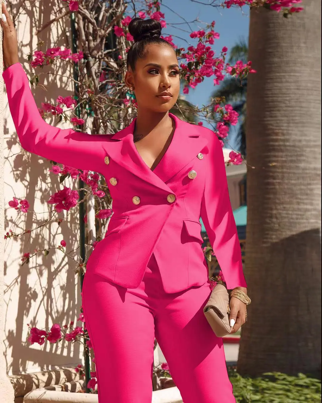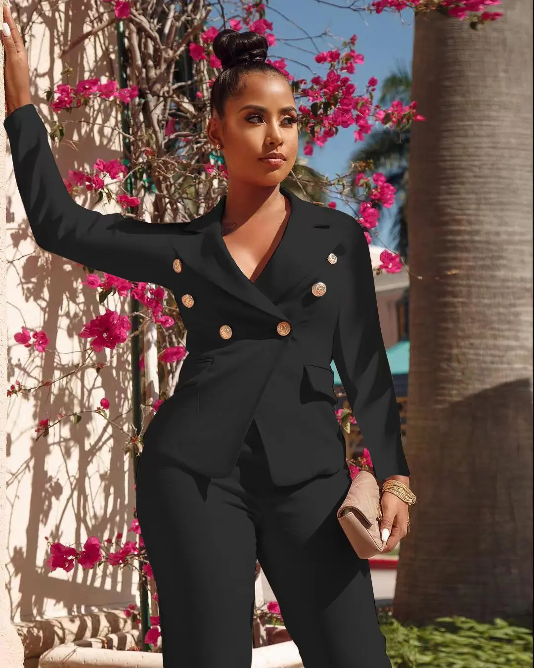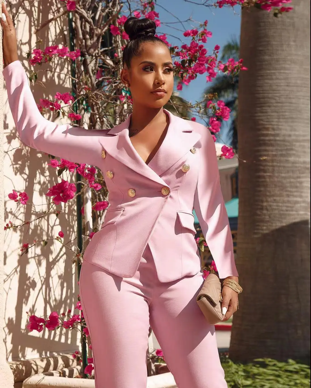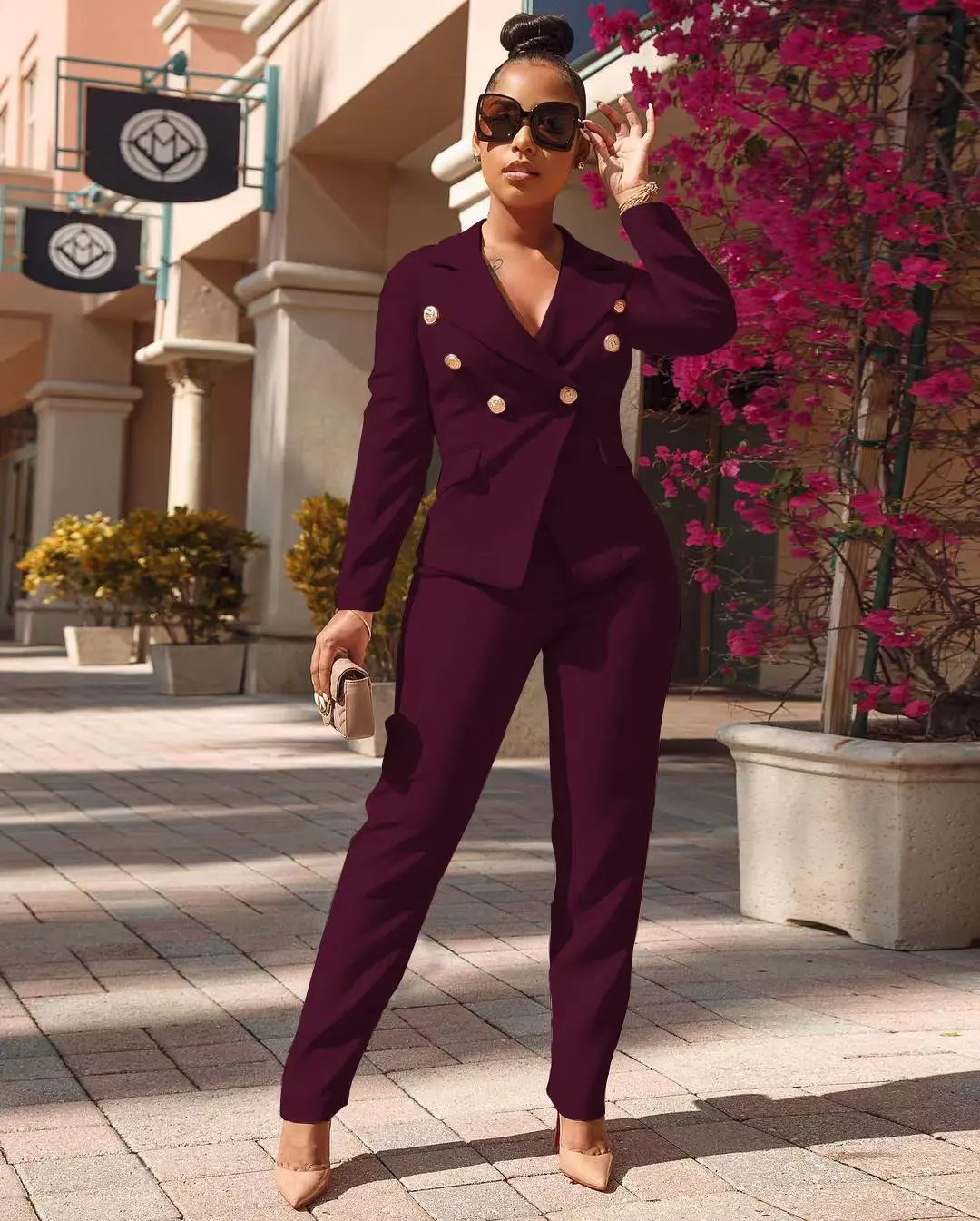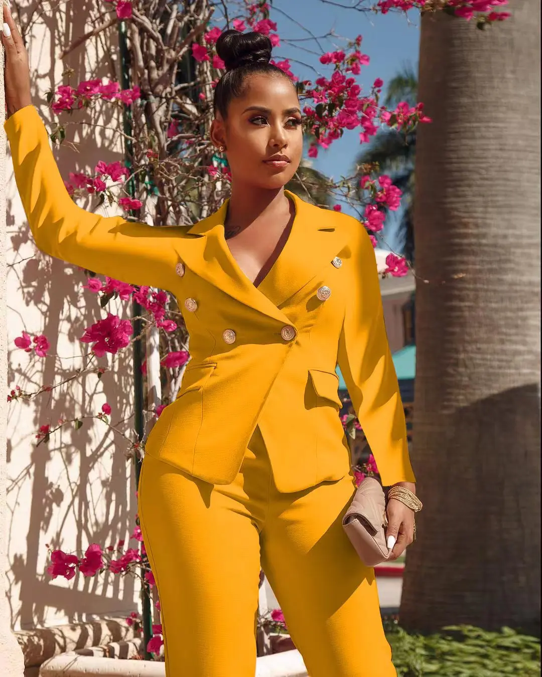 CM.YAYA Autumn Winter Women's Set Long Sleeve Blazer and Pants Suit Office Lady Tracksuit Two 2 Piece Set Elegant INS Outfits