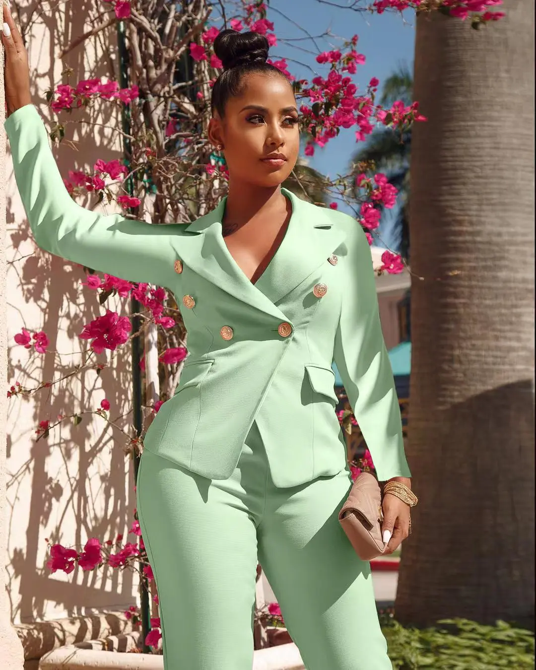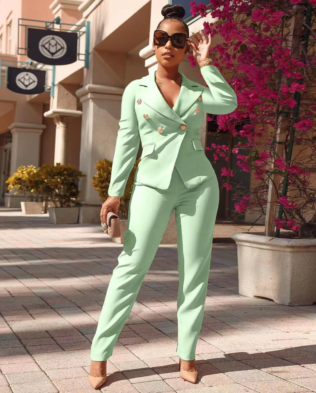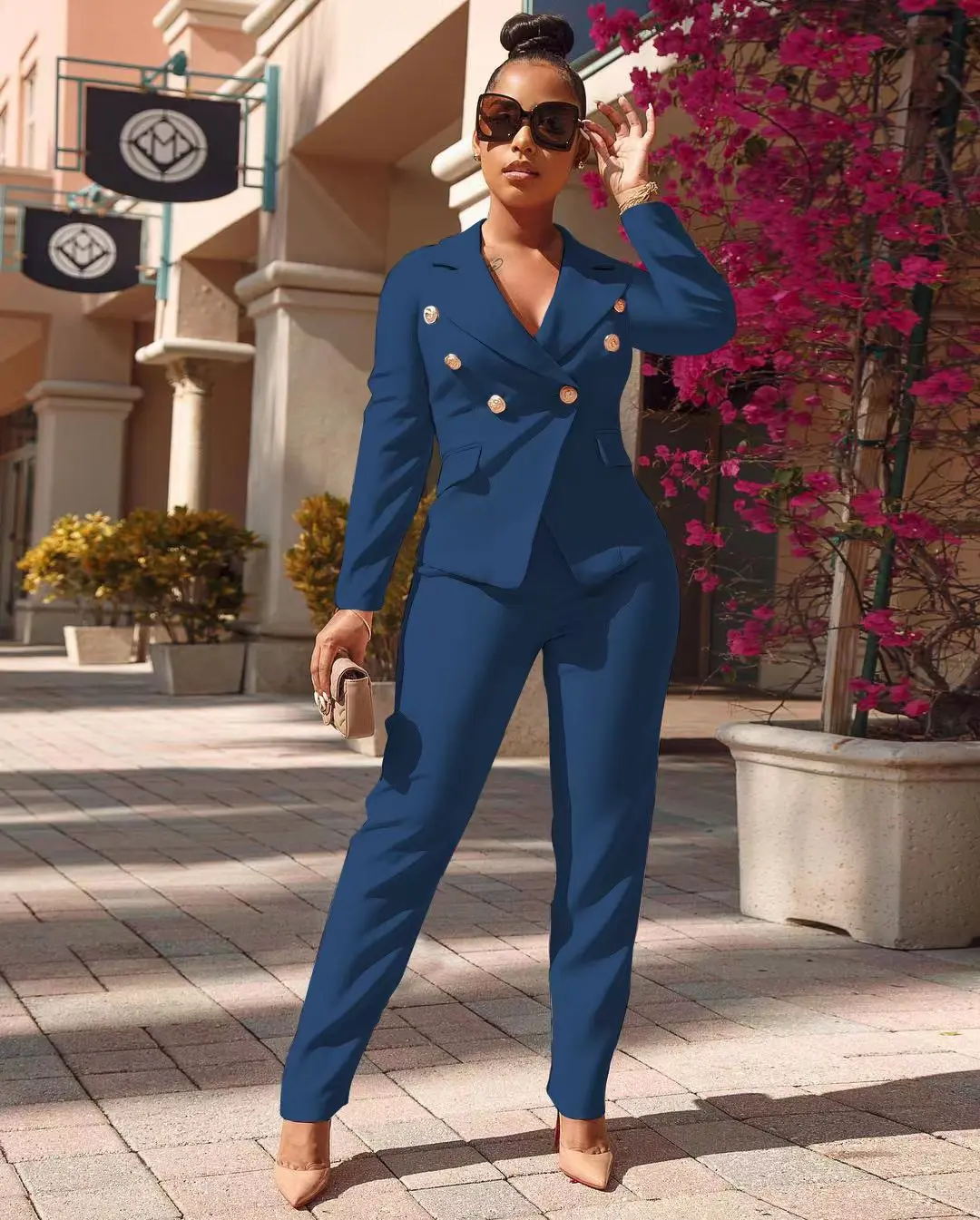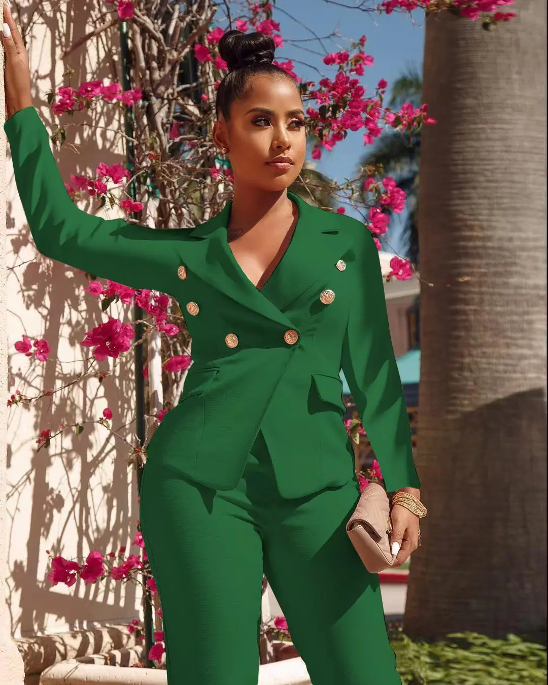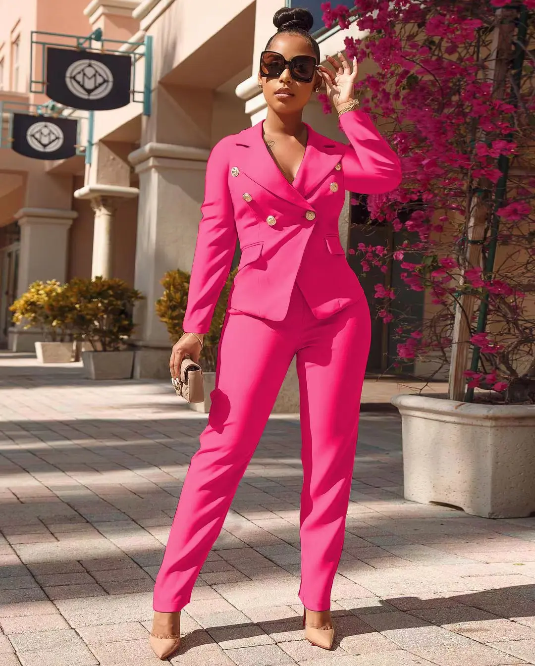 CM.YAYA Autumn Winter Women's Set Long Sleeve Blazer and Pants Suit Office Lady Tracksuit Two 2 Piece Set Elegant INS Outfits