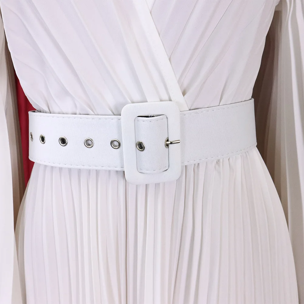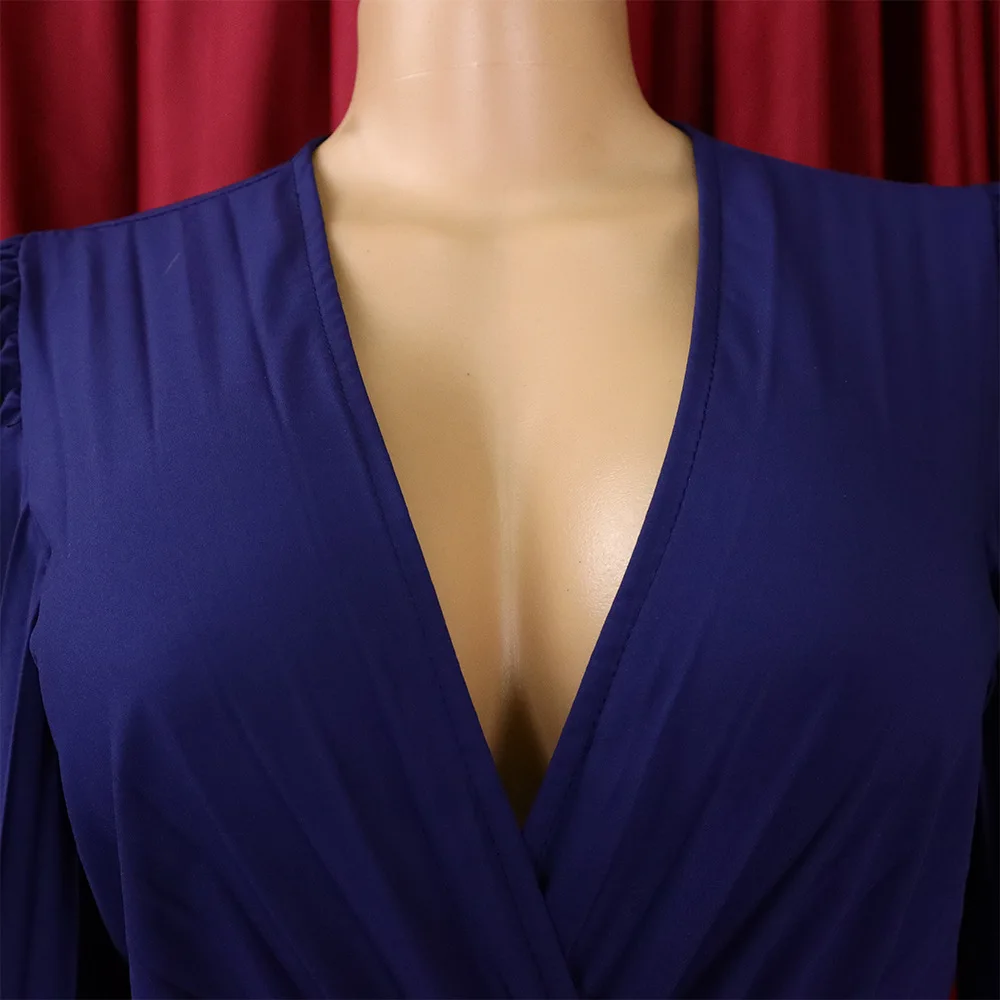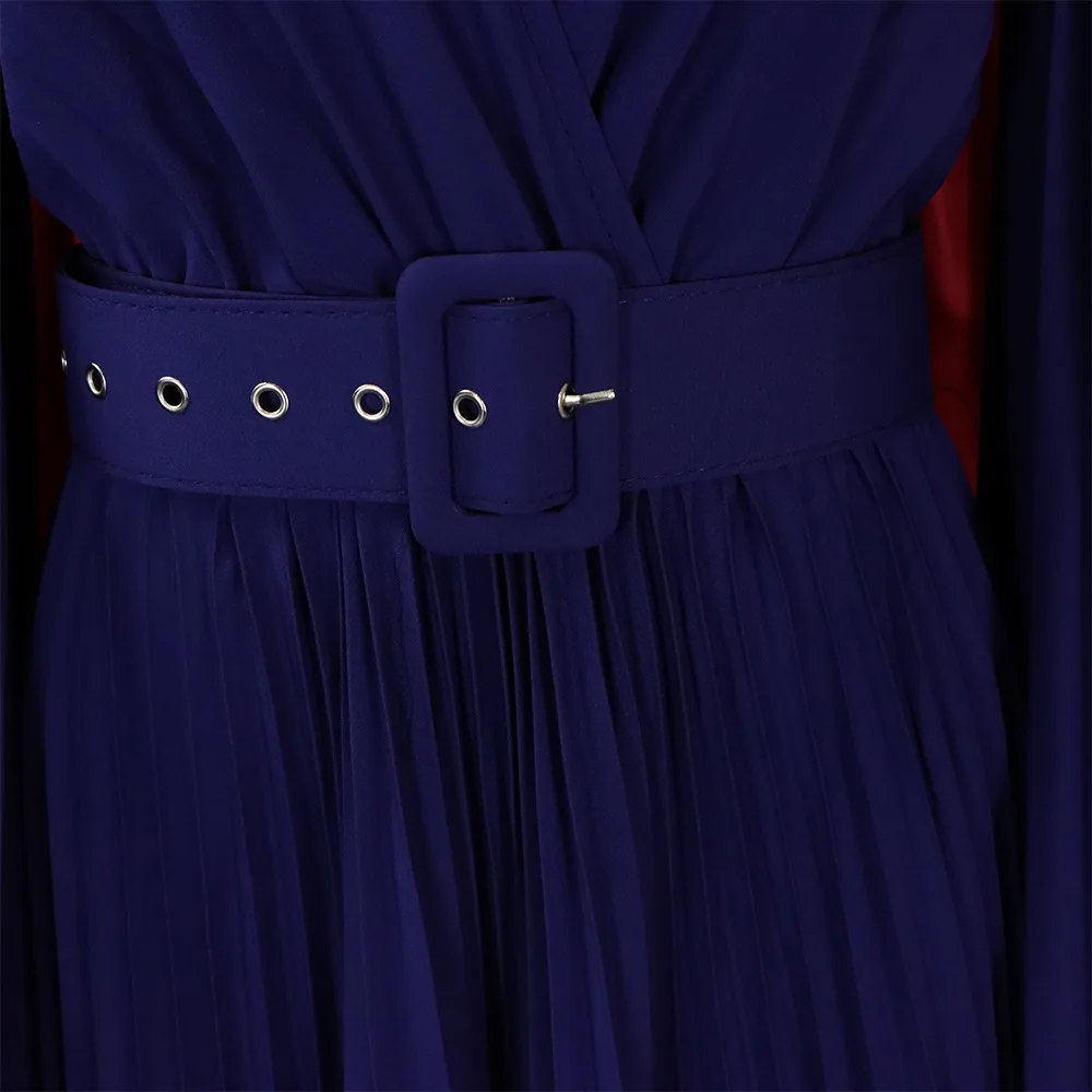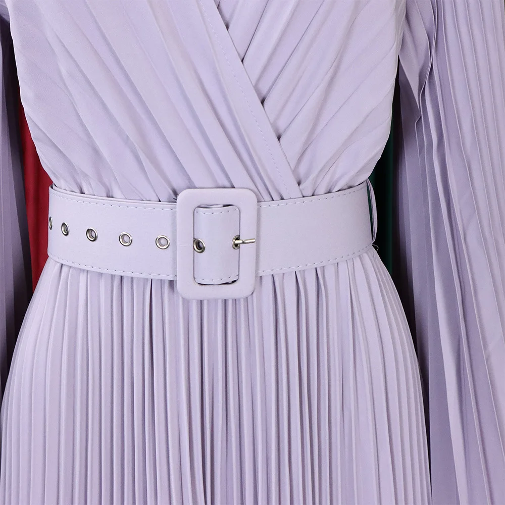 CM.YAYA Pleated Wraped V-neck Flare Sleeve Big Swing Floor Length Maxi Long Dresses for Women Autumn Winter Party Prom Dress