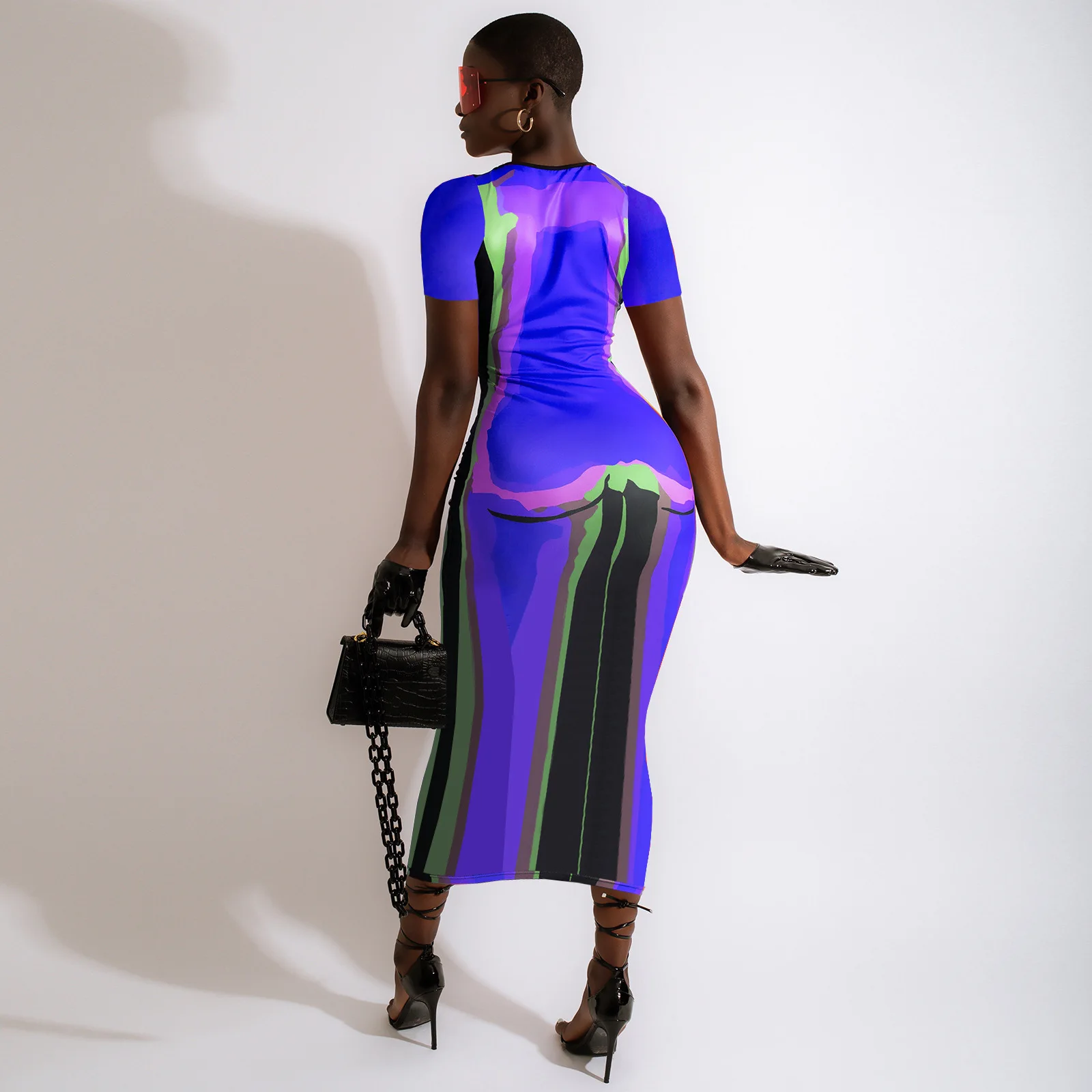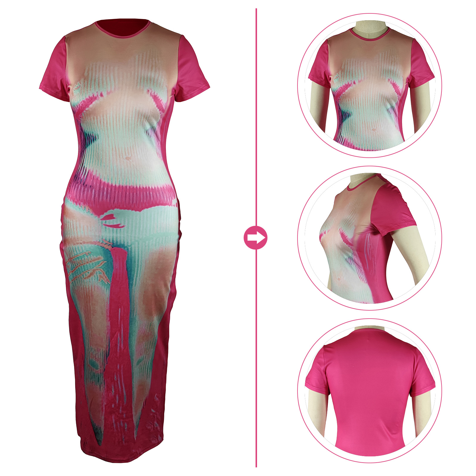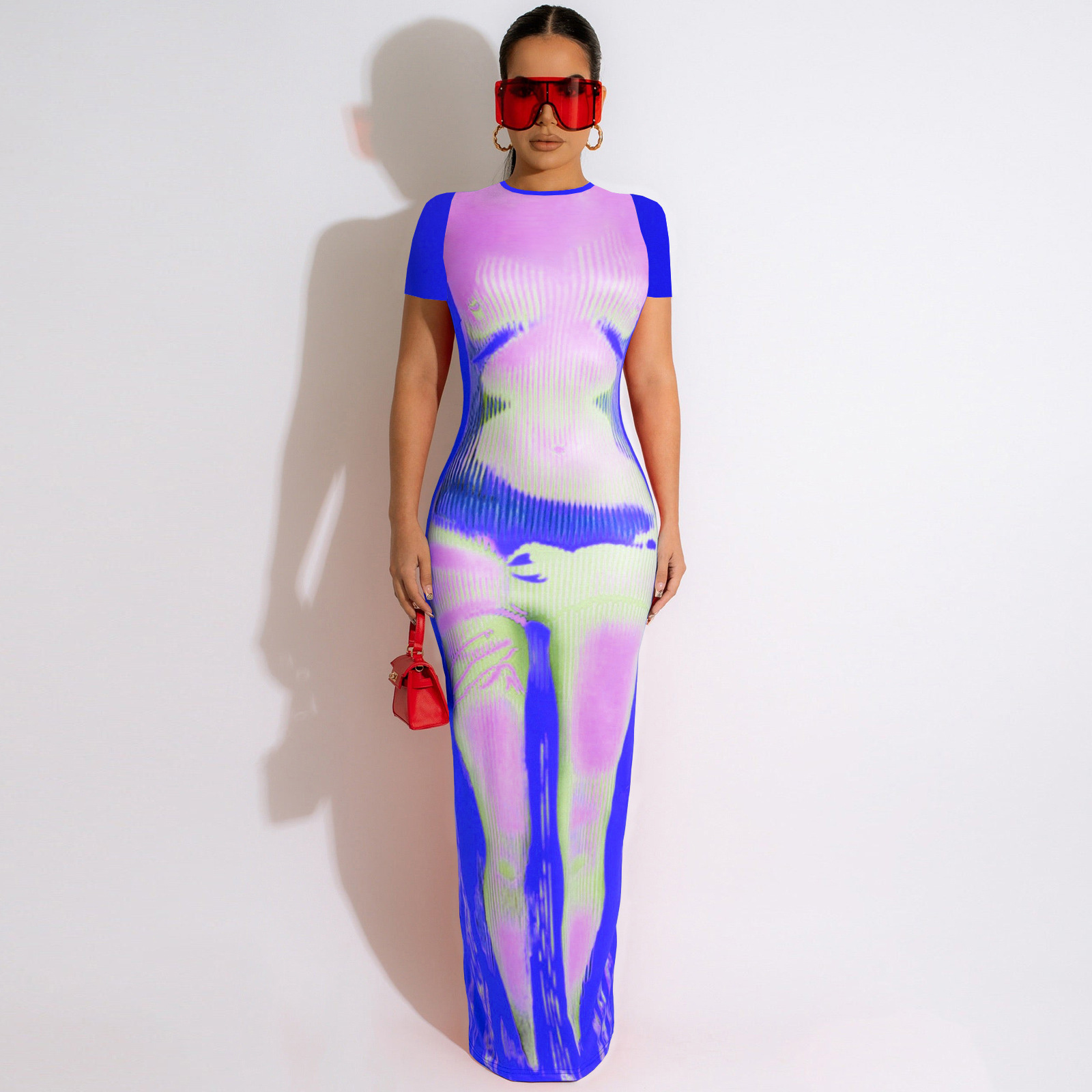 CM.YAYA Women 3D Printed Short Sleeve O-neck Bodycon Midi Maxi Dress for 2022 Summer Sexy Night Party Clubwear Long Dresses