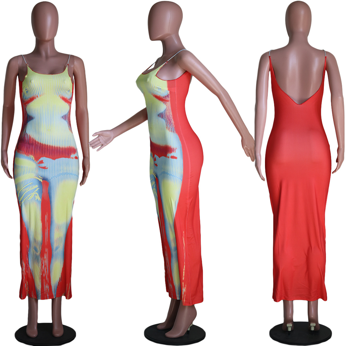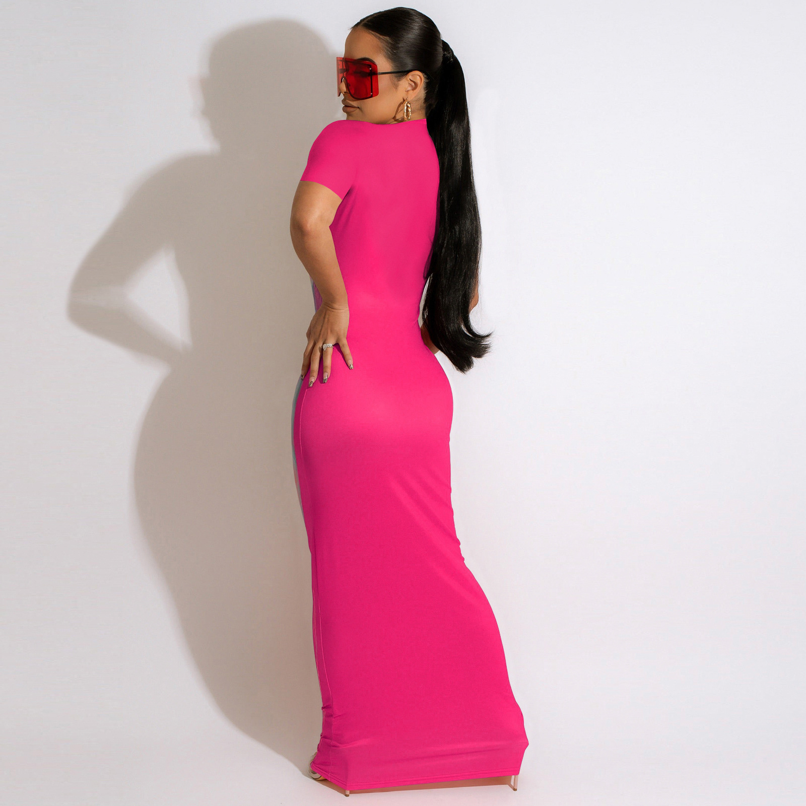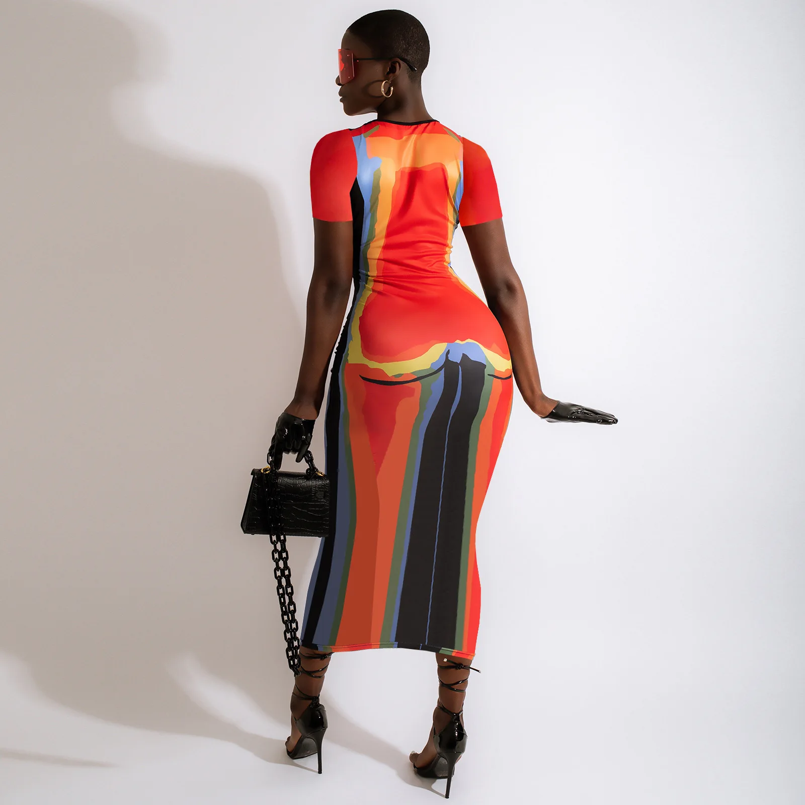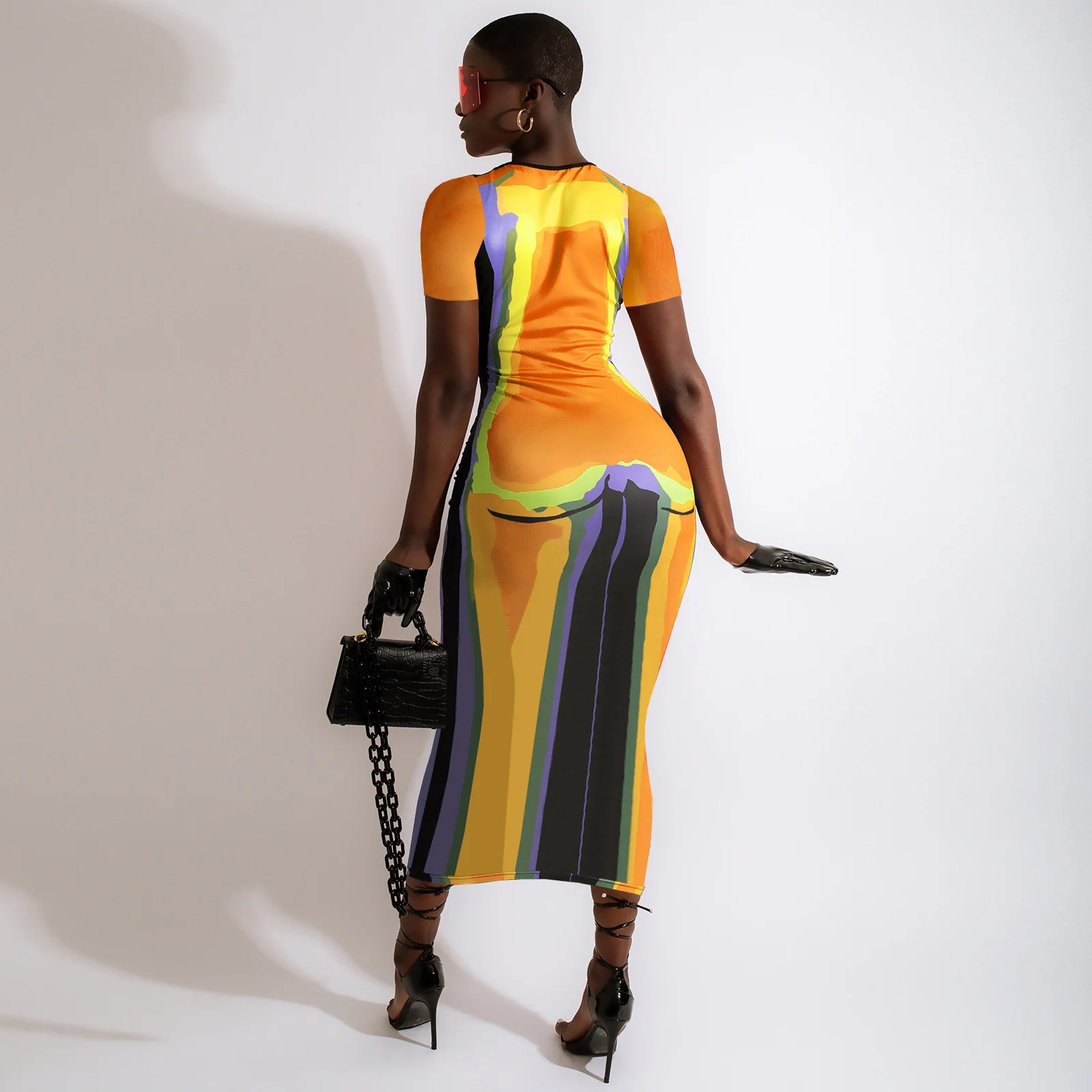 CM.YAYA Women 3D Printed Short Sleeve O-neck Bodycon Midi Maxi Dress for 2022 Summer Sexy Night Party Clubwear Long Dresses