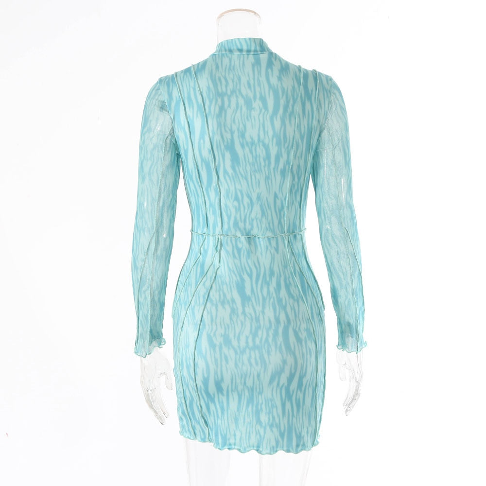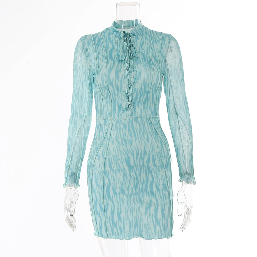 Cut Out Sexy Print Mesh Women's Mini Dress Club Hollow Out Lace Up Slim Club Party Prom Night Bodycon Pencil Women Short Dresses