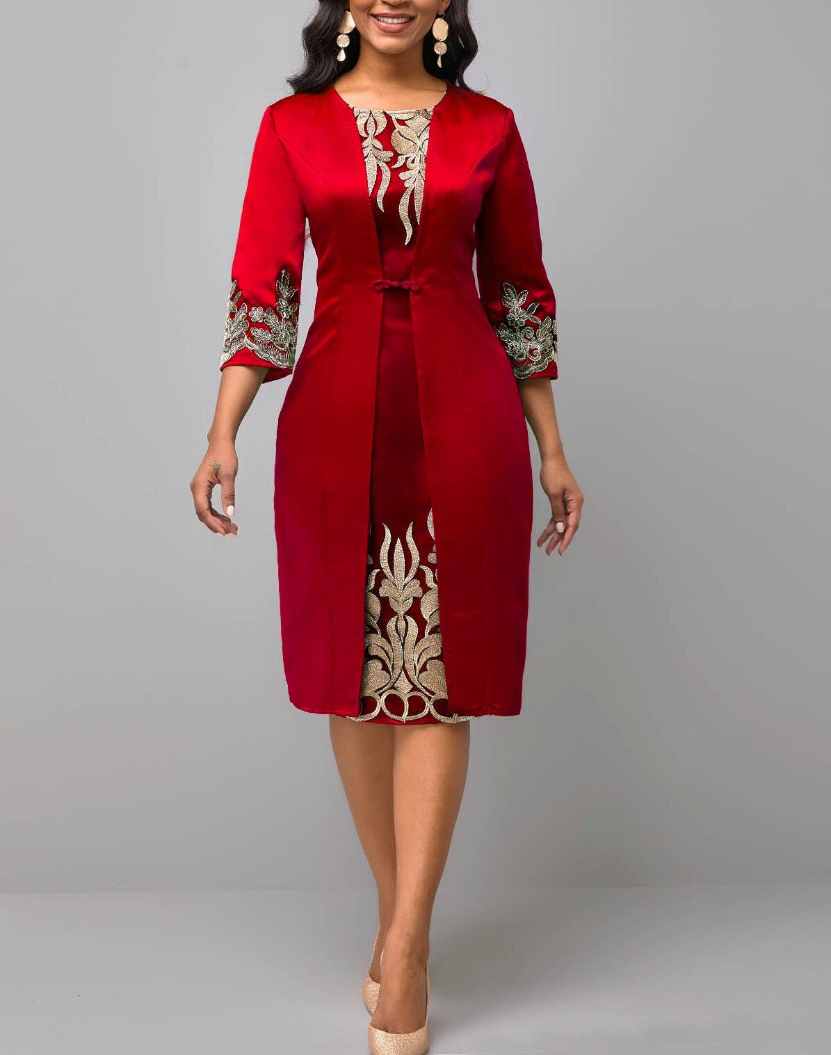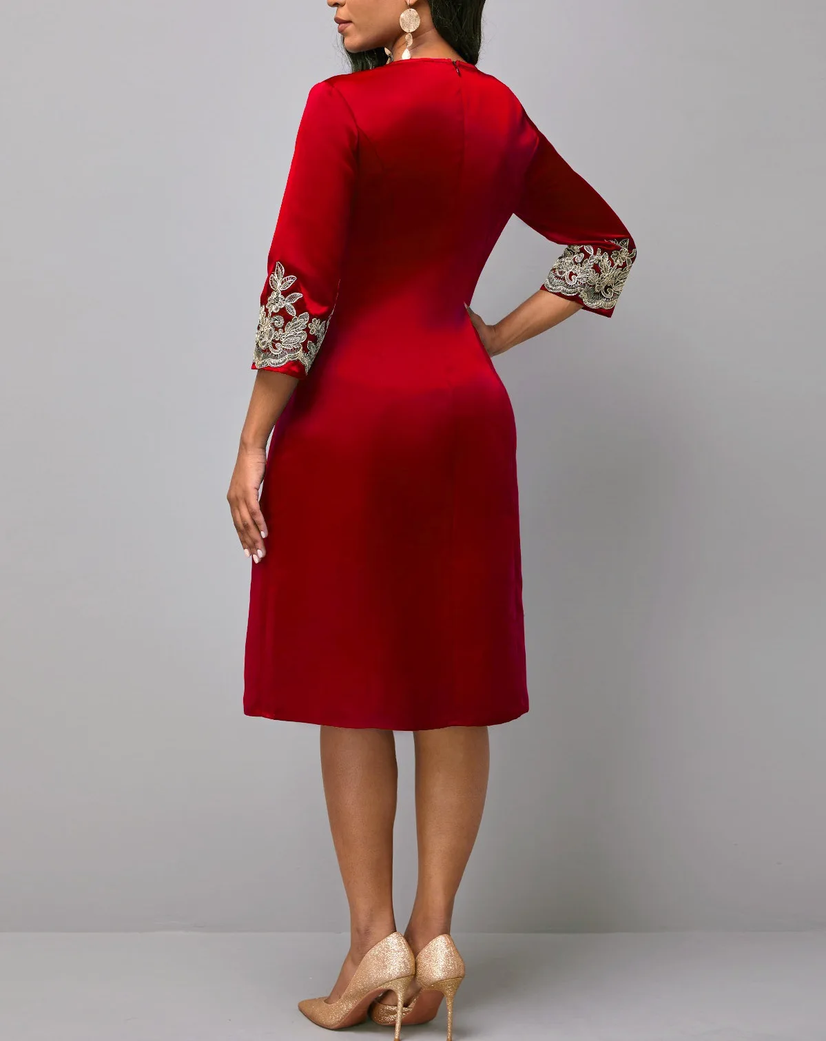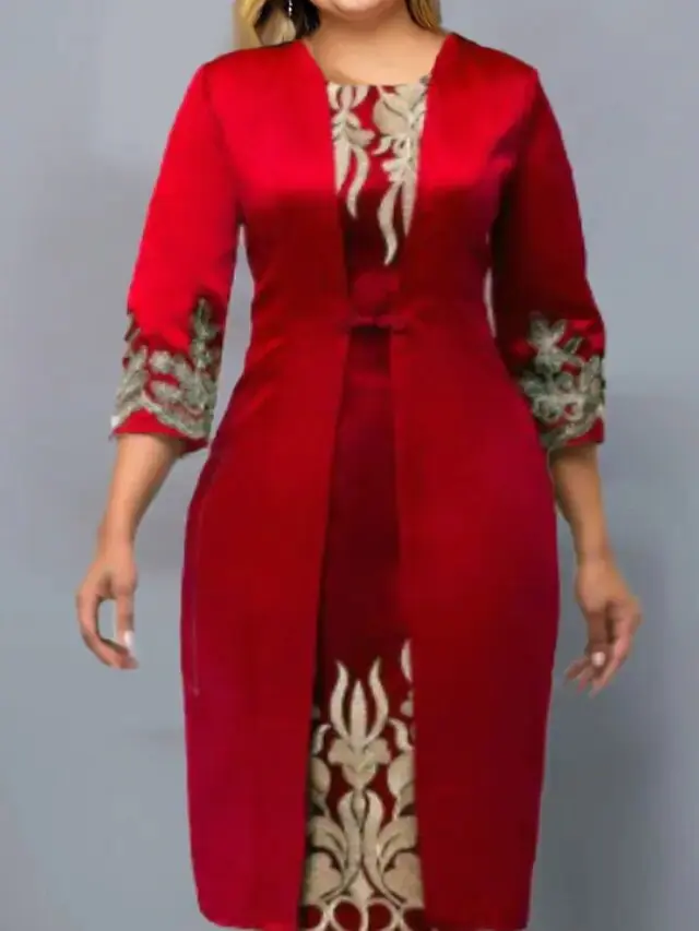 Dresses for Women 2023 Summer Spring Women 3/4 Sleeve Round Neck Red Purple Blue Polyester Bodycon Dress Red Dress S-5XL