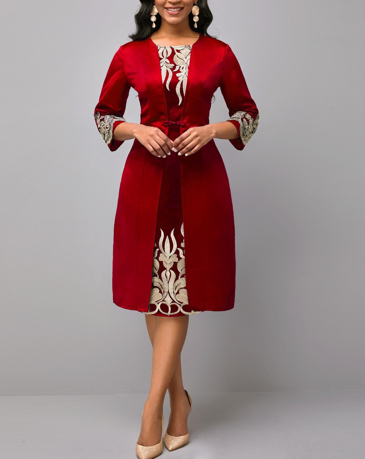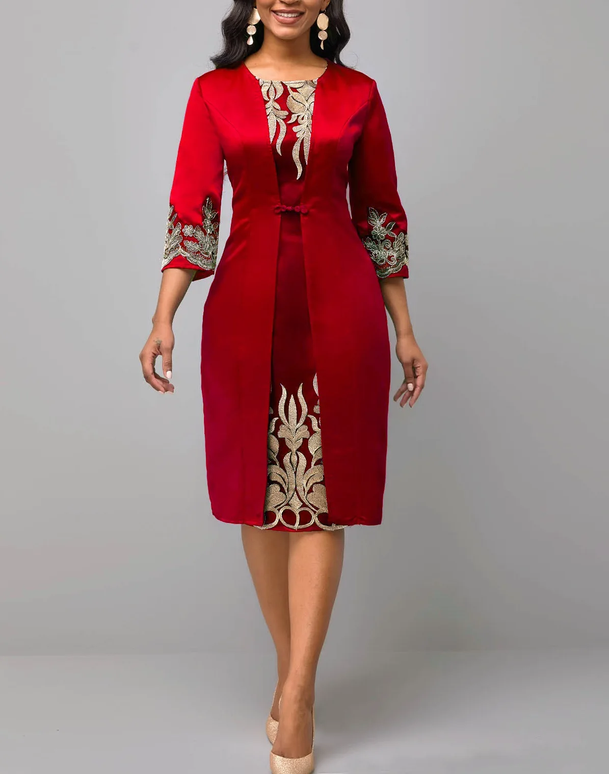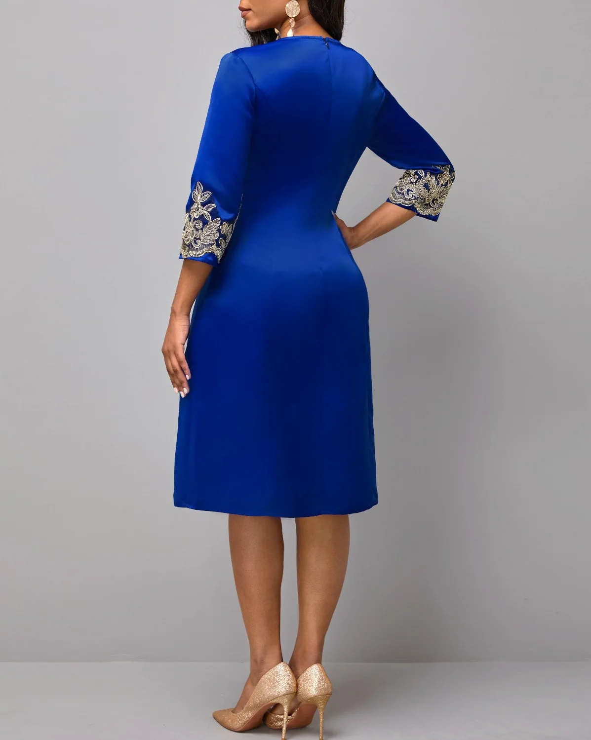 Dresses for Women 2023 Summer Spring Women 3/4 Sleeve Round Neck Red Purple Blue Polyester Bodycon Dress Red Dress S-5XL