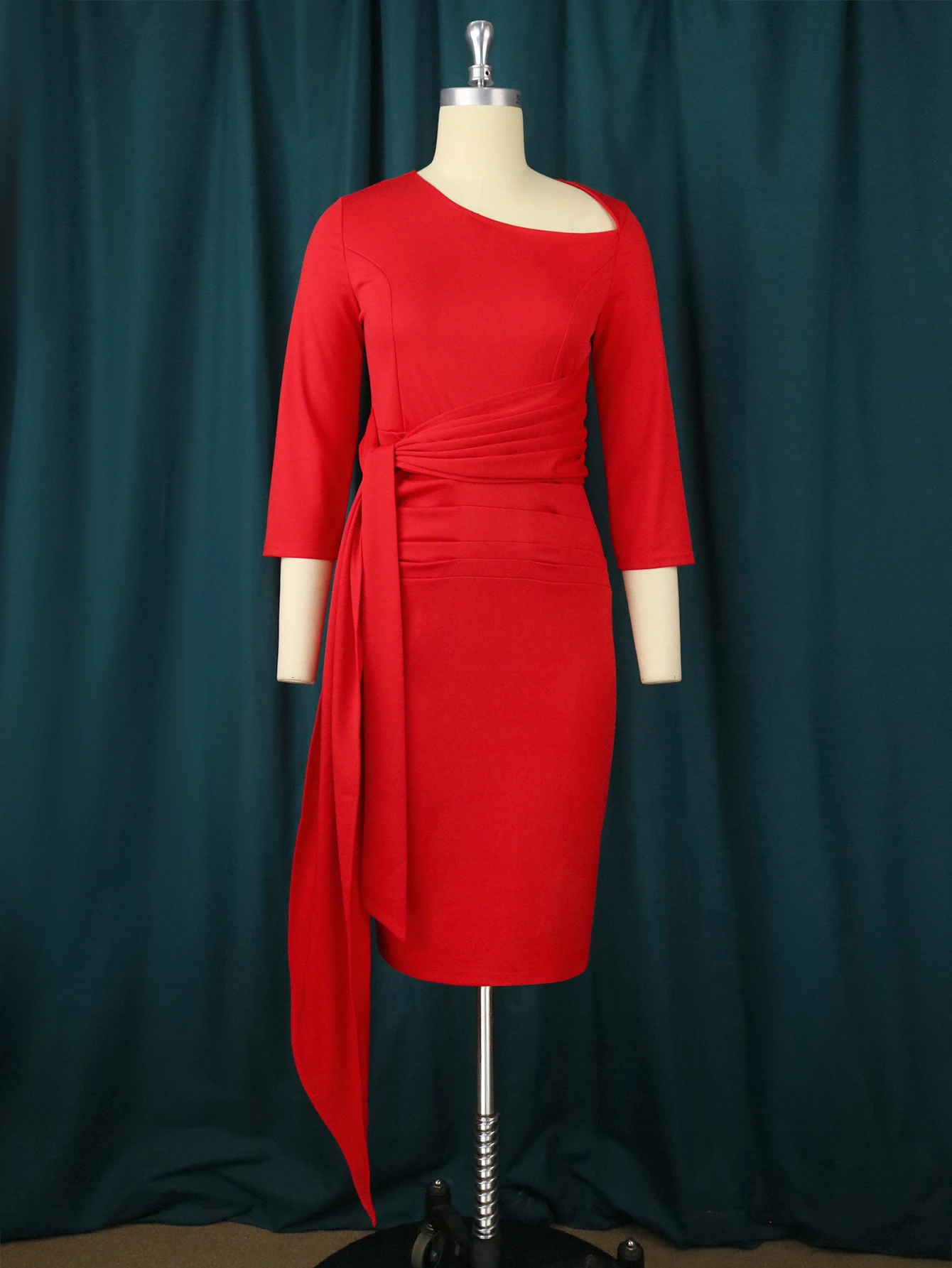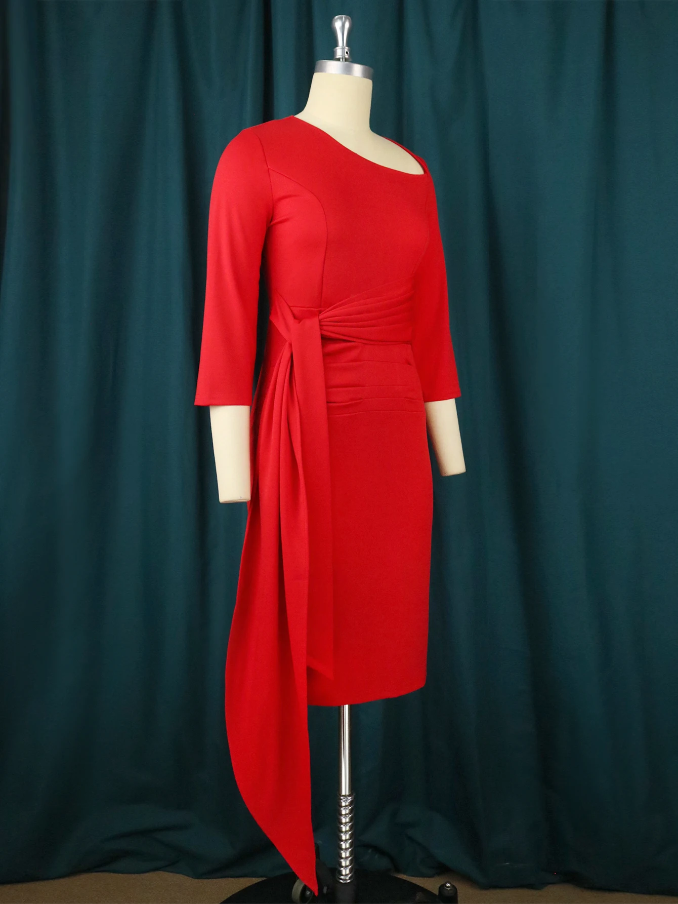 Fall Women Bodycon Dress Elegant Pleated Package Hip Xshape Midi Robes Three Quater Sleeves Folds African Large Size Party Gowns