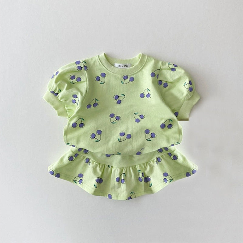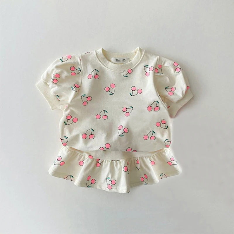 Fashion Girl Clothes Sets Summer Short Sleeve Sweatshirt Tops + Skirt 2Pcs for 1-5Y Kids Girl Clothing Sets Baby Clothes Outfits