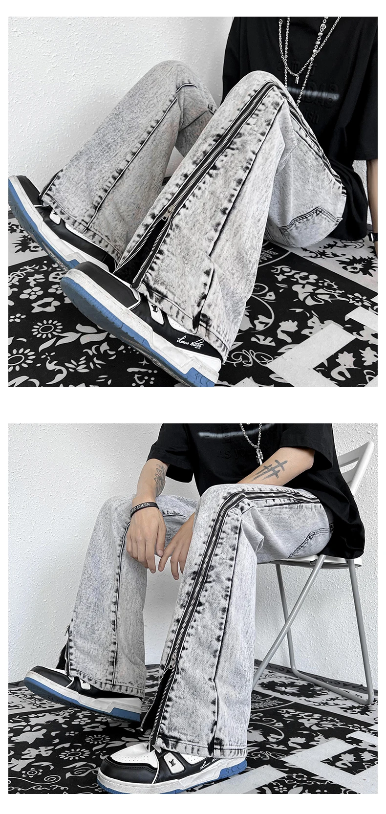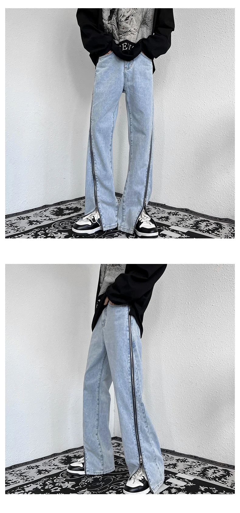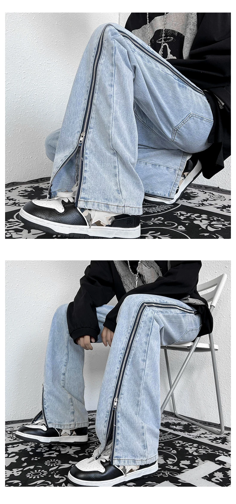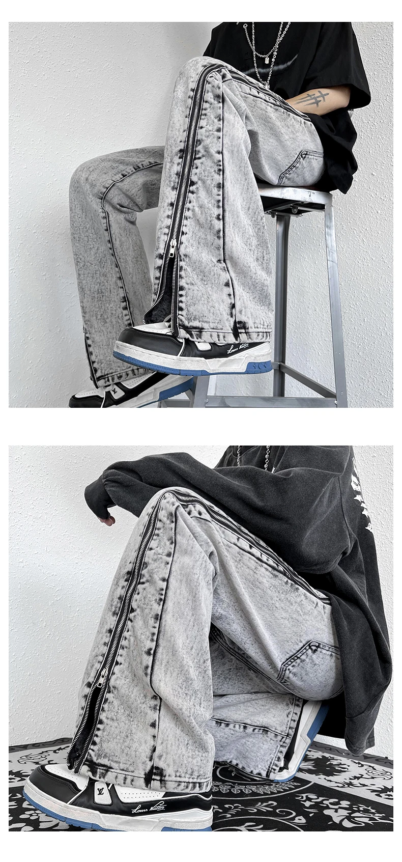 Fashion Zipper Trousers Blue Jeans Men 2022 Autumn New High Street Straight Denim Neutral Casual Jean Pants Male Vintage Gray