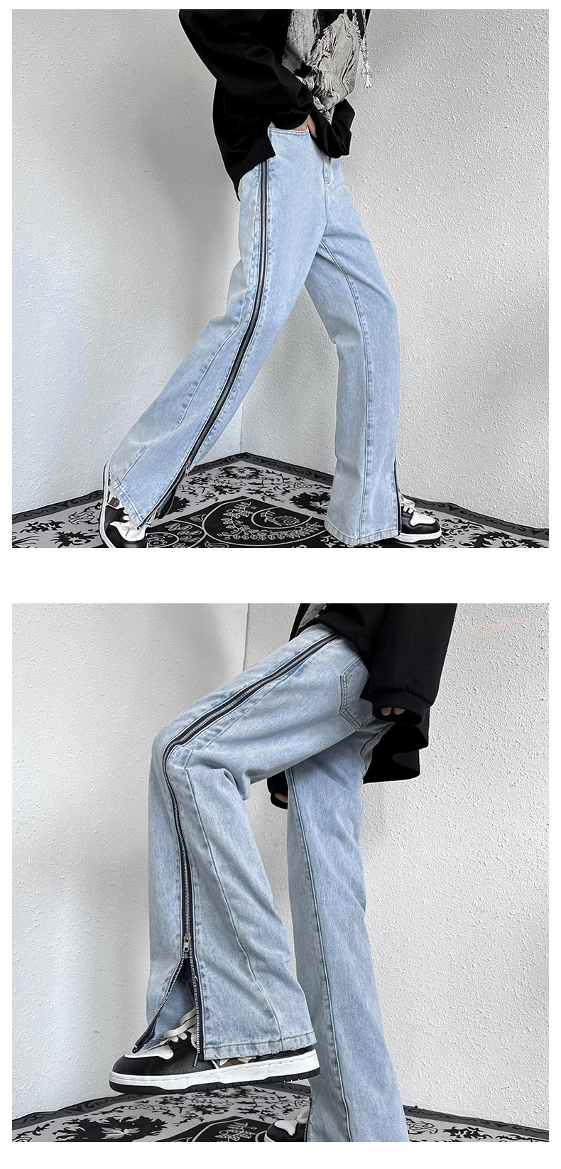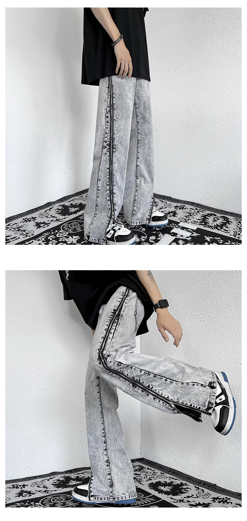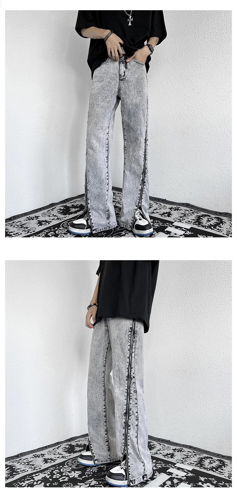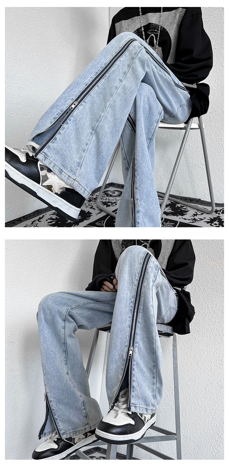 Fashion Zipper Trousers Blue Jeans Men 2022 Autumn New High Street Straight Denim Neutral Casual Jean Pants Male Vintage Gray