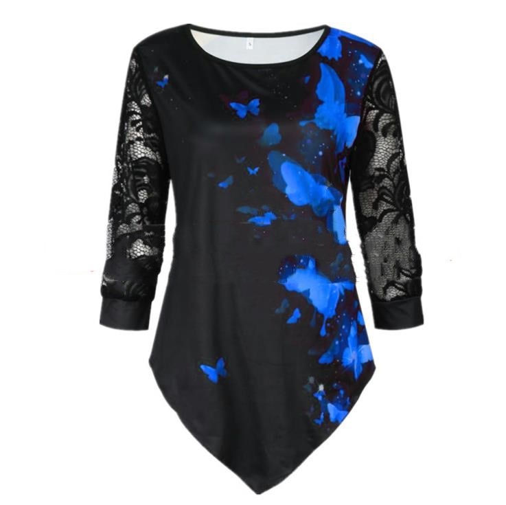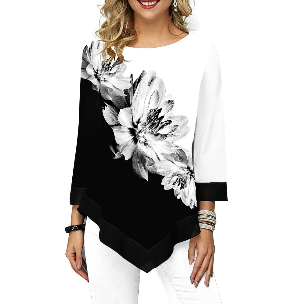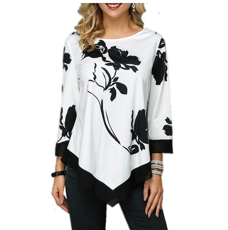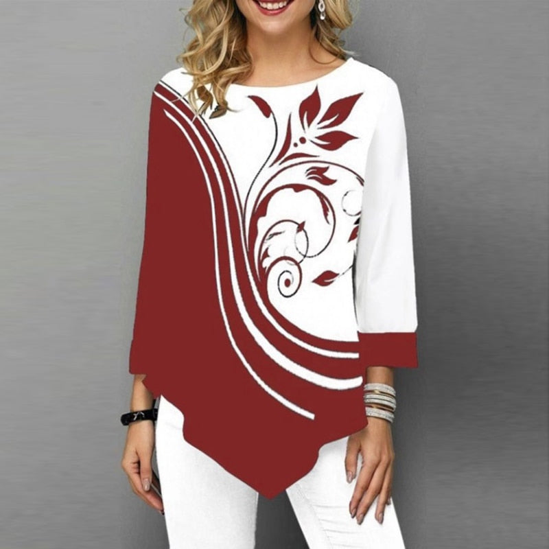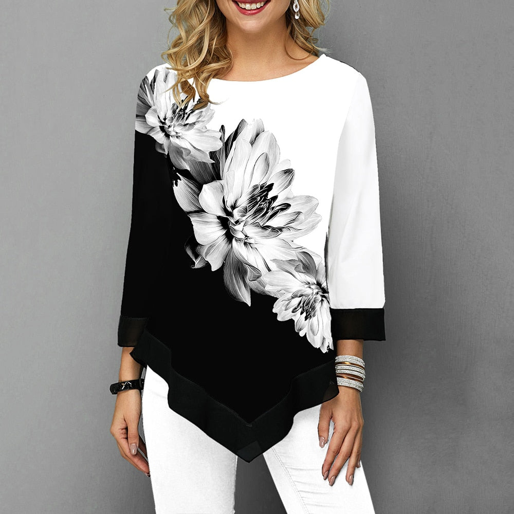 Floral Printed Women Blouse Asymmetric Hem O Neck Long Sleeve Shirts Summer Female Pullover Tops Blusas Fashion Lady Camisa