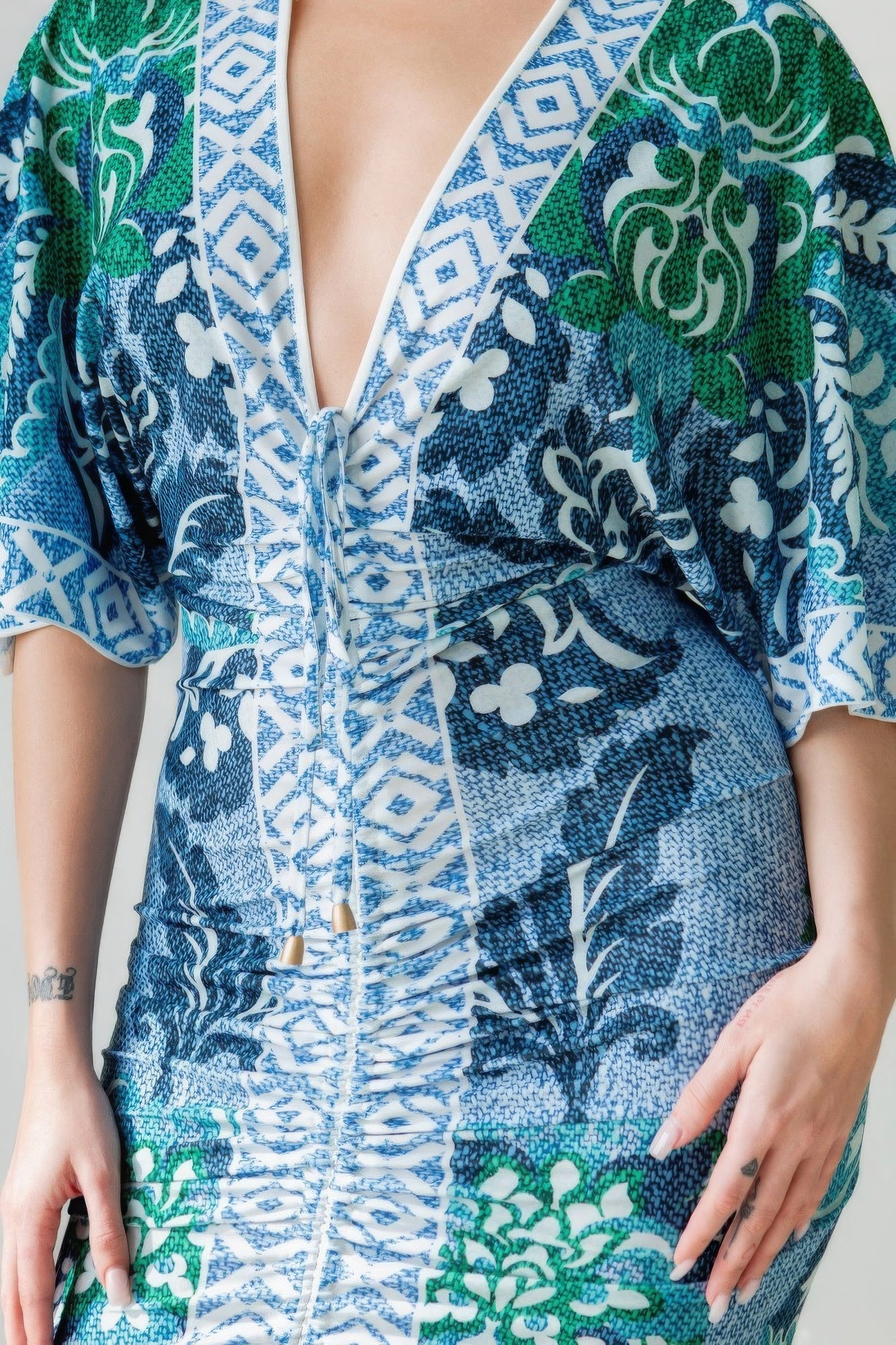 2. Front Ruched Detail: The intricately designed front ruched detailing not only adds visual interest but also enhances your silhouette with a flattering effect.