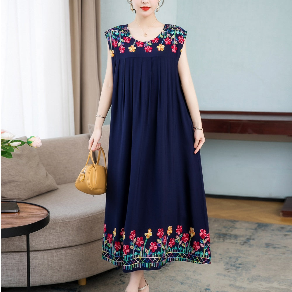 New Casual Summer Dress For Woman Dresses Women Floral Sunflower Dress Embroidery Ladies Party Dress Female vestidos