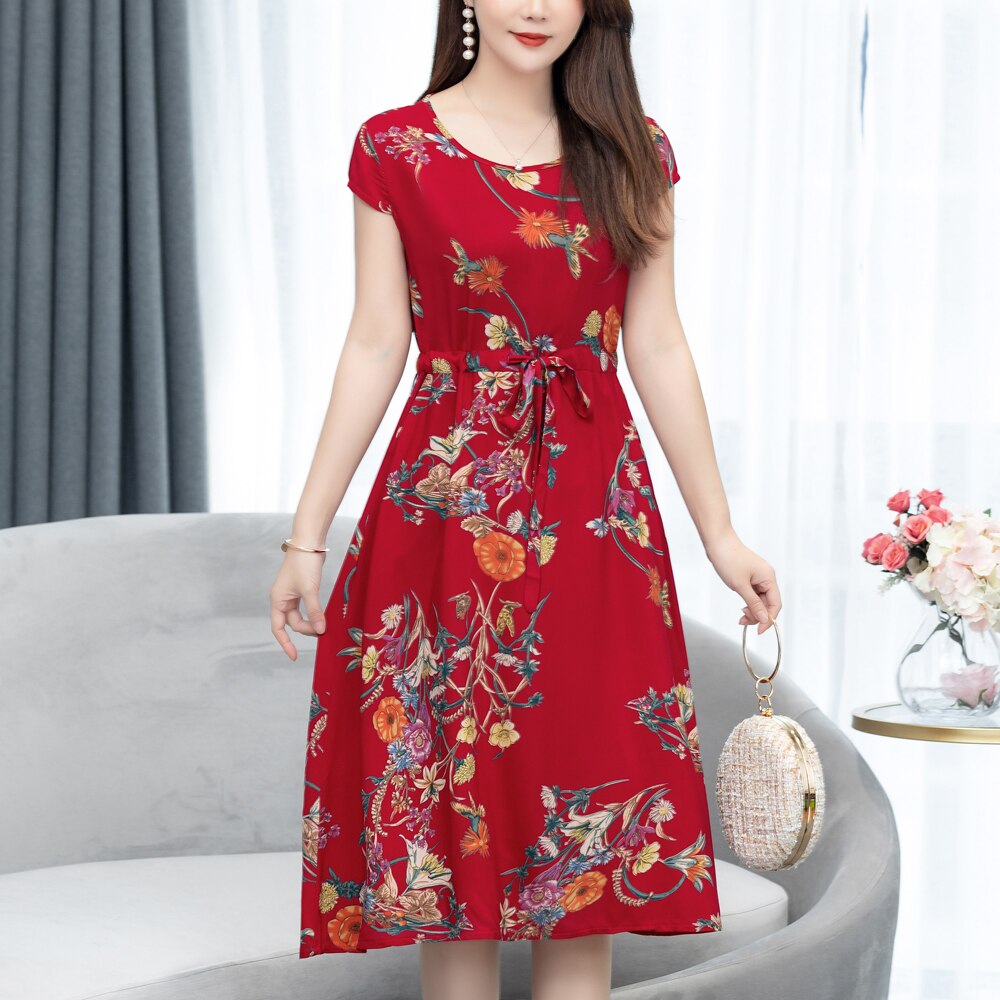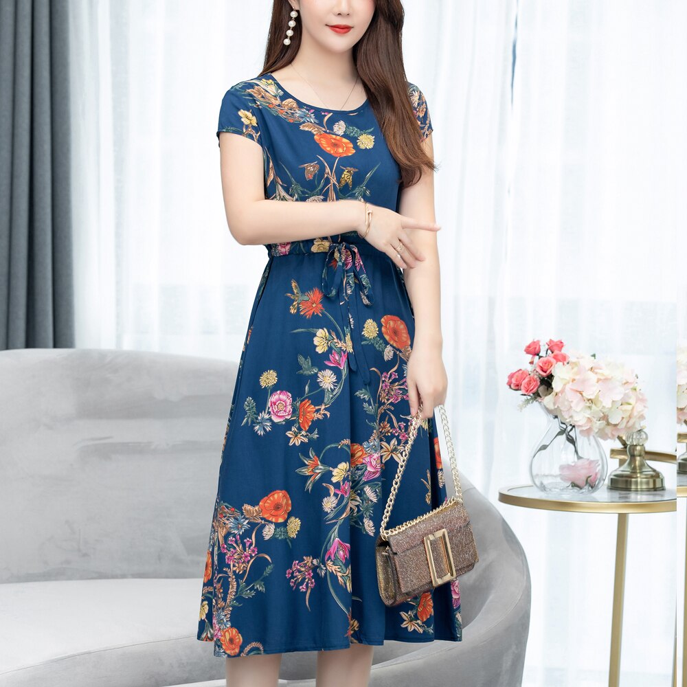 New Fashion Casual Loose Summer Dress For Women Plus Size Clothes Print Elegant O-neck Short Sleeve Natural Woman Clothing