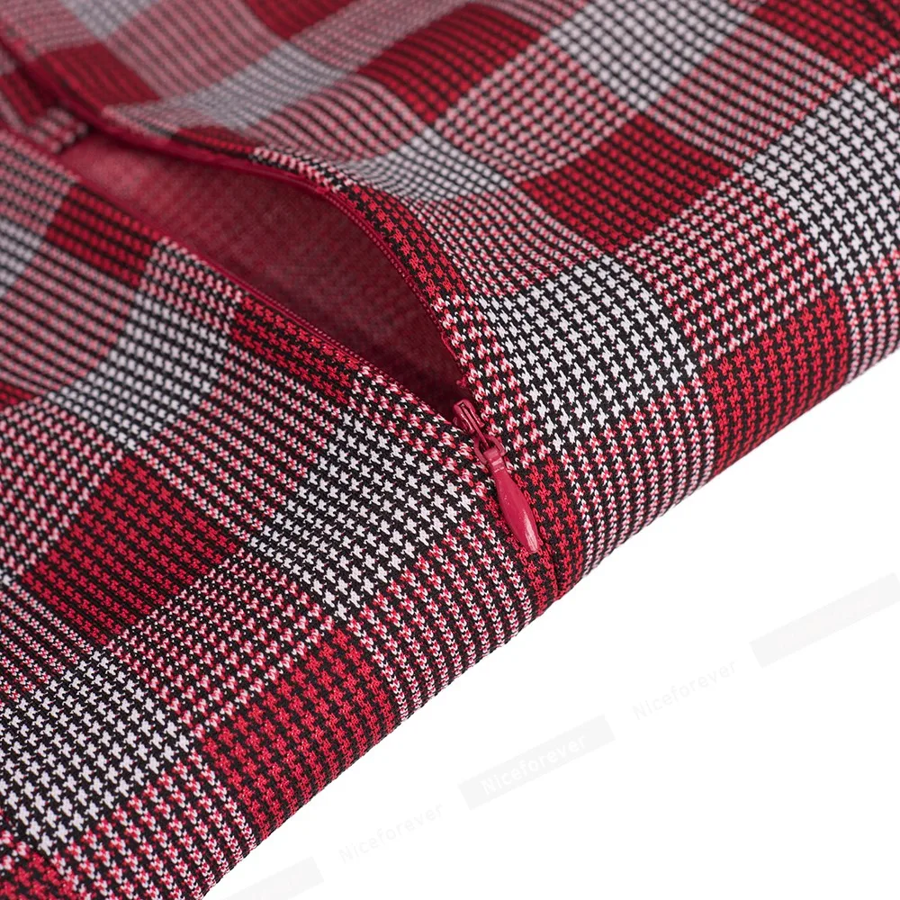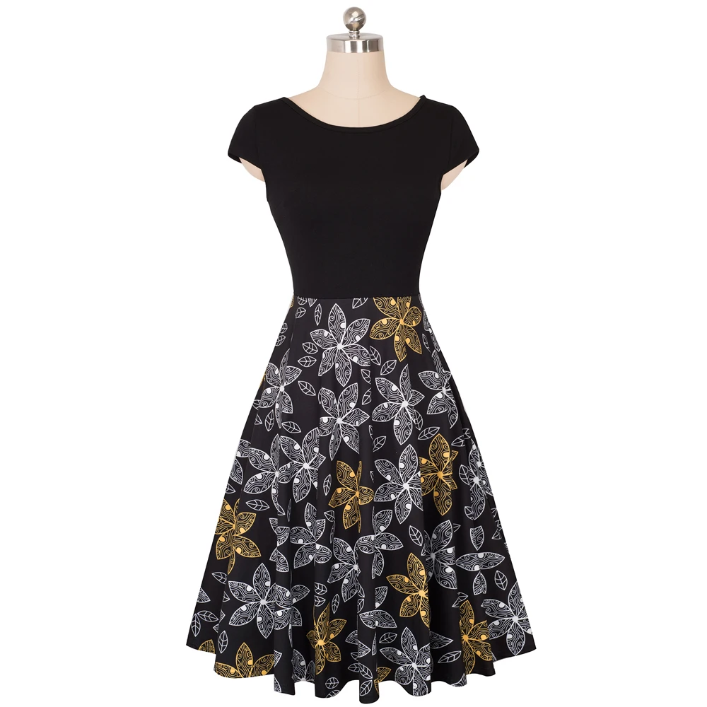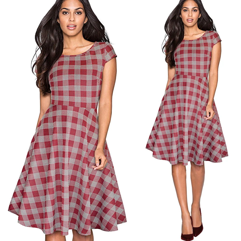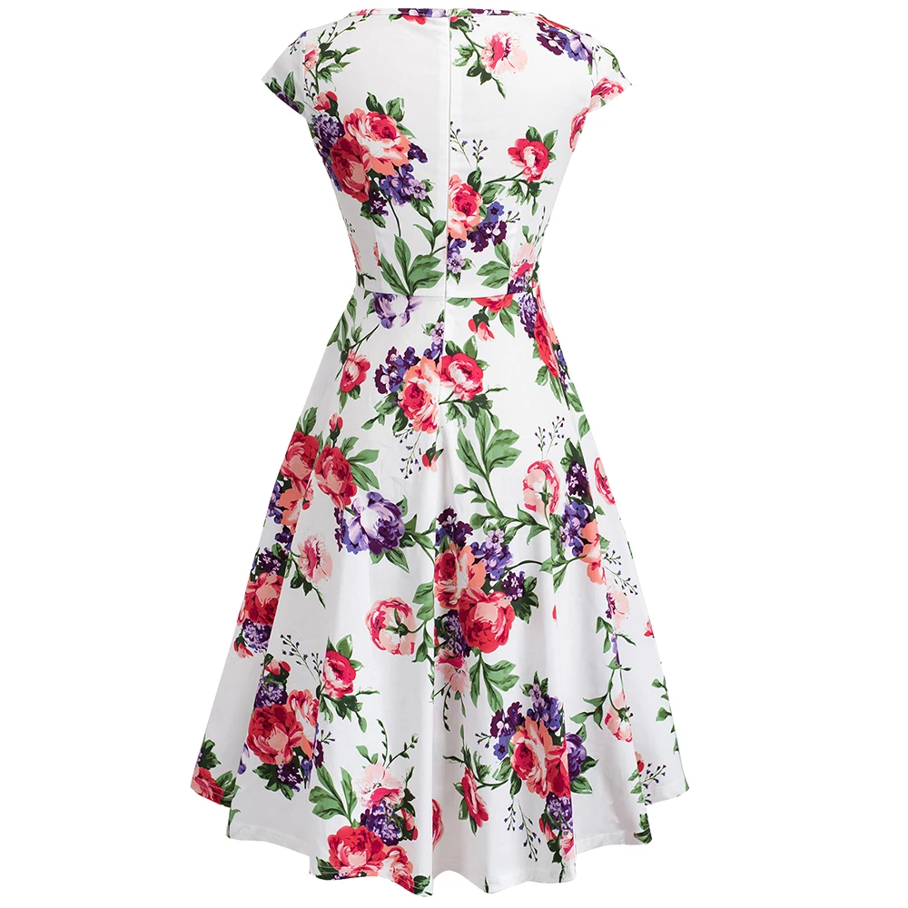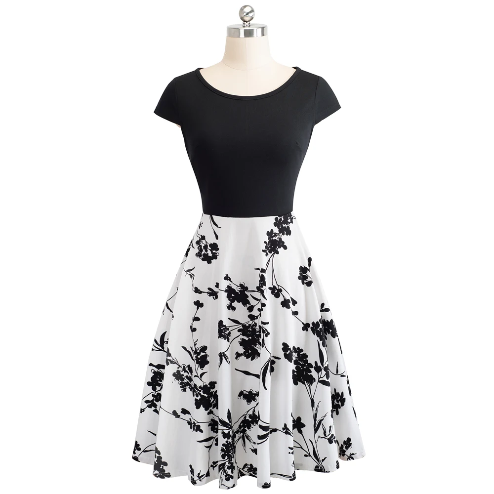 Nice-forever Retro 1950's Floral and Gird Printed O Neck vestidos A-Line Female Flare Party Women Summer Dress btyA009