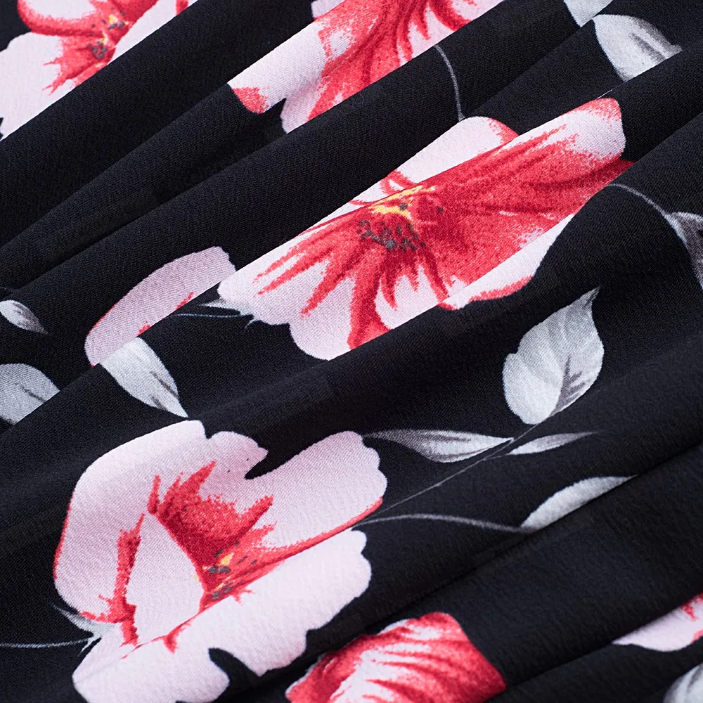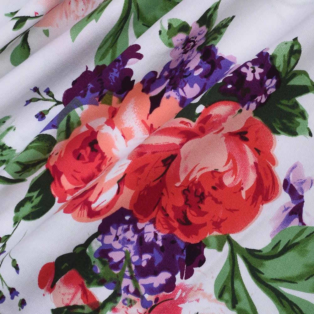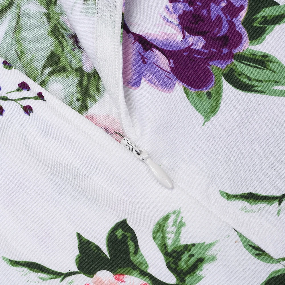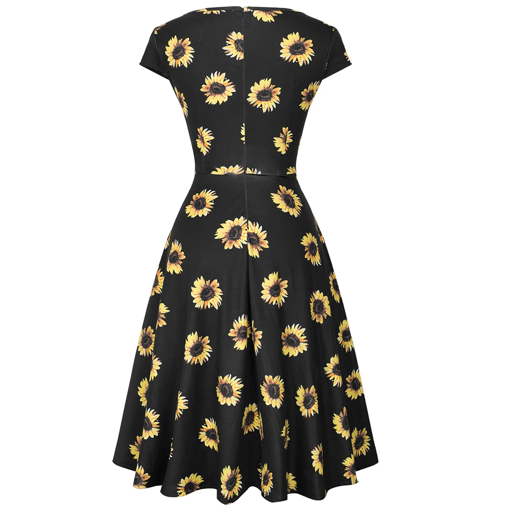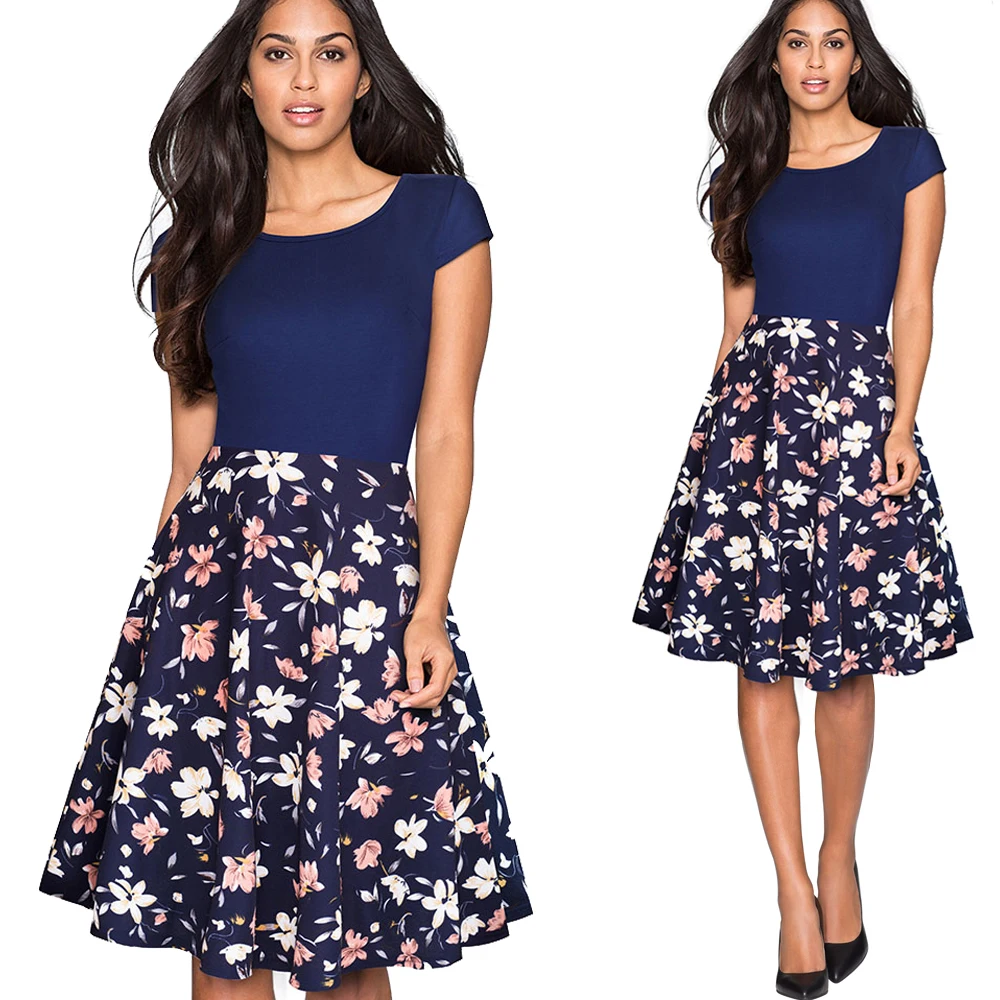 Nice-forever Retro 1950's Floral and Gird Printed O Neck vestidos A-Line Female Flare Party Women Summer Dress btyA009