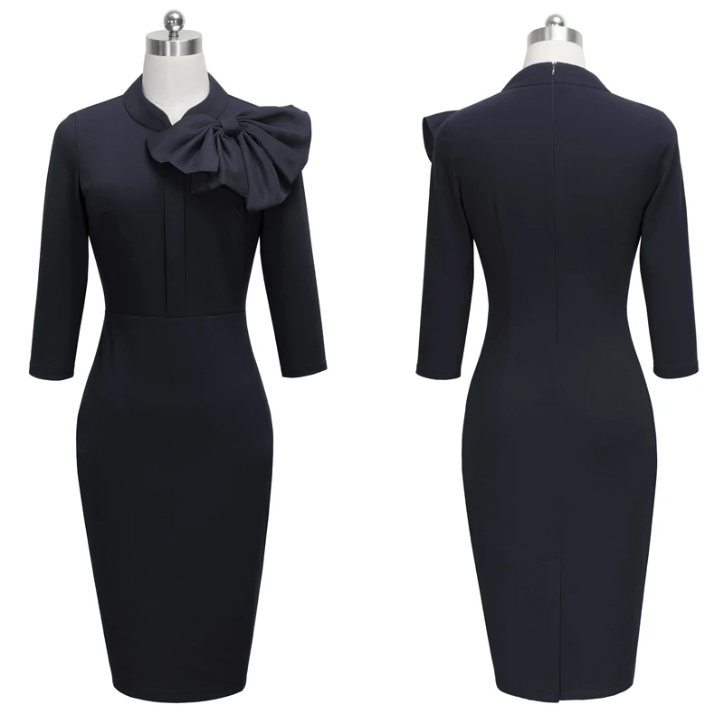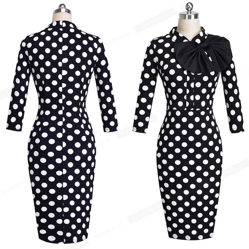 Nice-forever Spring Women Vintage Polka Dots with Bow Dresses Office Business Bodycon Sheath Dress B244