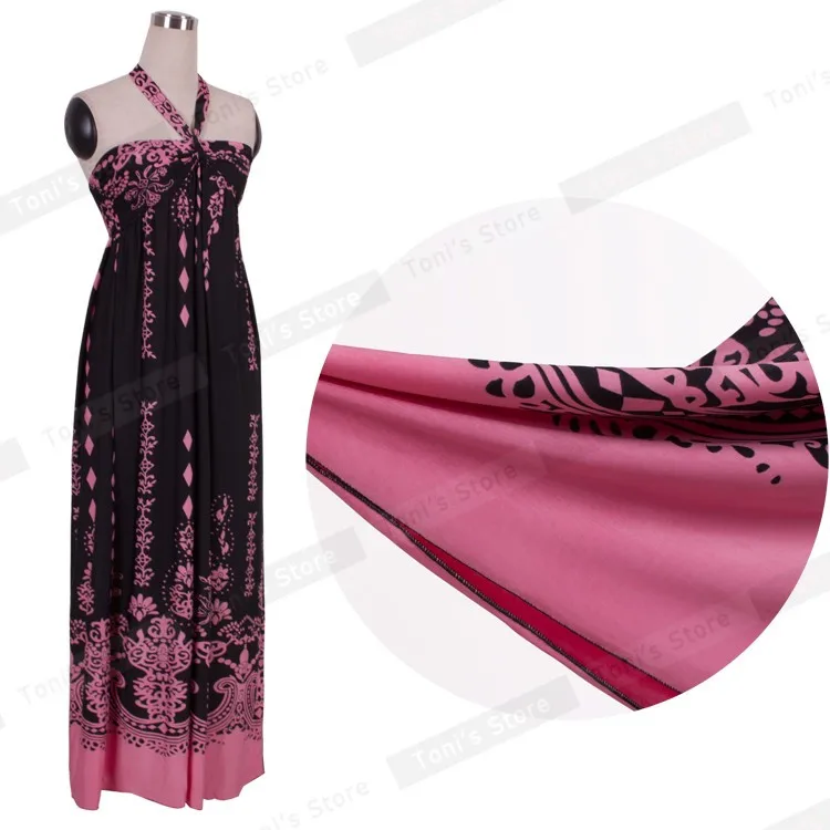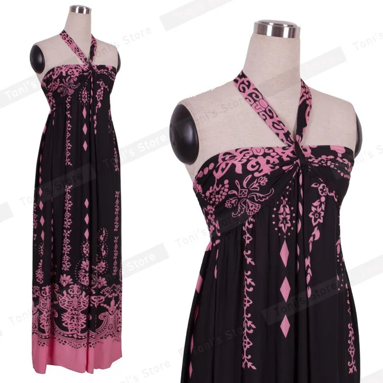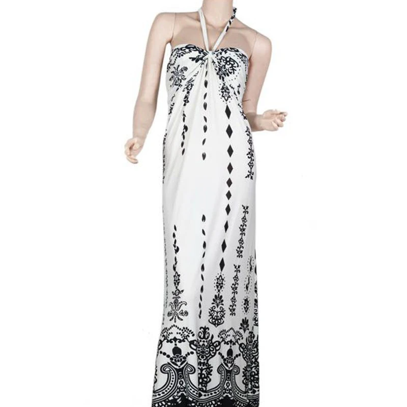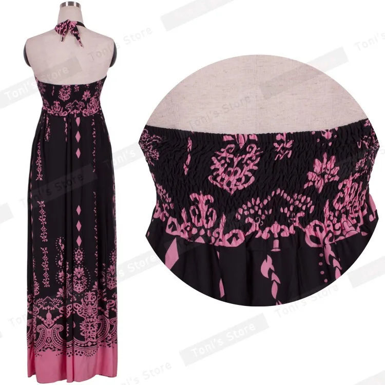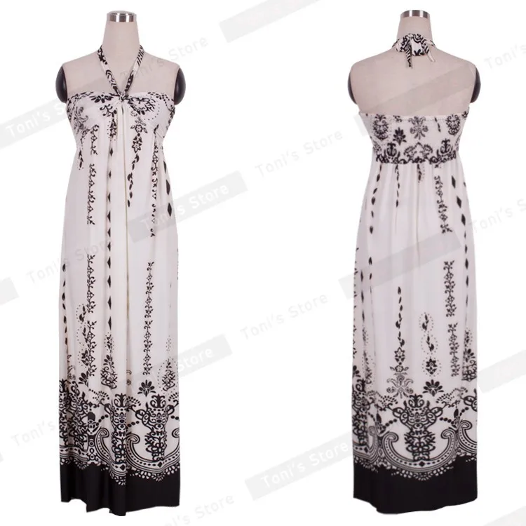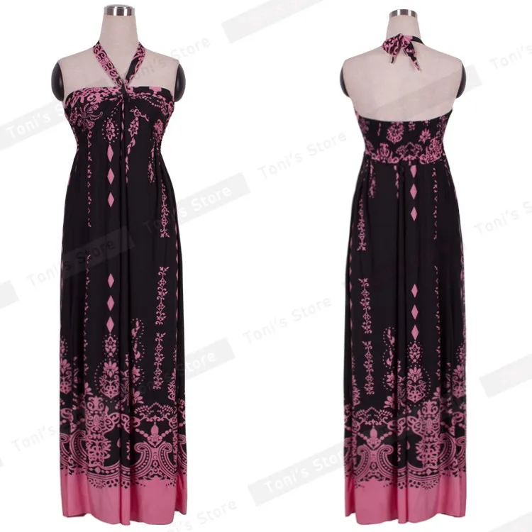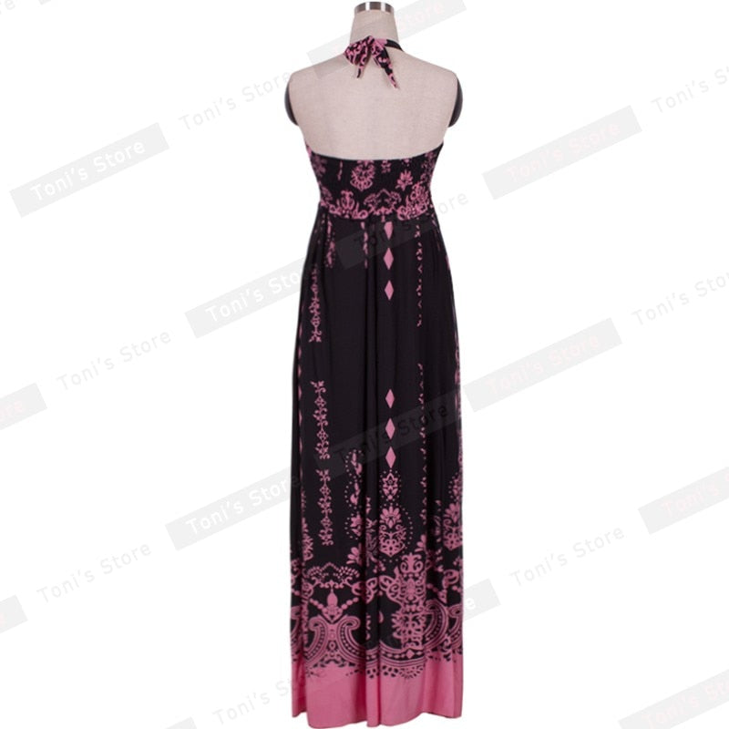 Nice-forever Summer Women Bohemian Beach Printed Dresses Casual Maxi Long Dress bty55a