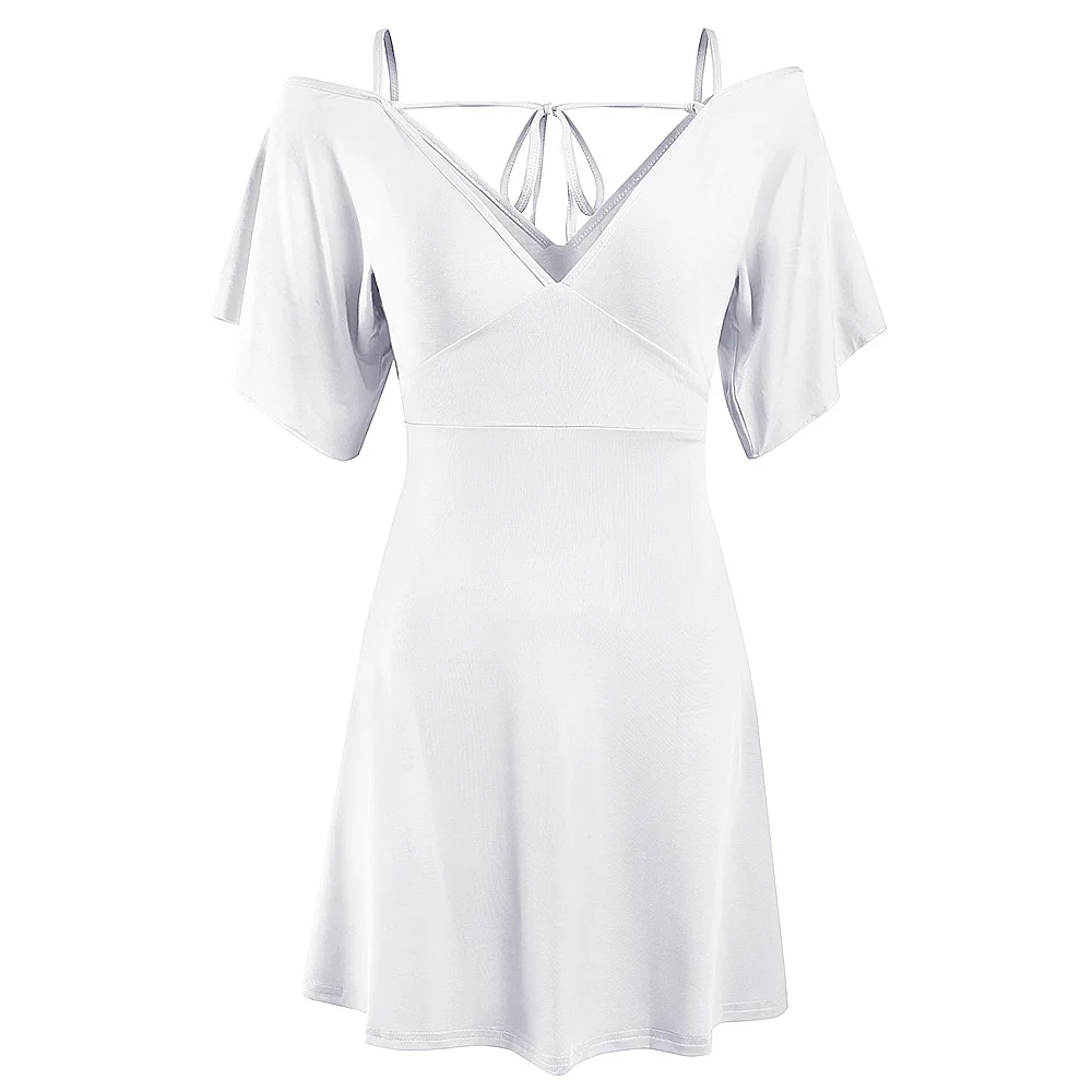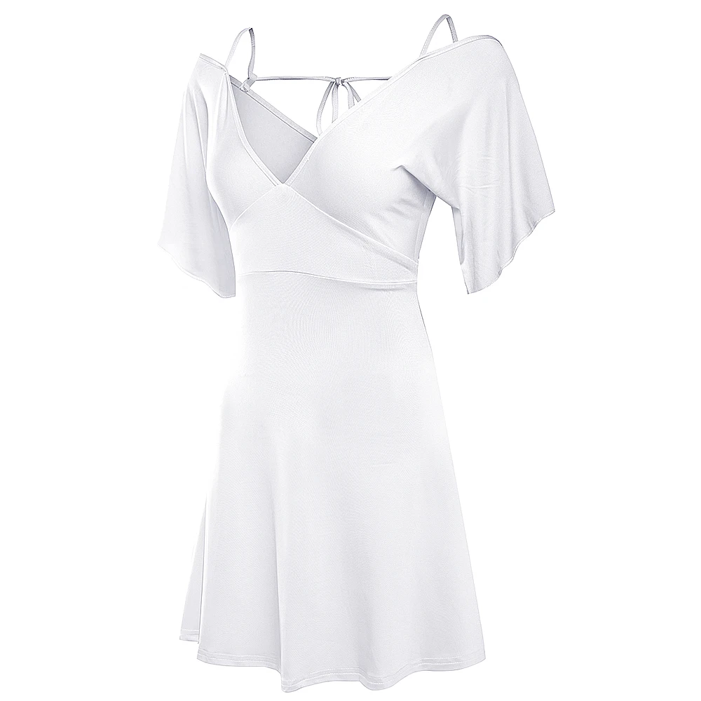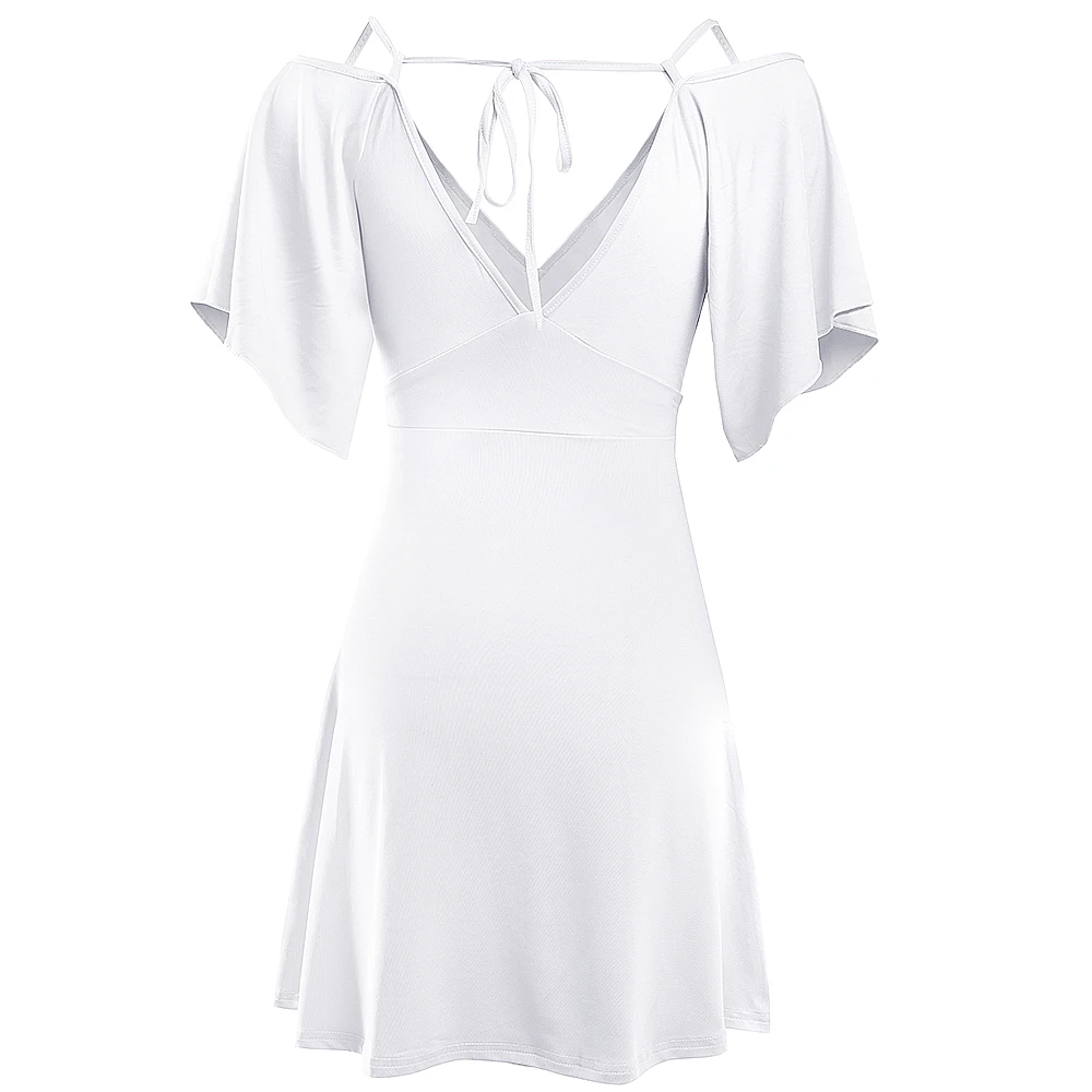 Nice-forever Summer Women Sexy Backless Solid Color Shortest Dresses Club Party A-Line Dress bty106