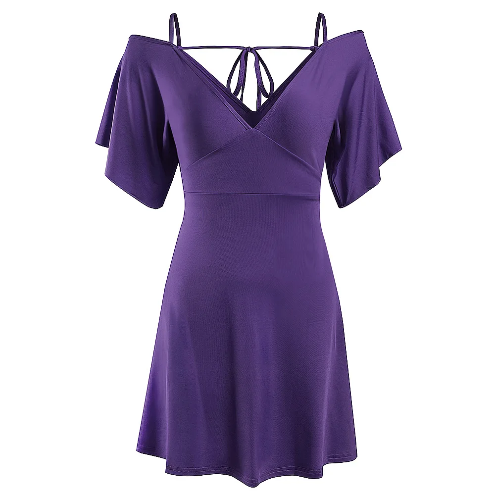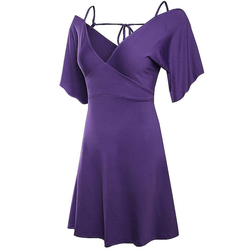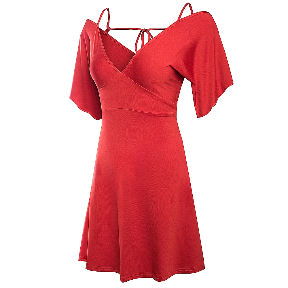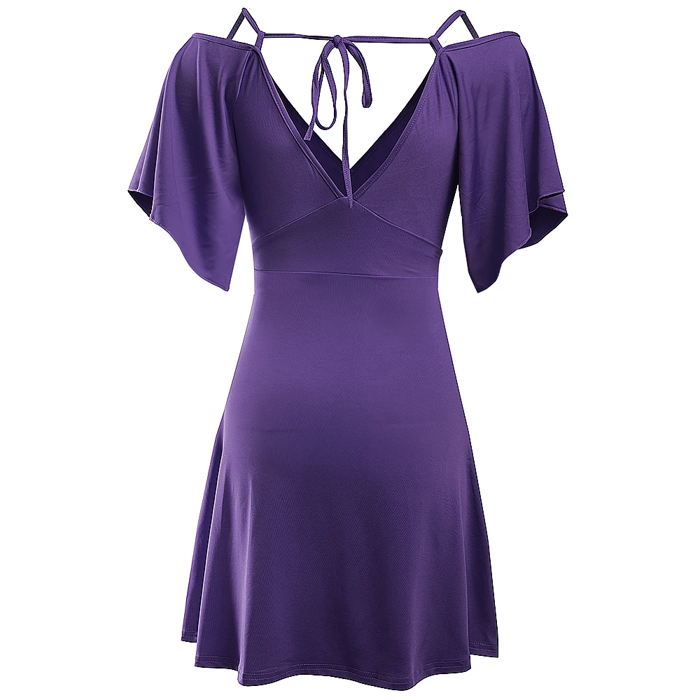 Nice-forever Summer Women Sexy Backless Solid Color Shortest Dresses Club Party A-Line Dress bty106