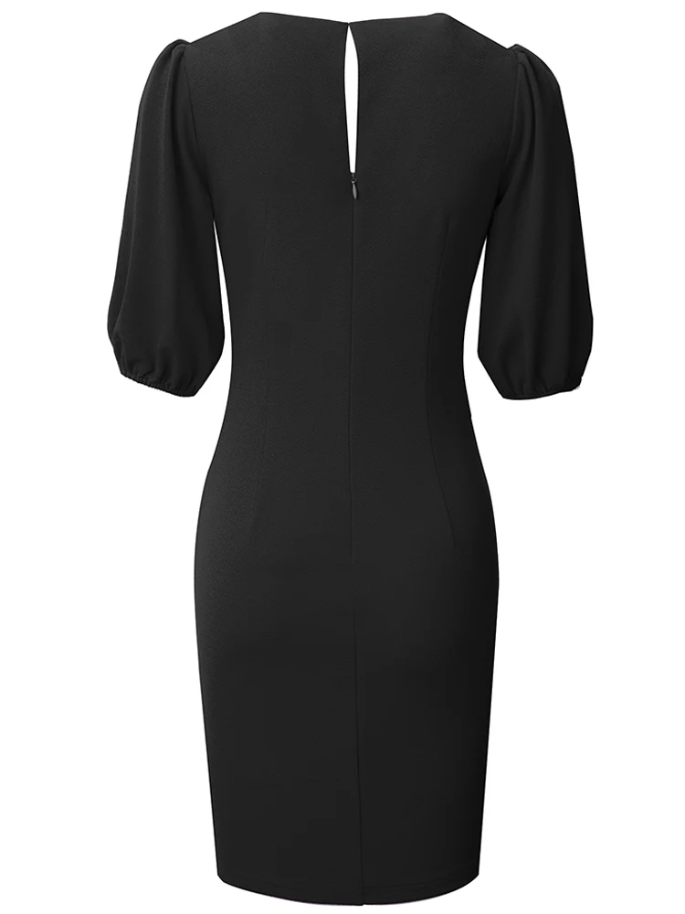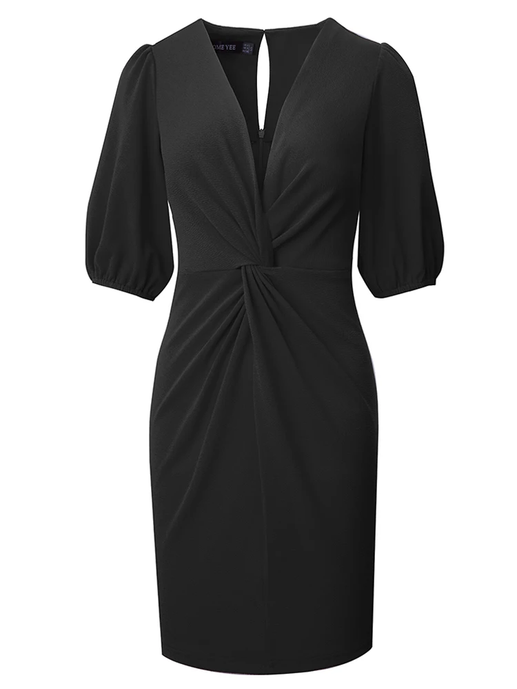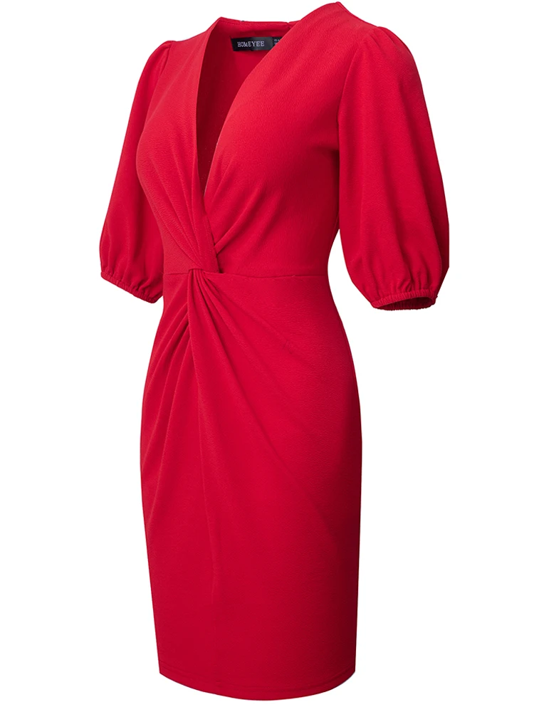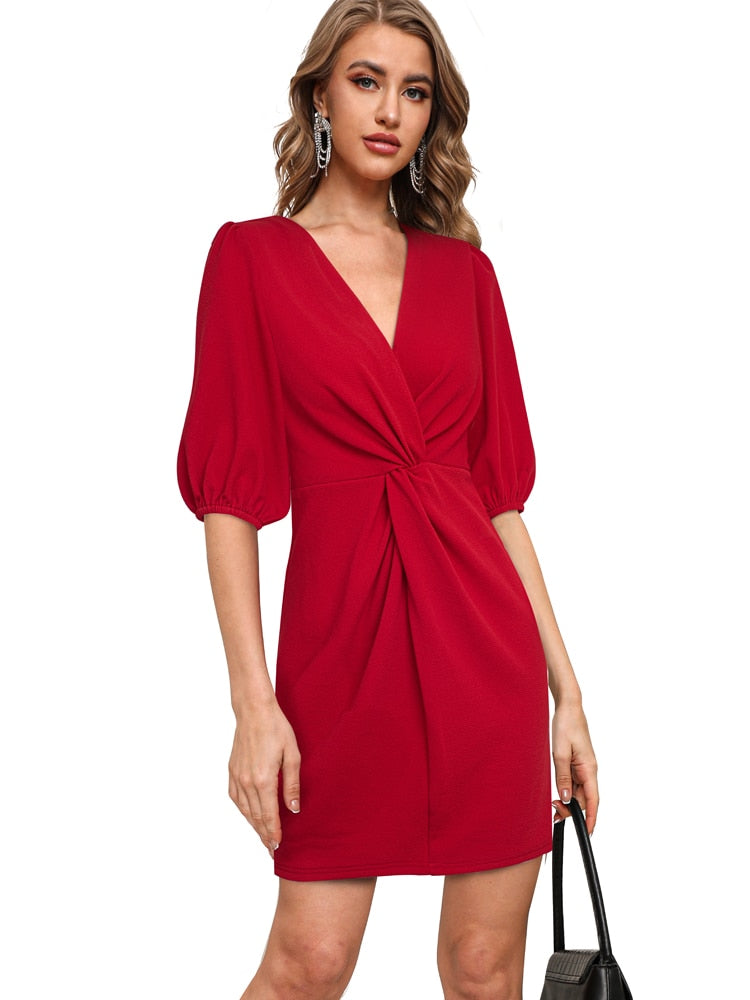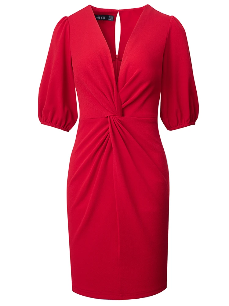 Nice-forever Summer Women Sexy Low Cut with Knot Plain Dresses Club Party Straight Dress A310