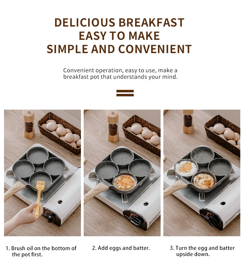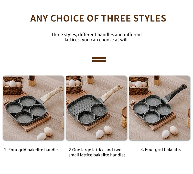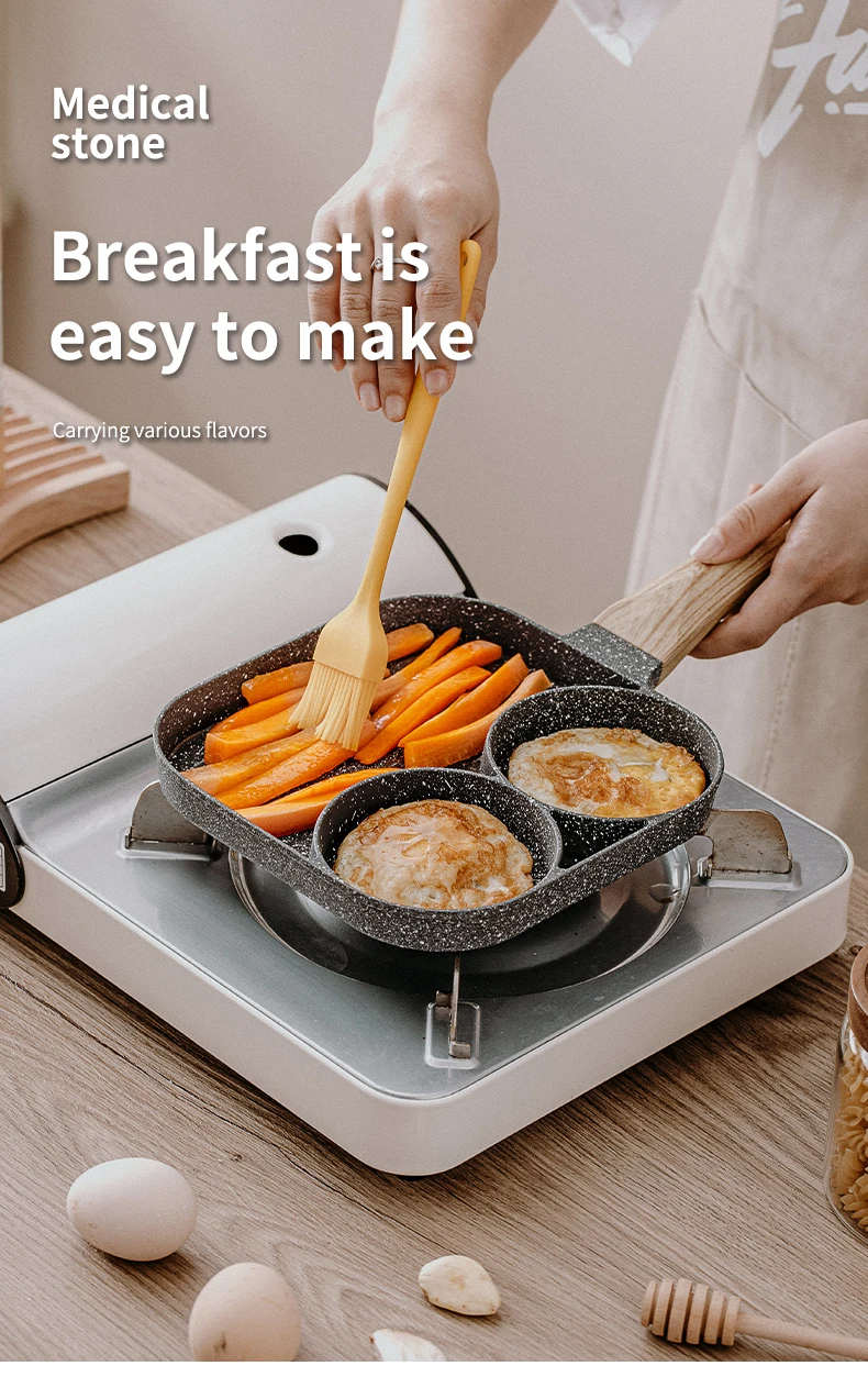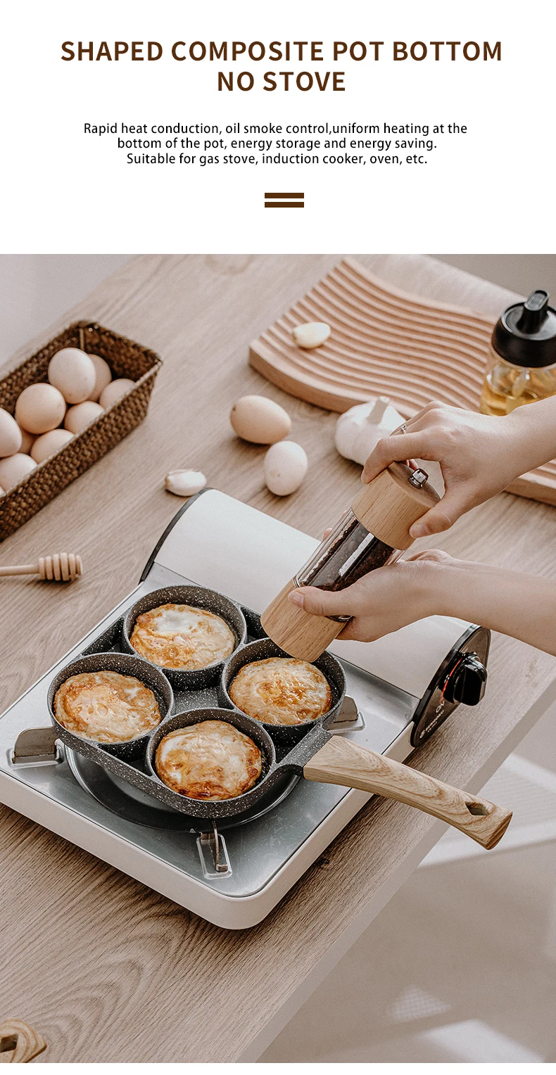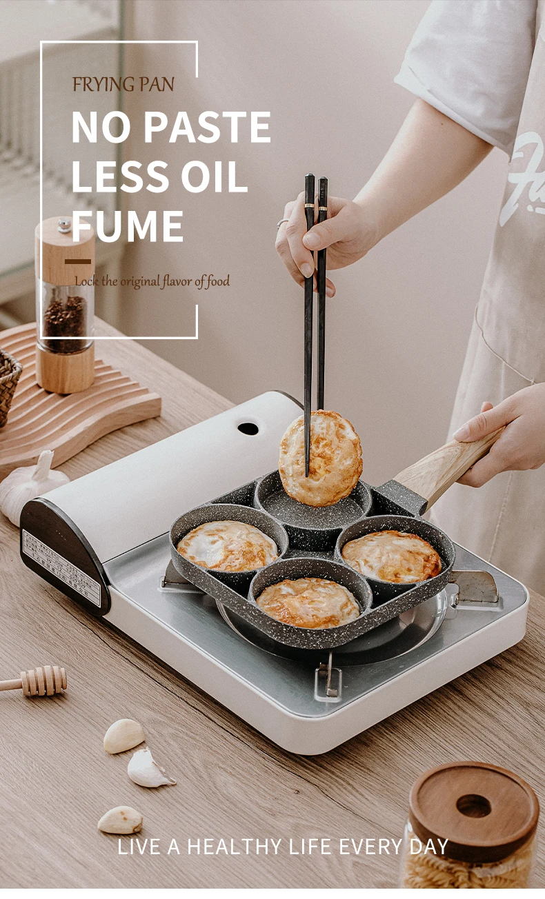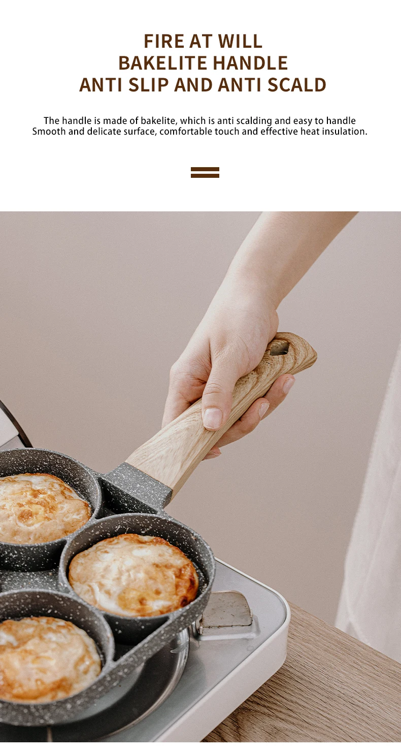 Non-stick Frying Pot Pan 2/4 Holes Steak Egg Pancake Thickened Omelet Pan Wooden Handle Pan For Kitchen Utensils